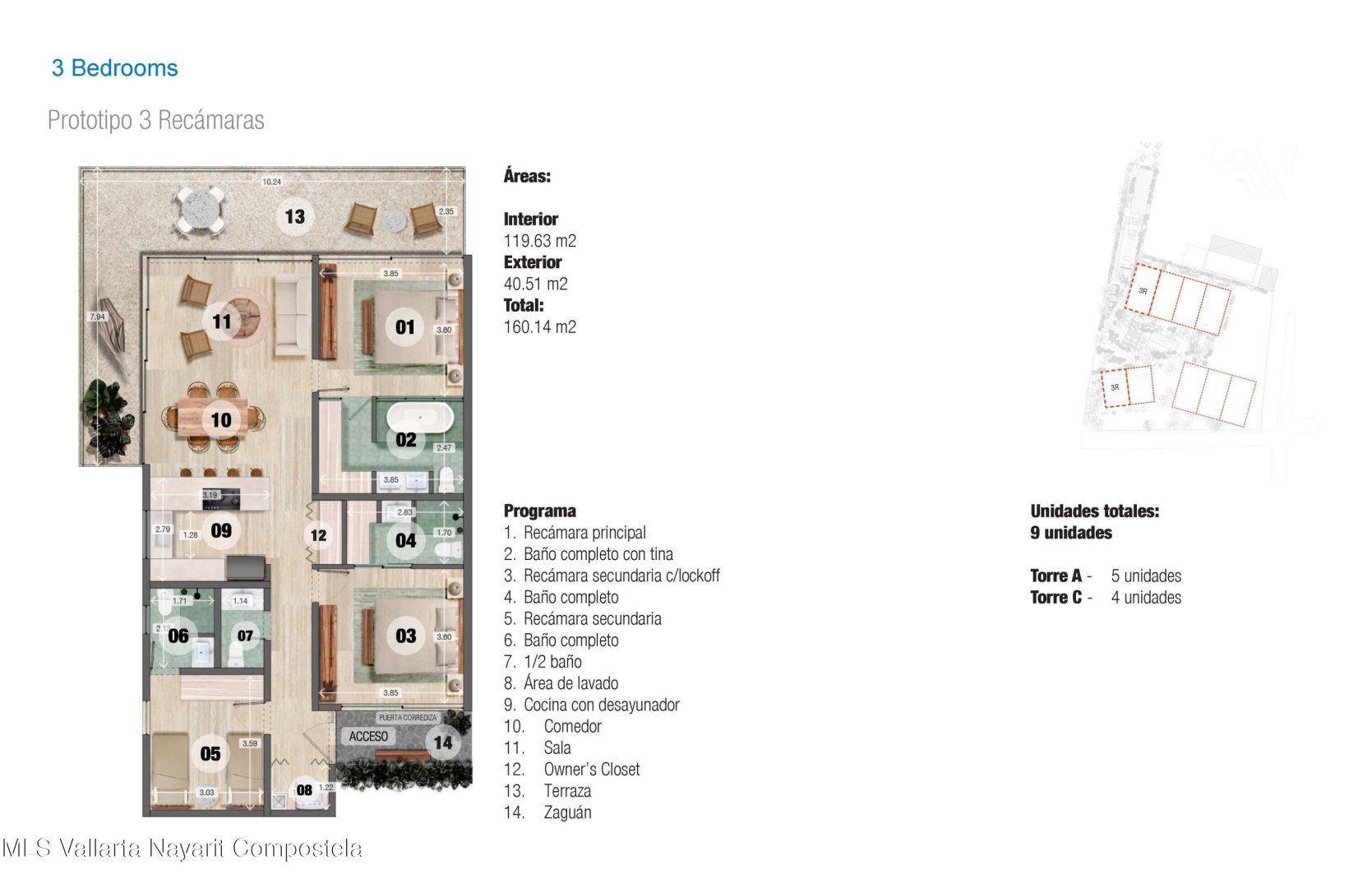 The 3-bedroom unit in Olaya offers 160 square meters of seamless inside-outside beach living. Spacious rooms blend effortlessly with thoughtful design, while a large terraza enhances the living area with natural light. Each bedroom features a private ensuite, and one includes a lock-off option, perfect for rental income or flexibility. An additional owner’s closet adds convenience. Beyond the residences, Olaya boasts a beach club, pool area, and zen garden, creating a haven of relaxation. With its clean architectural design and modern comforts, Olaya is ideal for a dream home, vacation retreat, or investment in Sayulita.