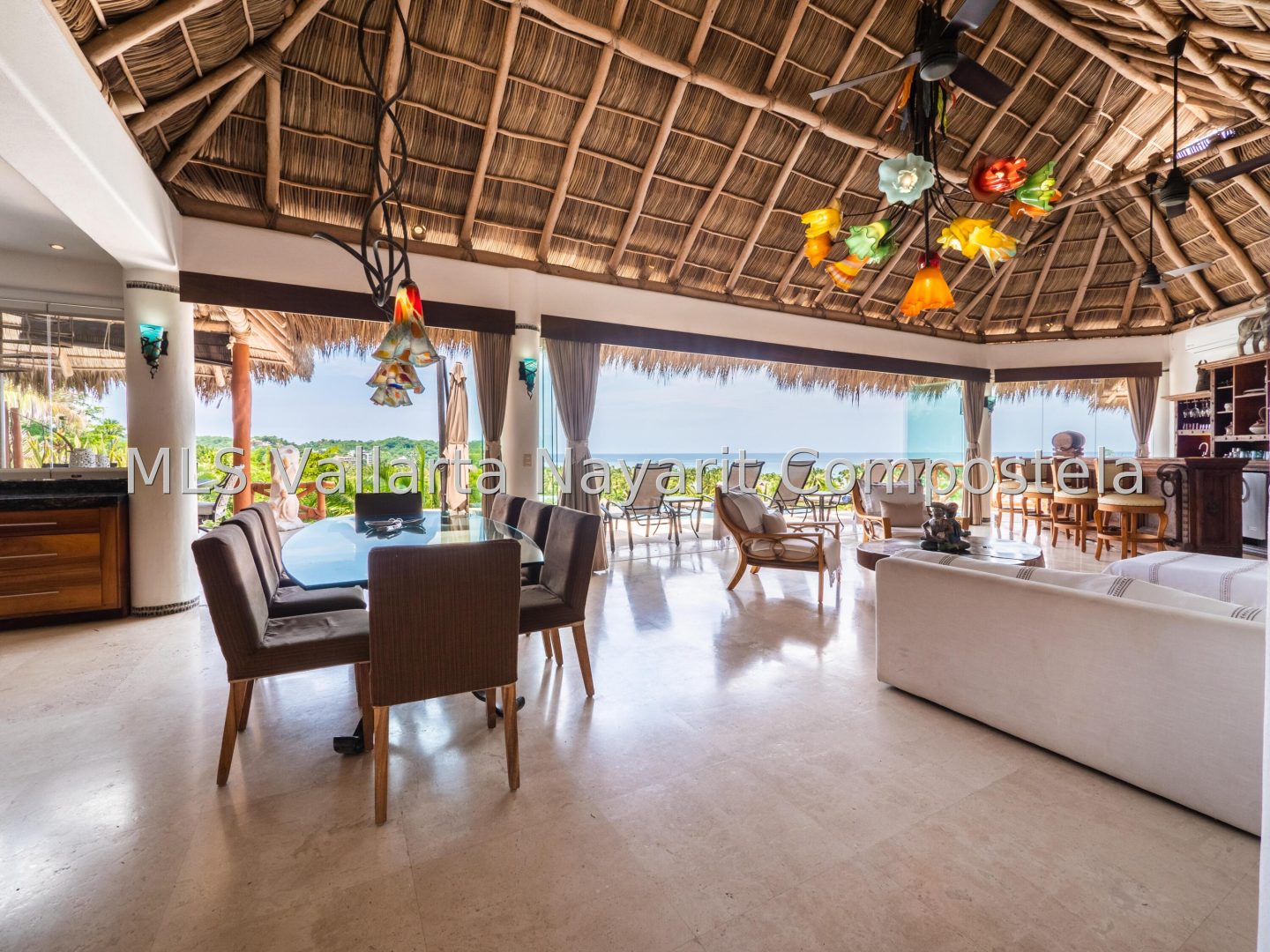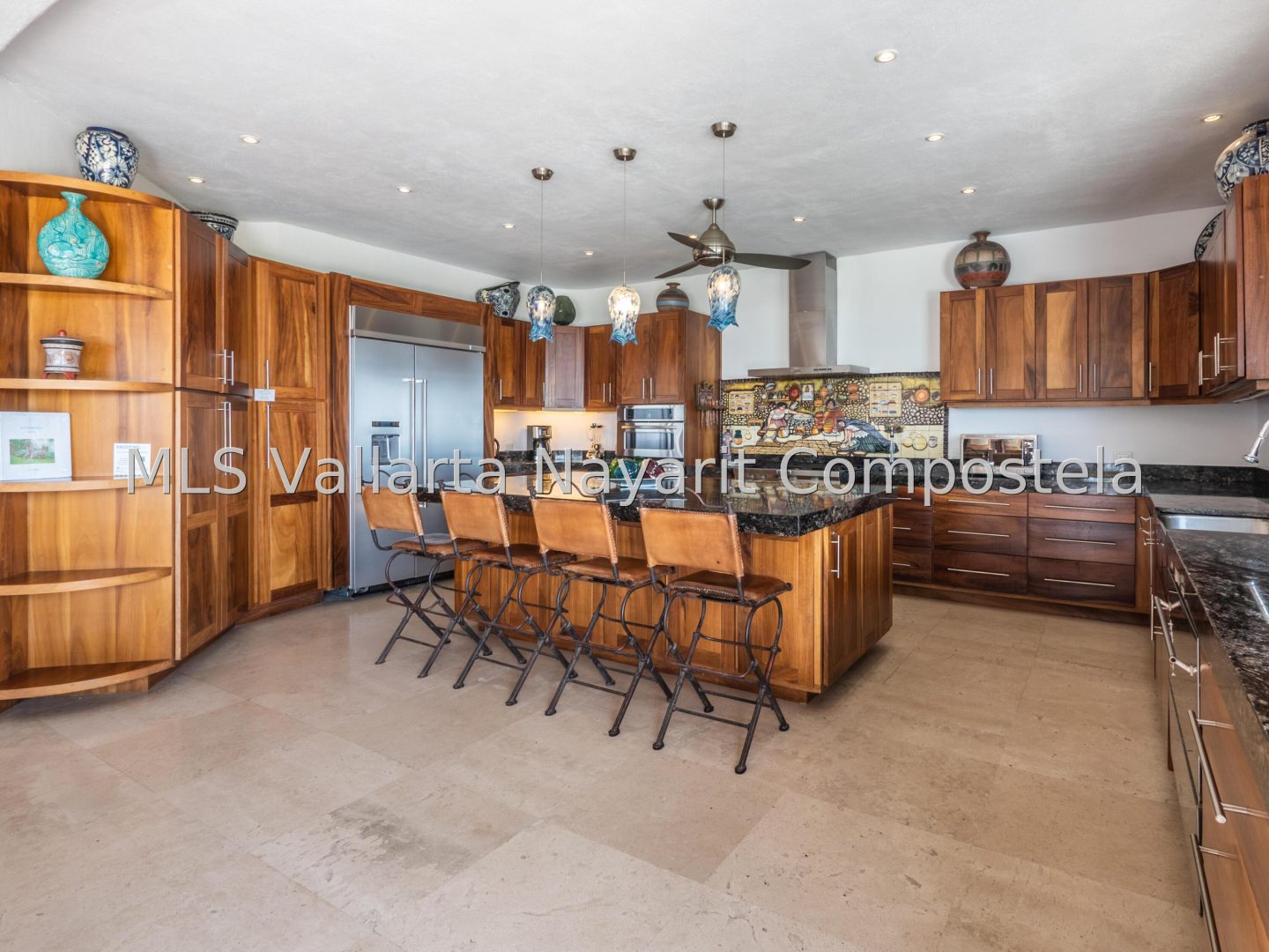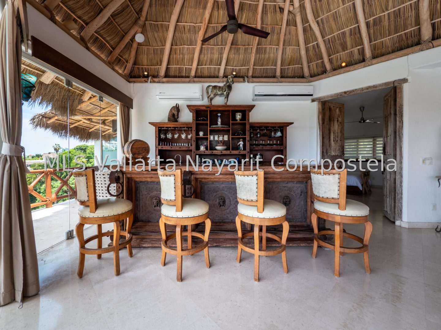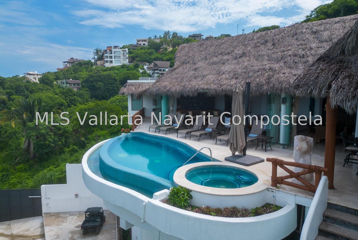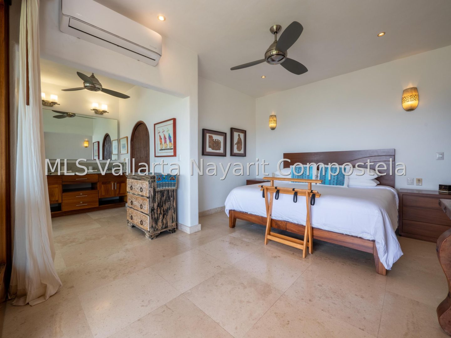 Villa Painted Ponies is located on the tranquil north side of Sayulita. This exquisite 4-bedroom / 5-bath home is nearly 6,000 sq ft of luxury construction. This home has some of the best views in Sayulita. Elevated over a sprawling canopy of palm trees, the villa offers breathtaking 180 degree views of the ocean and stunning sunsets. The entire property has a water purification system. Pool and Jacuzzi are heated – a definite plus in the winter months! Fully gated and secure. Only a 3-minute walk to the beach and an 8-minute stroll to town, restaurants, shops and bars.