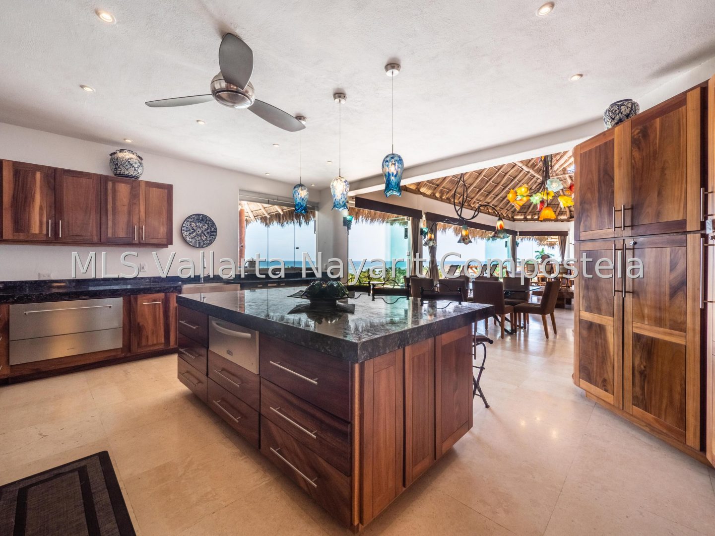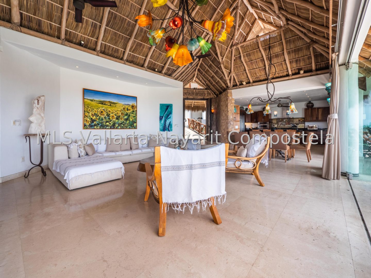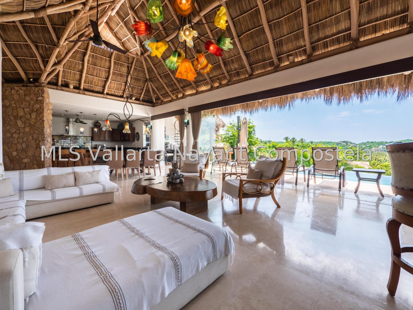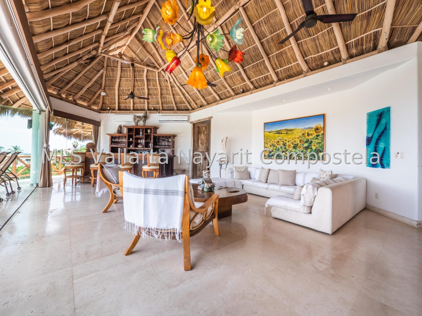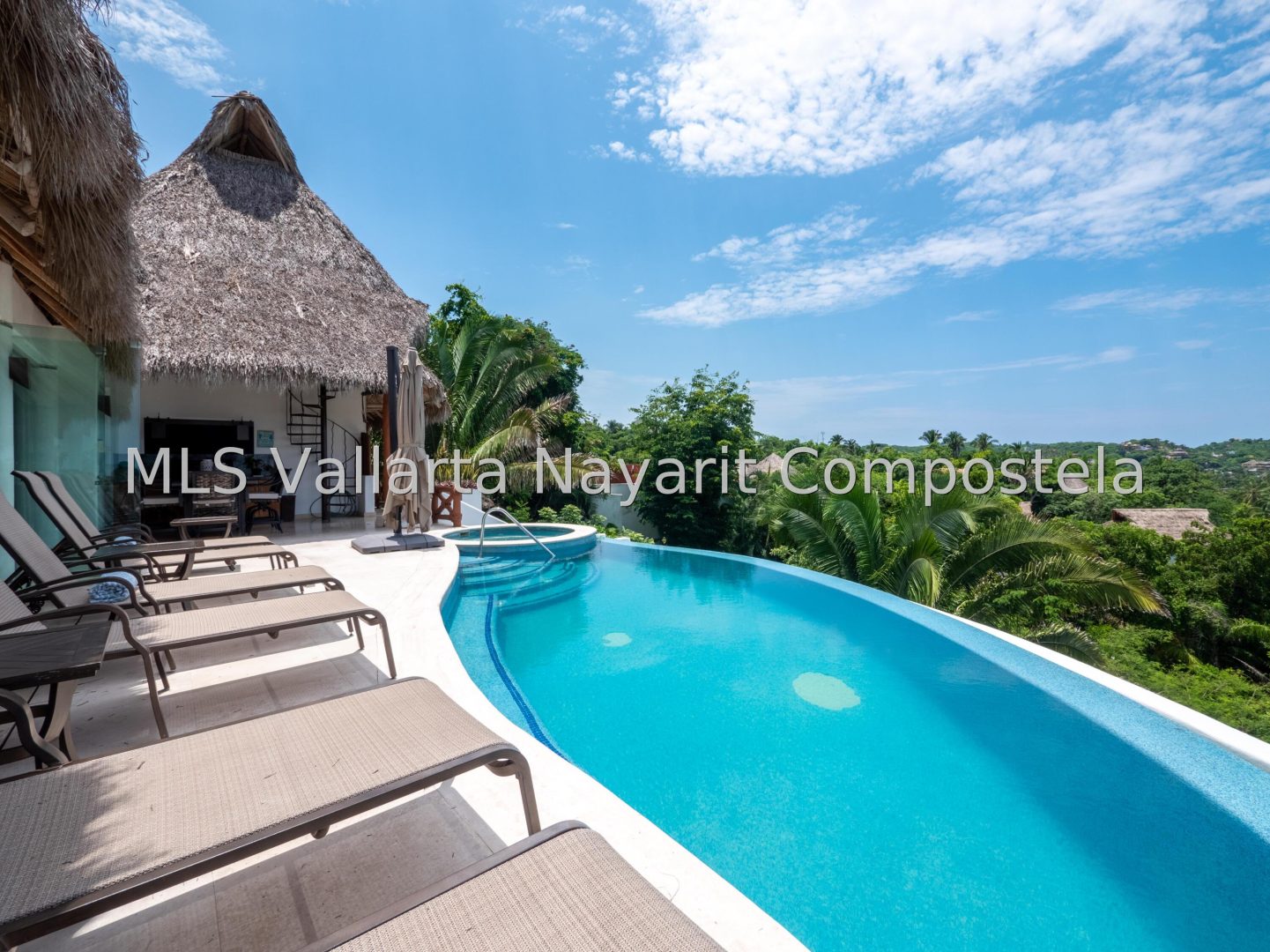 Villa Painted Ponies is located on the tranquil north side of Sayulita. This exquisite 4-bedroom / 5-bath home is nearly 6,000 sq ft of luxury construction. This home has some of the best views in Sayulita. Elevated over a sprawling canopy of palm trees, the villa offers breathtaking 180 degree views of the ocean and stunning sunsets. The entire property has a water purification system. Pool and Jacuzzi are heated – a definite plus in the winter months! Fully gated and secure. Only a 3-minute walk to the beach and an 8-minute stroll to town, restaurants, shops and bars.
