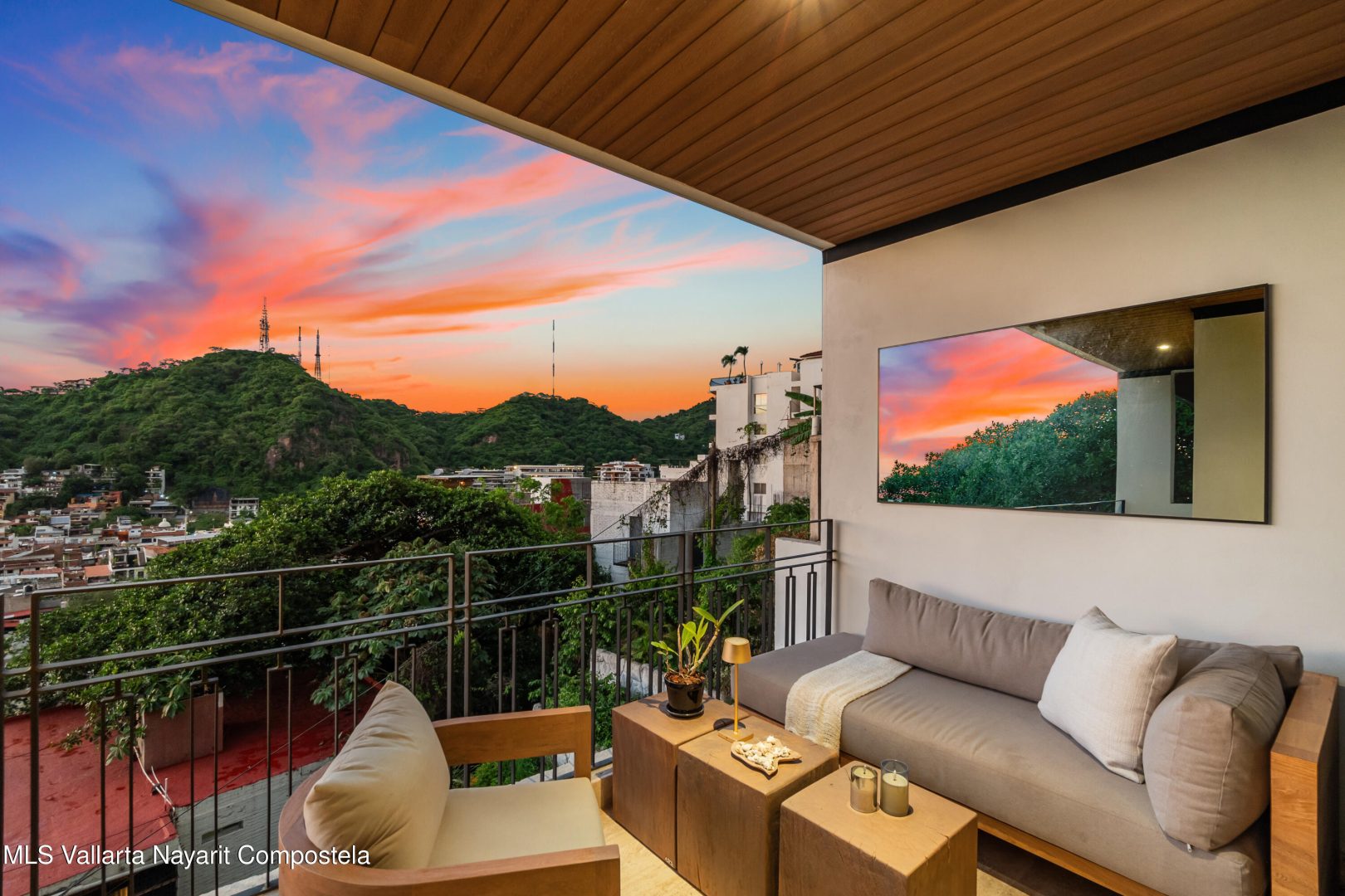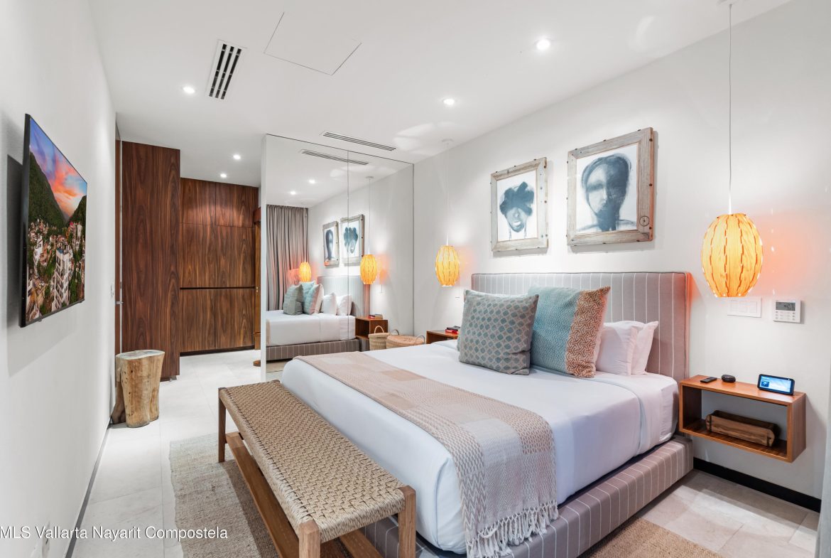Stunning fully furnished condo with over $70K in custom upgrades and handcrafted furniture throughout. Enjoy panoramic ocean and mountain views from your private terrace. Located in the exclusive Palm on the Tree building with top-tier amenities: rooftop infinity pool, rooftop bar, gym, pet relief area, concierge, etc. Turnkey luxury in the heart of Puerto Vallarta.
