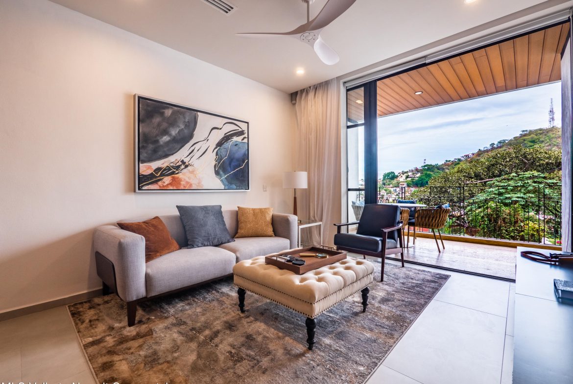 Sophisticated ocean, mountain, and city view condo in a modern new development, nestled against a lush mountain in Zona Romantica. PALM ON THE TREE boasts a lifestyle of luxury complete with an infinite rooftop pool, gym, and more. This 2 bed, 2 bath condo features gorgeous ocean views, a fully redone floor, and professional interior design. Turnkey ready to generate rental income, it comes fully furnished with appliances and AC. The real magic is the stunning ocean and mountain view from the large balcony that spans the entire condo. Deeded parking and storage included! Excellent location: Tranquil, yet steps from shops, restaurants, and entertainment. Only a fifteen-minute walk to the beach!