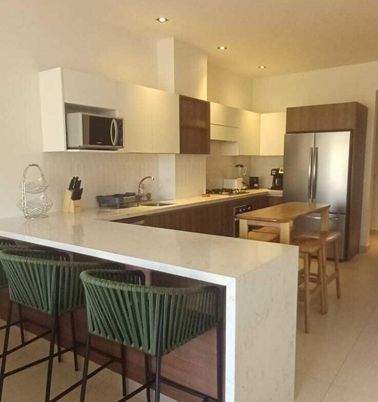 Highly desirable 3th floor condo in the spectacular Pavilion Bucerias Development offering amazing amenities and ocan views from the rooftop. Boutique development with only 25 condos, just half a block from the beautiful Bucerias beach. Located in the Golden Zone of Bucerias, close to fantastic restaurants, boutiques and supermarkets. Well designed floor plan, master suite has direct access to the terrace to enjoy morning coffee with beautiful sunrise. Ideal for vacation or short term rentals.