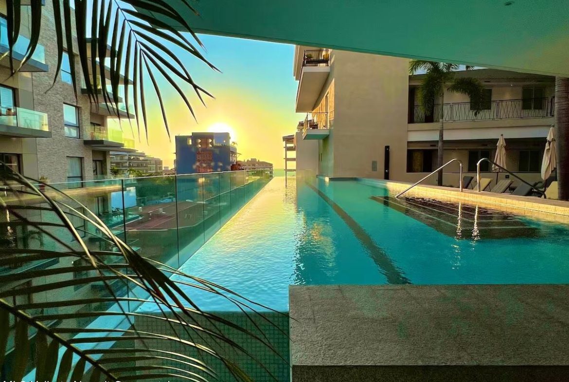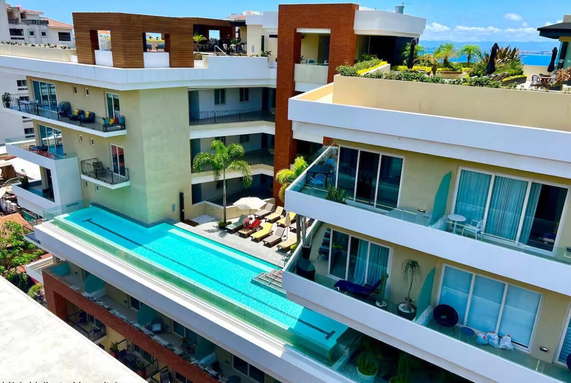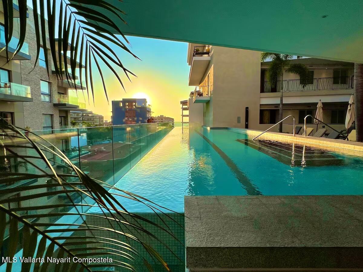 Pavilion 309 es un encantador departamento de 75.96 m con una habitacion y dos banos completos. Pertenece a un edificio moderno de 7 pisos y 63 unidades, situado en el vibrante corazon de la Zona Romantica, a solo dos cuadras de la playa. El edificio ofrece amenidades de primer nivel: jardin en la azotea con alberca infinita, dos jacuzzis climatizados, zona de barbacoa, gimnasio, piscina tipo lap, seguridad 24/7, elevador, y opciones de estacionamiento y almacenamiento . Pavilion 309 presume de un balcon con vista a la calle principal y vista parcial al mar, ideal para relajarse y disfrutar del ambiente romantico y dinamico de la zona