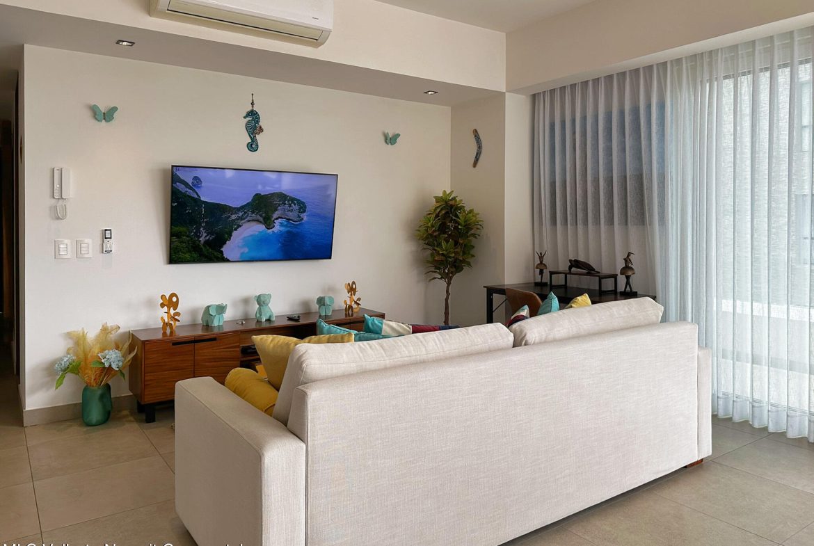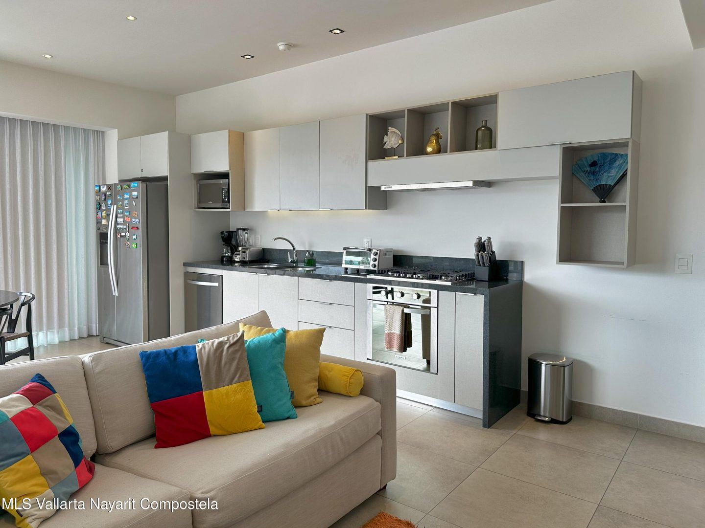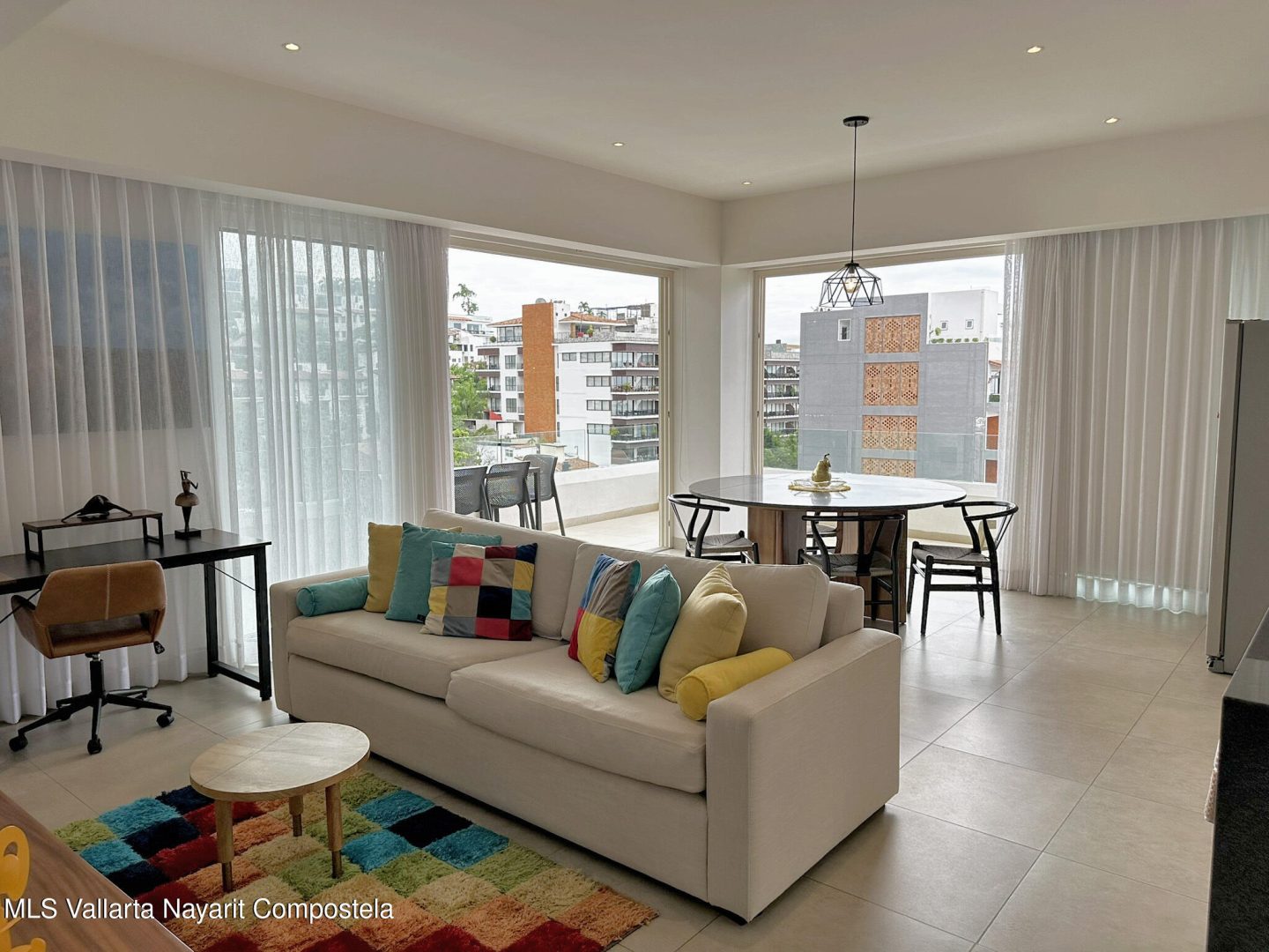 Elegante y moderno departamento de 1 recamara y 2 banos cuenta con una distribucion cuidadosamente disenada, se vende amueblado, con cajon de estacionamiento y bodega. Discover urban luxury living in this sought-after 6th floor corner unit at Pavilion Condominios, nestled in the heart of the enchanting Romantic Zone. This stylish and contemporary 1-bedroom, 2-bathroom residence boasts a thoughtfully designed layout and comes fully furnished, ensuring you can move in and start enjoying the lifestyle right away. The expansive windows on two sides flood the living spaces with natural light while offering stunning views of the surrounding cityscape and mountains One of the standout features of this unit is the included underground secure parking and storage.
