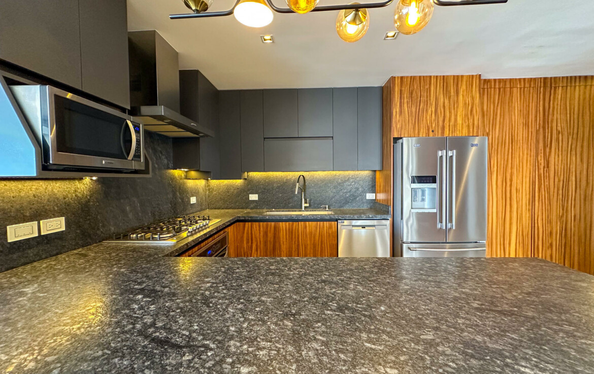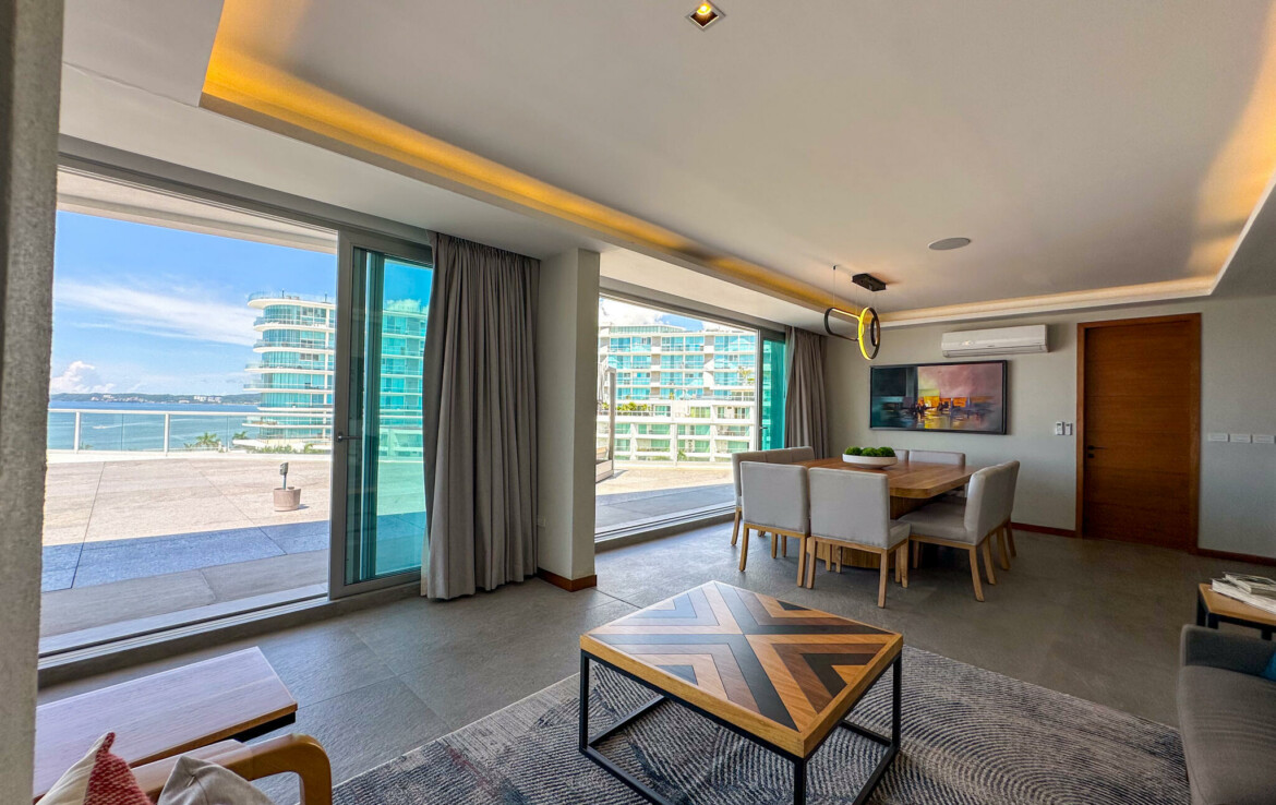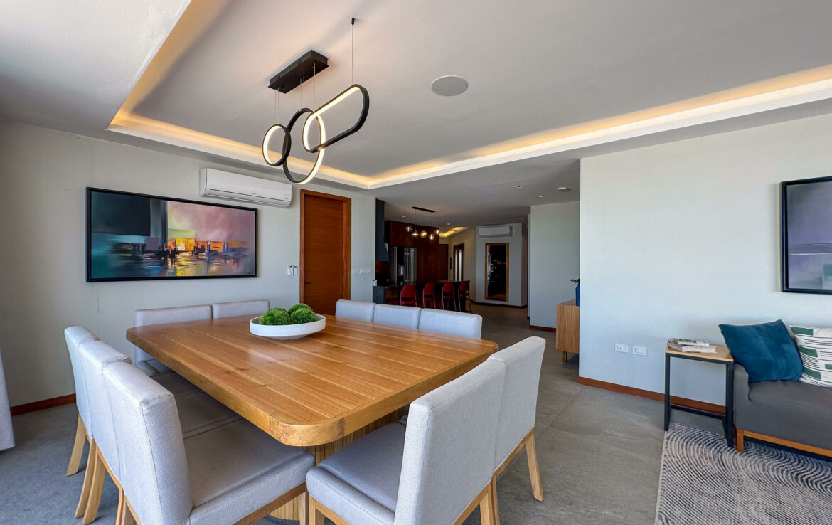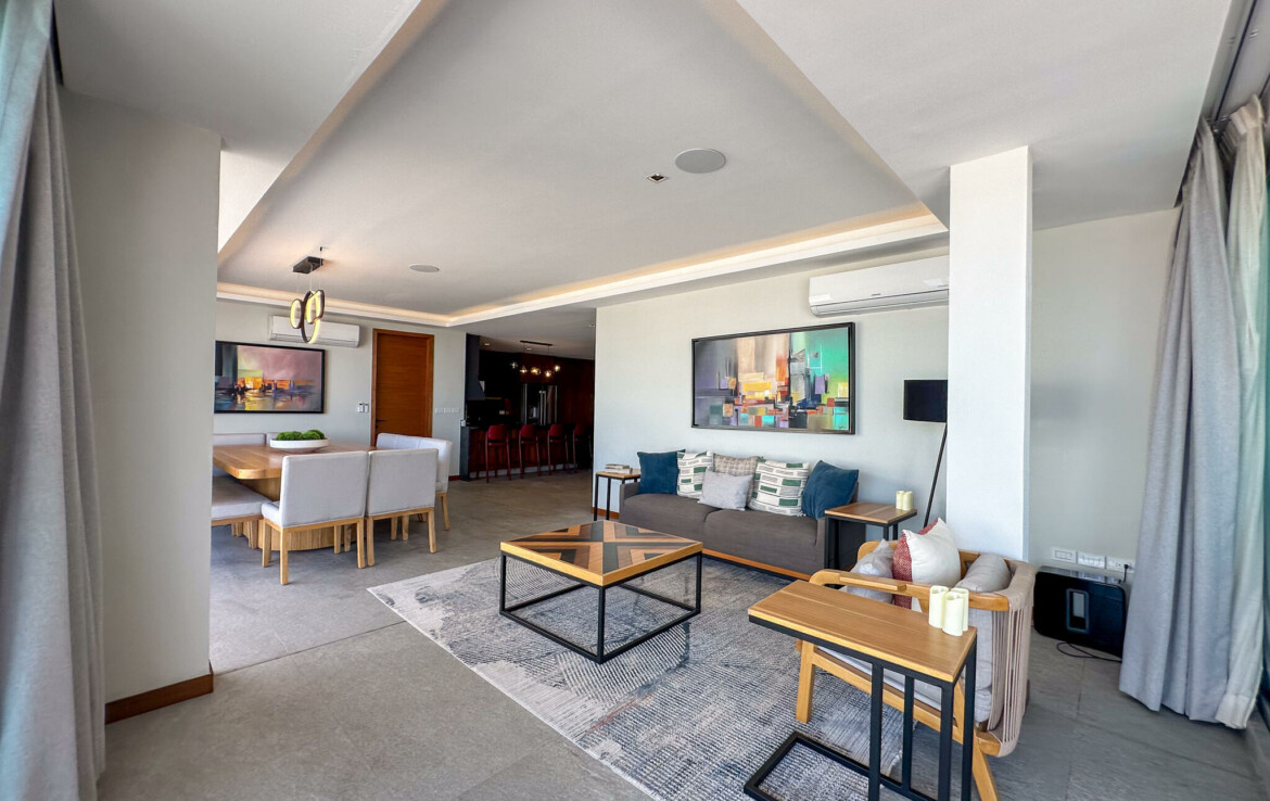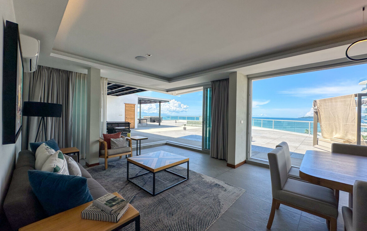 Descubre el Penthouse Coral, en el condominio maestro Flamingos Acqua, dentro del desarrollo Flamingos en Bucerias, Nayarit. Esta propiedad cuenta con una superficie total de 678.55 m, distribuidos en 172.59 m de interiores, 92.21 m de terraza cubierta y 413.75 m de terraza descubierta, ofreciendo amplios espacios con vistas panoramicas.El penthouse se compone de 3 recamaras, 3 banos completos, un medio bano, cocina integral con desayunador, sala, comedor, terraza cubierta con bano y asador, y terraza descubierta con alberca y jacuzzi privados.La propiedad se vende amueblada y lista para habitar. Cuenta con acceso a servicios del condominio, incluyendo seguridad, alberca, con vistas frente al mar.