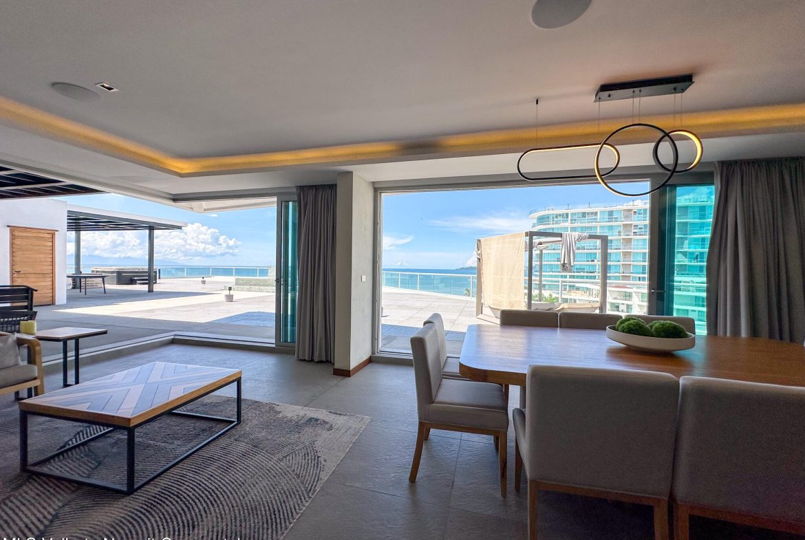 Te presentamos Penthouse Coral, una residencia frente al mar en el exclusivo desarrollo Aria Ocean Condos, ubicado en la codiciada zona de Flamingos, en Bucerias, Nayarit. Este espectacular penthouse combina el diseno contemporaneo con la belleza natural de la Riviera Nayarit, ofreciendo vistas panoramicas al oceano, espacios abiertos y una conexion perfecta entre interior y exterior. Cada detalle refleja elegancia y serenidad, desde los interiores banados en luz natural hasta las amplias terrazas ideales para relajarse, convivir y disfrutar de los atardeceres sobre el Pacifico.Ubicado dentro de Aria Ocean, uno de los desarrollos frente al mar mas deseados de Flamingos, sus residentes disfrutan de amenidades tipo resort, seguridad 24 horas y acceso directo a la playa.