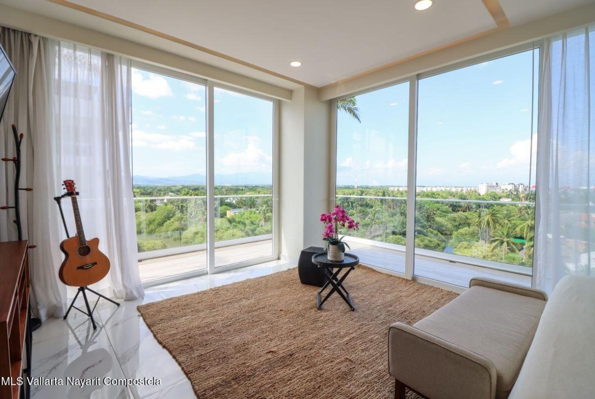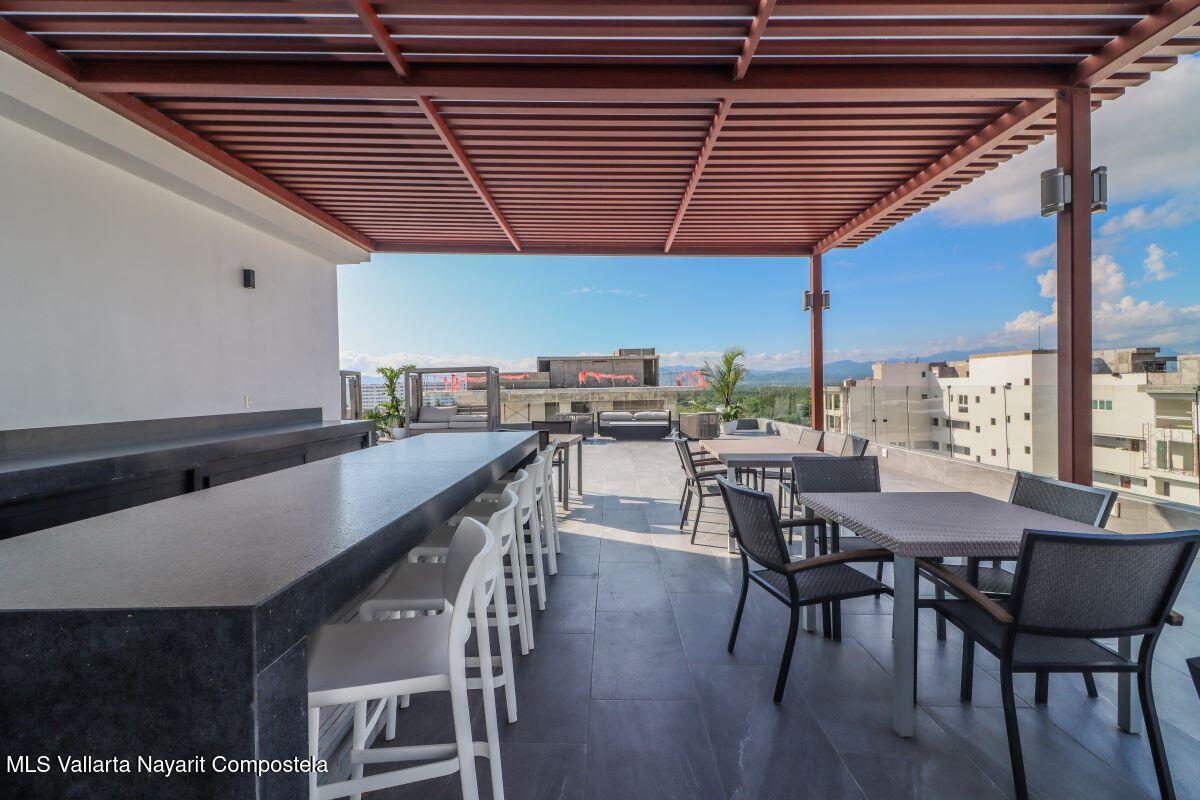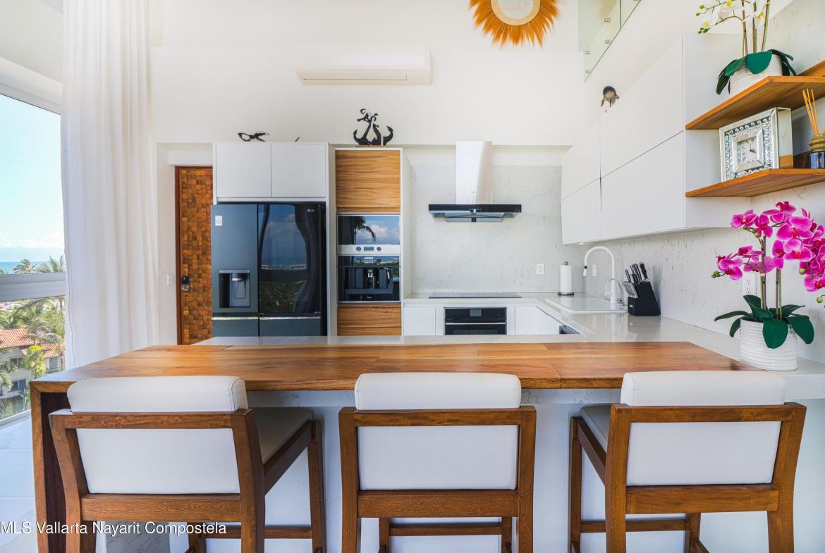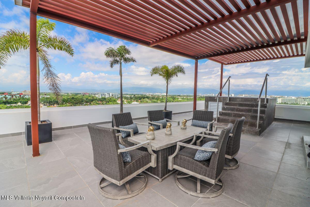 A residence where design, spaciousness, and surroundings blend in perfect harmony. This three-bedroom, five-bath penthouse offers a sophisticated lifestyle, with spaces focused on comfort and a direct connection to nature. Each bedroom is a bright sanctuary with large windows and private terraces overlooking the canal and pool. The fully equipped kitchen and living room feature double-height windows with electric blinds that elegantly control natural light. The main terrace includes dining area, and jacuzzi, perfect for enjoying uninterrupted views of the canal, villas, mountains, and distant sea. Located in Quinta San Miguel Ocean & Canal, the community offers a pool, gym, rooftop, and canal for water activities. Designed for those seeking the exceptional in Nuevo Vallarta.
