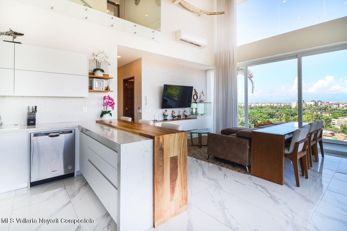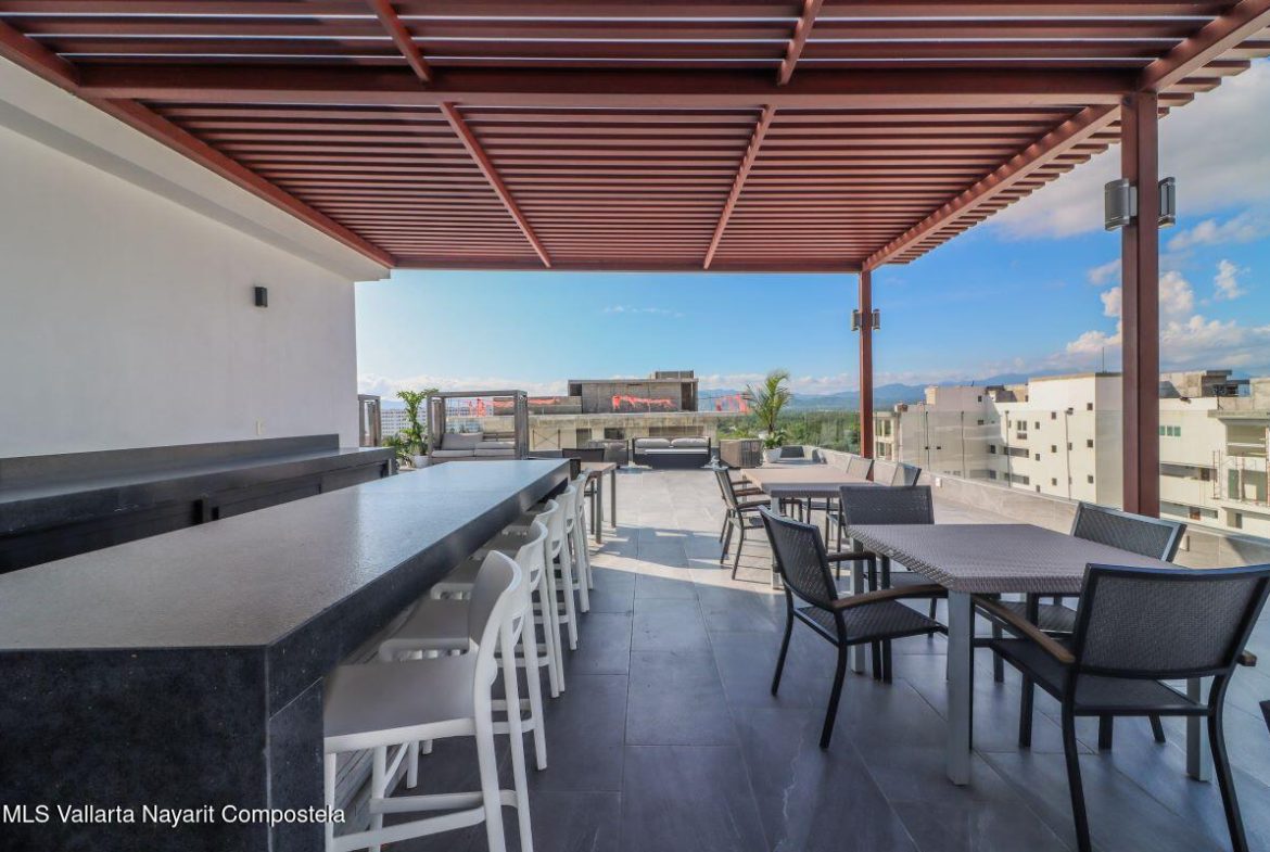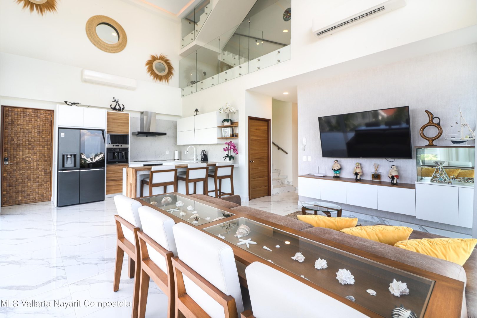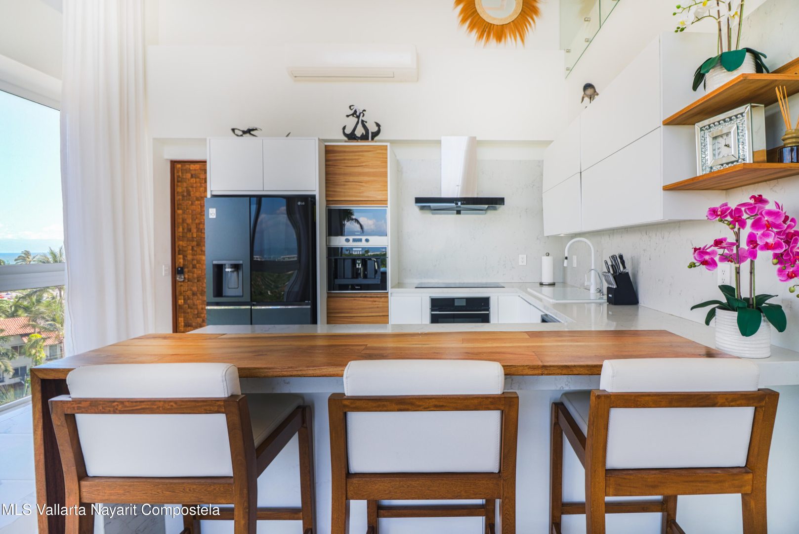A residence where design, spaciousness, and surroundings blend in perfect harmony. This three-bedroom, five-bath penthouse offers a sophisticated lifestyle, with spaces focused on comfort and a direct connection to nature. Each bedroom is a bright sanctuary with large windows and private terraces overlooking the canal and pool. The fully equipped kitchen and living room feature double-height windows with electric blinds that elegantly control natural light. The main terrace includes dining area, and jacuzzi, perfect for enjoying uninterrupted views of the canal, villas, mountains, and distant sea. Located in Quinta San Miguel Ocean & Canal, the community offers a pool, gym, rooftop, and canal for water activities. Designed for those seeking the exceptional in Nuevo Vallarta.