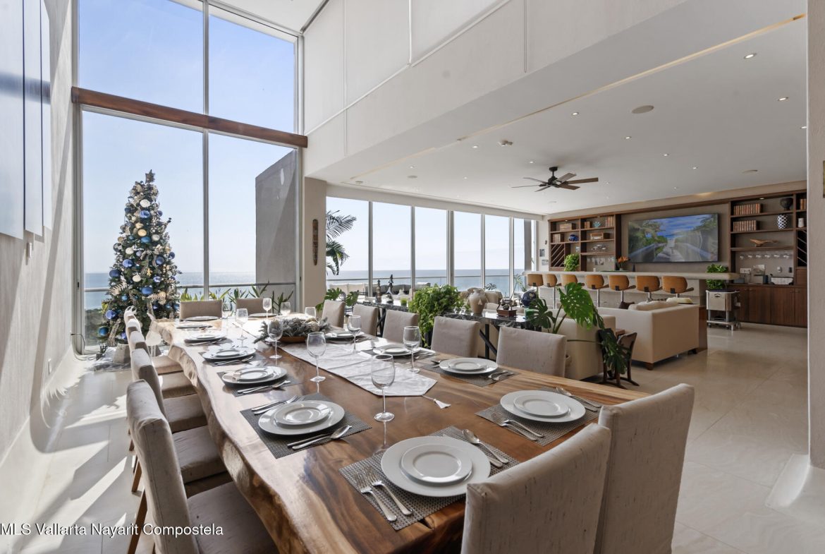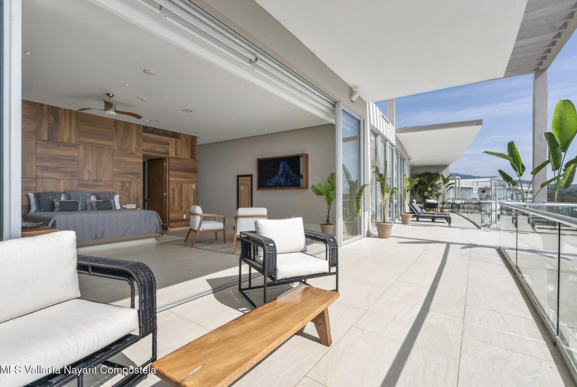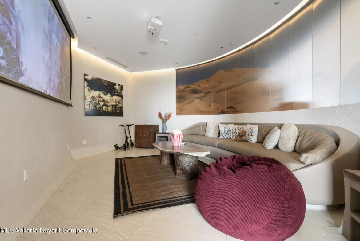 Este esspectacular penthouse ofrece impresionantes vistas al mar, cuenta con seis espaciosas recamaras, cada una con bano privado. La unidad incluye una elegante sala de estar y comedor, una sala de cine y una cocina gourmet equipada con cuatro refrigeradores y electrodomesticos de alta gama. Esta completamente amueblado y listo para disfrutar, con wifi de alta velocidad y un sistema inteligente de audio y video en todas las areas. Ubicado en el exclusivo desarrollo Bolongo en Punta de Mita, Nayarit.This spectacular penthouse features breathtaking ocean views and boasts six spacious bedrooms, each with an en-suite bathroom. The unit includes a stylish living and dining area, a dedicated cinema room, and a gourmet kitchen equipped with four refrigerators and top-of-the-line appliances