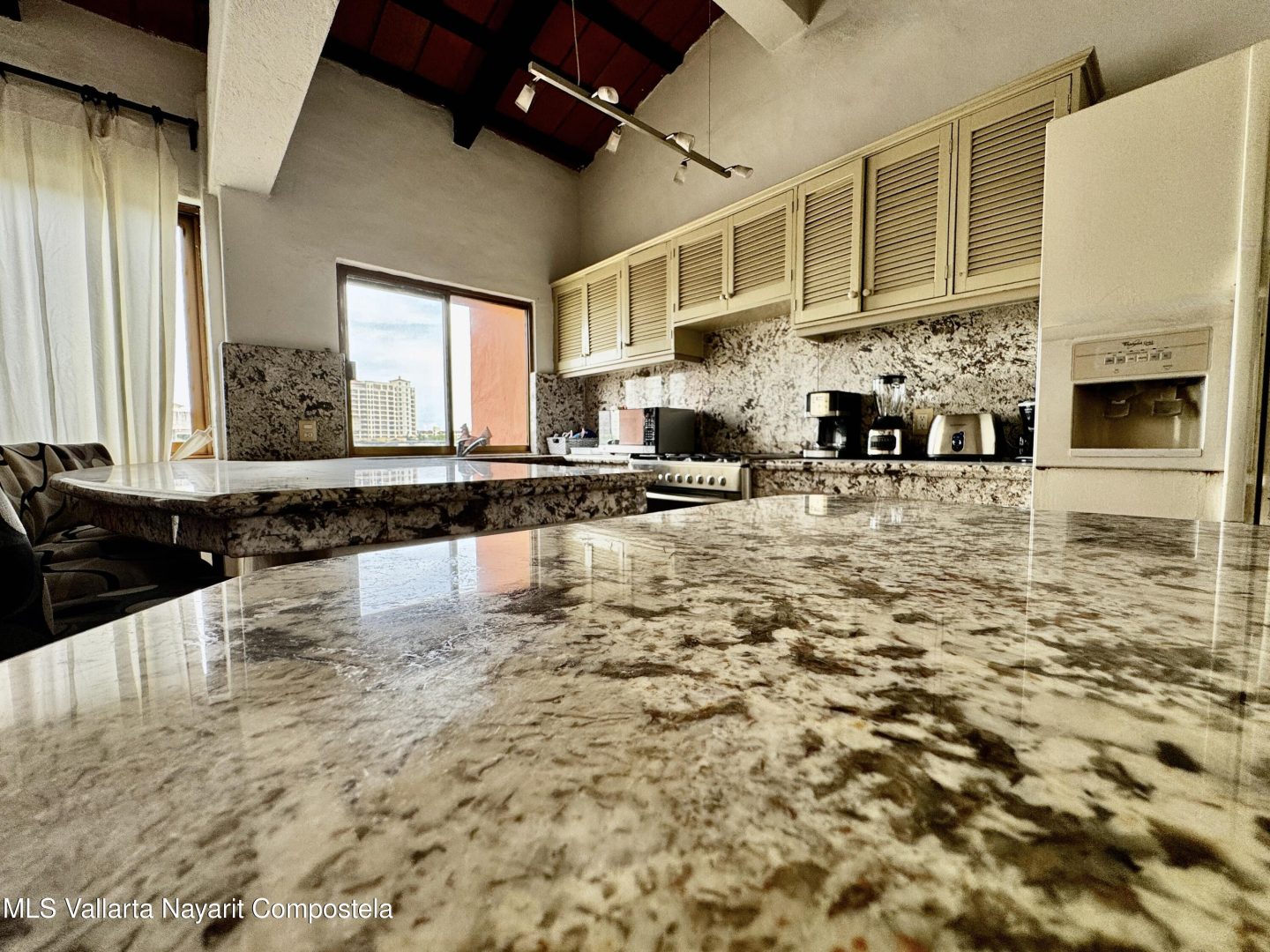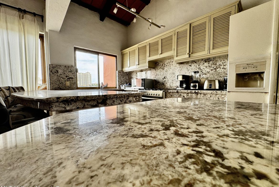 Pent House en venta en el lugar mas Vibrante por tradicion de Puerto Vallarta: La Marina, 2 Recamaras, techo doble altura y totalmente amueblado, cuenta con una extension en el area de la cocina y el marmol en cocina y sala fue remplazado hace algunos anos, disfruta de una vida estilo resort, dentro de un Club de tenis, con alberca, Palapa, Estacionamiento subterraneo, elevador, e idilicos jardines, seguridad 24/7. Con acceso al corredor de la marina, llega caminando a la zona de yates, y restaurantes, su ubicacion estrategica lo puntualiza en una cercania a hospitales, centros comerciales, restaurantes, hoteles y aeropuerto.