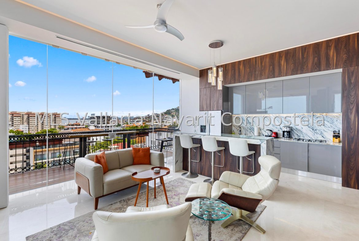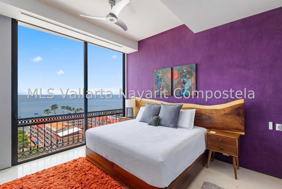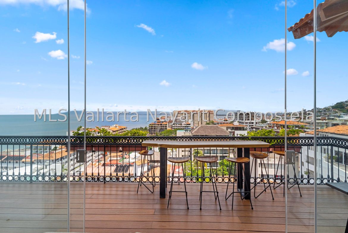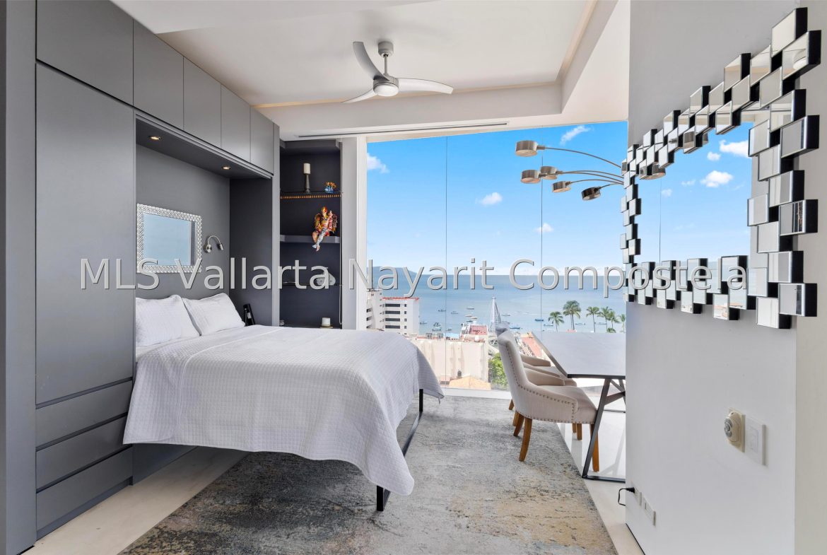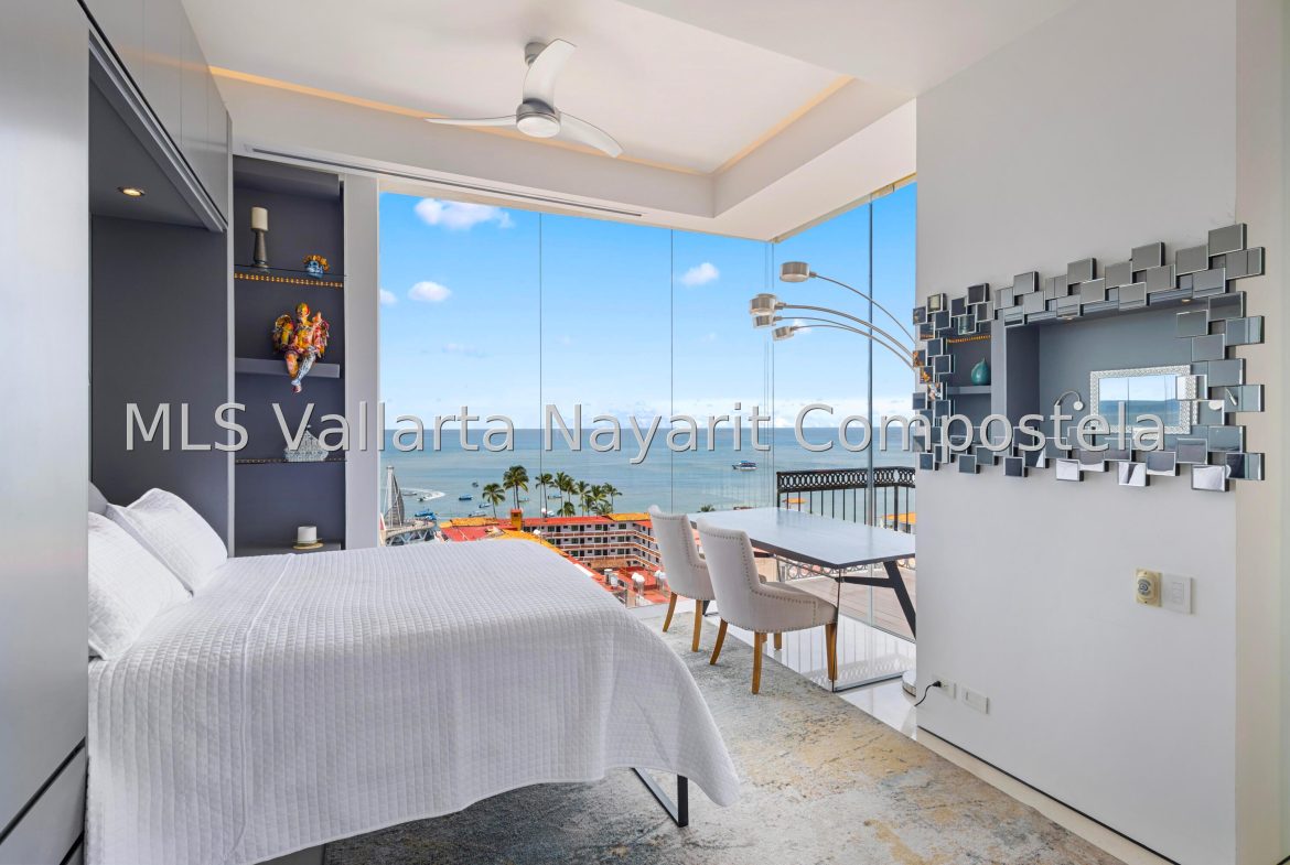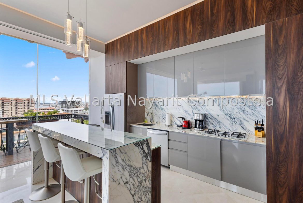 Discover the pinnacle of luxury living at Pier 57, the most modern building at Los Muertos Beach. This exquisite penthouse offers breathtaking views and an unparalleled lifestyle, featuring a stunning infinity pool with a unique fire pit at its center and bar service exclusively for residents.Step inside this modern masterpiece, where high ceilings and an open-concept layout create a spacious atmosphere. Floor-to-ceiling windows provide spectacular views of the ocean and Old Town Vallarta, seamlessly blending indoor and outdoor living. Your private terrace, known as ‘At the Top of the World,’ overlooks the picturesque Bay of Banderas and the iconic Los Muertos Pier, making it the perfect spot to unwind and enjoy breathtaking sunsets with a glass of wine.