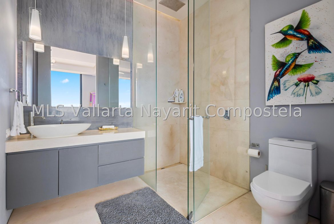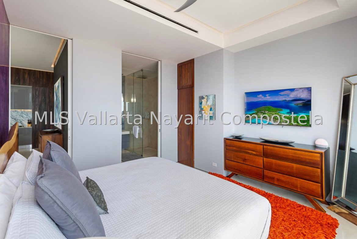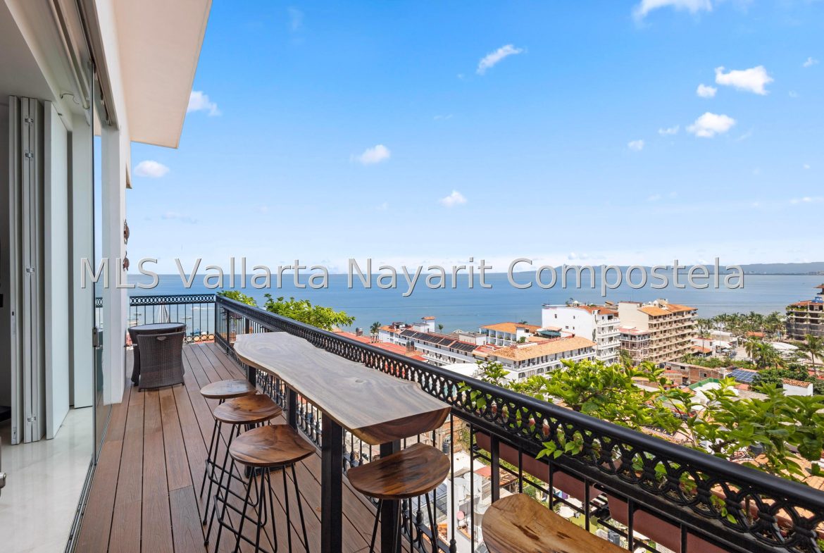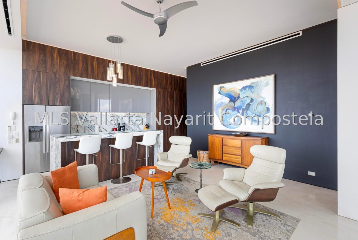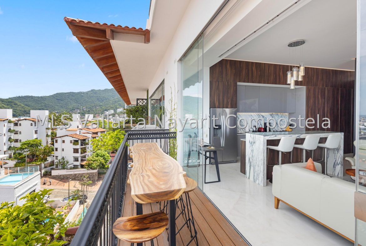 Discover the pinnacle of luxury living at Pier 57, the most modern building at Los Muertos Beach. This exquisite penthouse offers breathtaking views and an unparalleled lifestyle, featuring a stunning infinity pool with a unique fire pit at its center and bar service exclusively for residents.Step inside this modern masterpiece, where high ceilings and an open-concept layout create a spacious atmosphere. Floor-to-ceiling windows provide spectacular views of the ocean and Old Town Vallarta, seamlessly blending indoor and outdoor living. Your private terrace, known as ‘At the Top of the World,’ overlooks the picturesque Bay of Banderas and the iconic Los Muertos Pier, making it the perfect spot to unwind and enjoy breathtaking sunsets with a glass of wine.