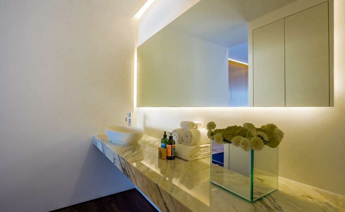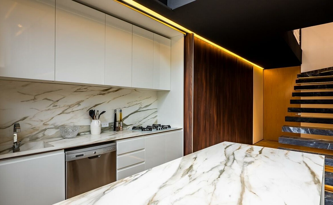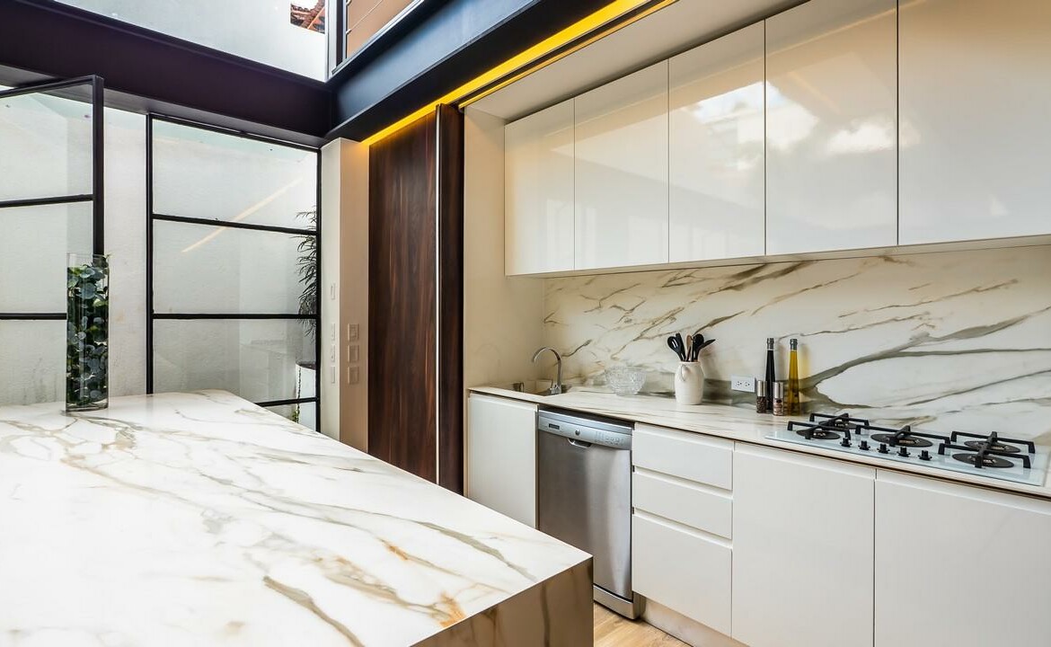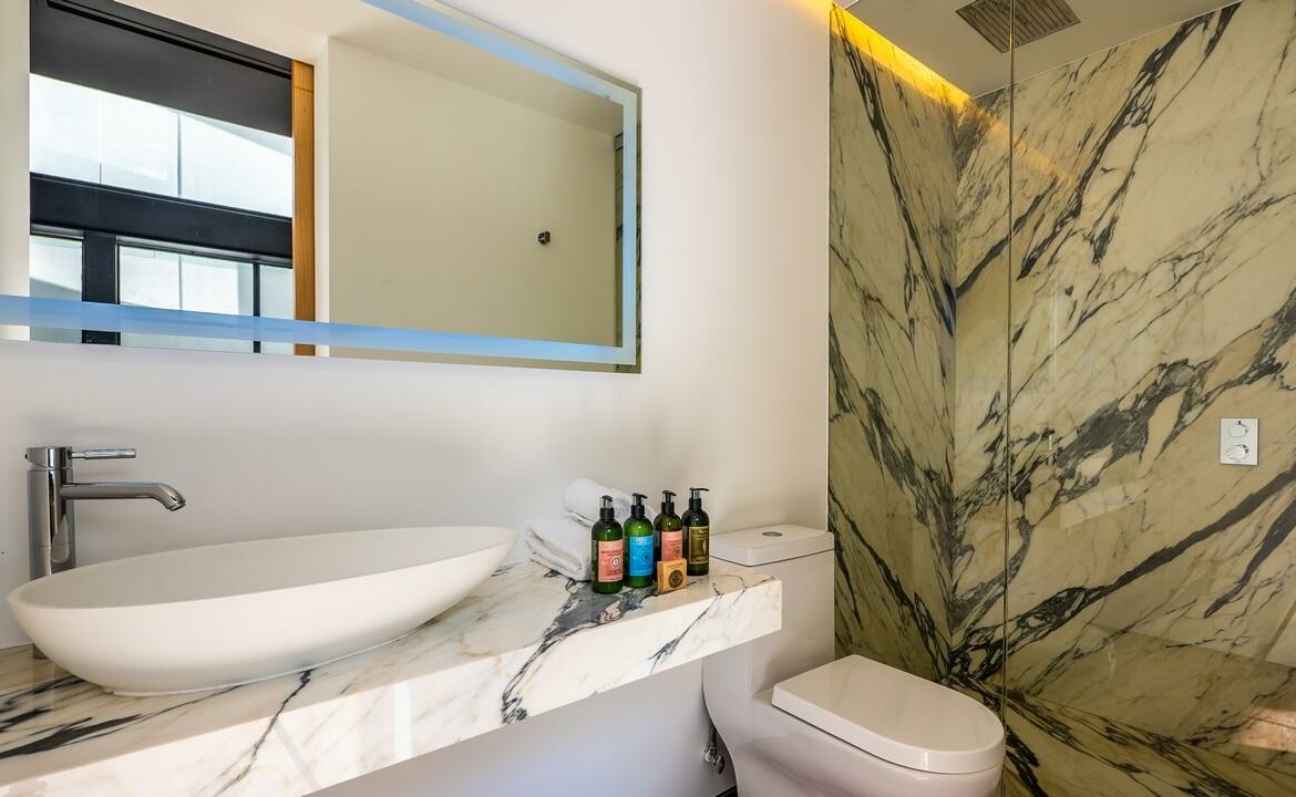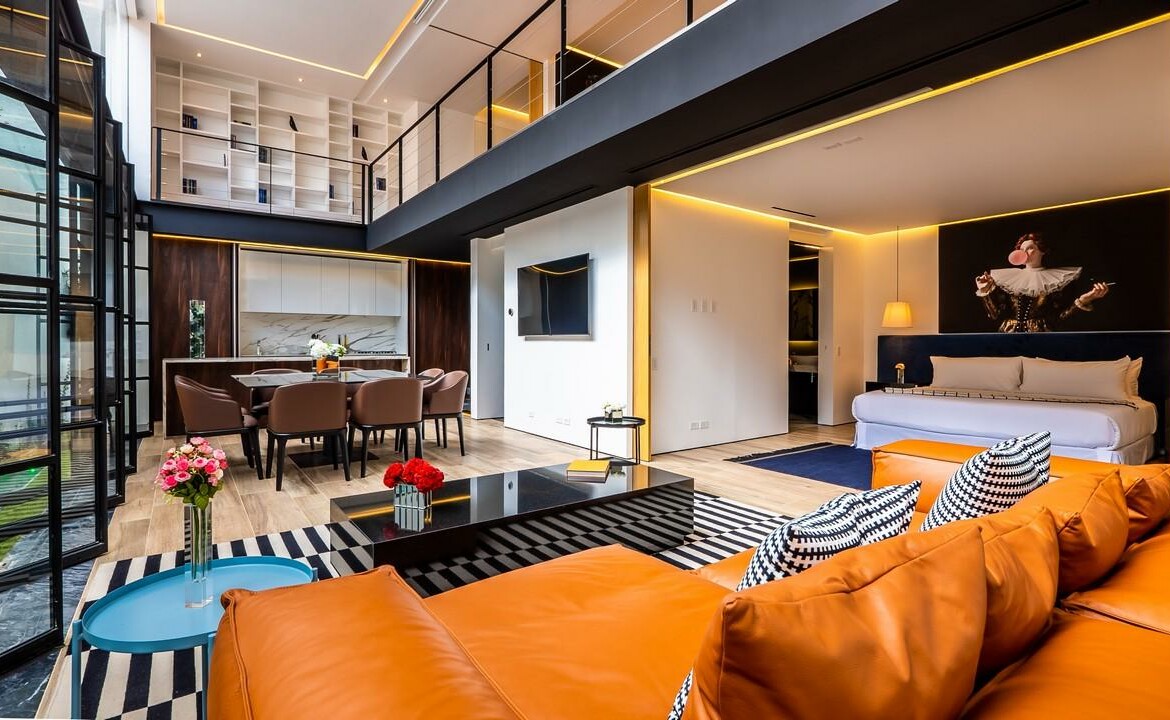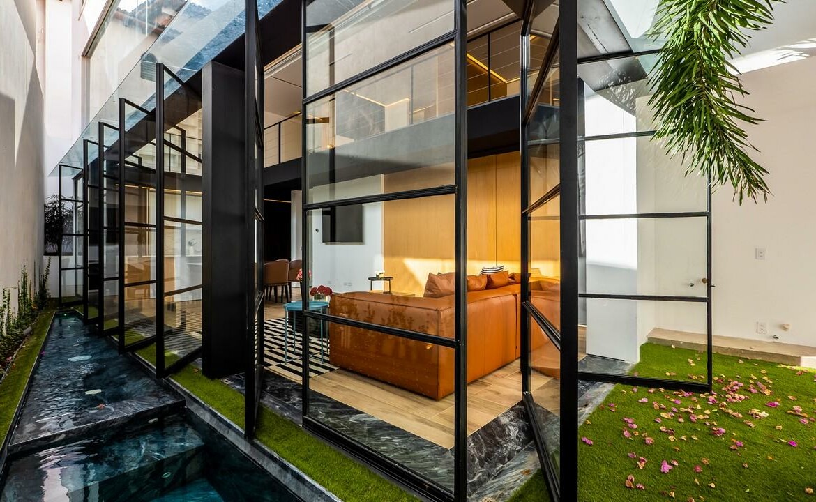 Cuando piensas en un condominio en el primer piso, no puedes empezar a imaginar la creacion de un espacio tan dramatico. Con mas una sensacion de hogar, este santuario privado es un estudio en el uso eficiente y elegante del espacio. Al entrar en la unidad, reconoce inmediatamente el detalle y el estilo para crear la primera expresion ”wow” con la pared con acento de roca que conduce al piso de arriba y la pared de paneles de madera que oculta la cocina italiana ultramoderna detras. El espacio de entretenimiento de la sala de estar, el comedor y la cocina se encuentran en un ambiente cohesivo y acogedor con cristaleria rectangular con marco de hierro forjado que abre el area al exterior con un paisaje verde y una fuente de agua que corre a lo ancho de la unidad.