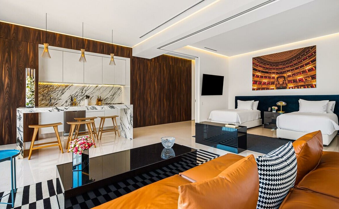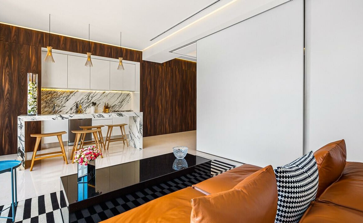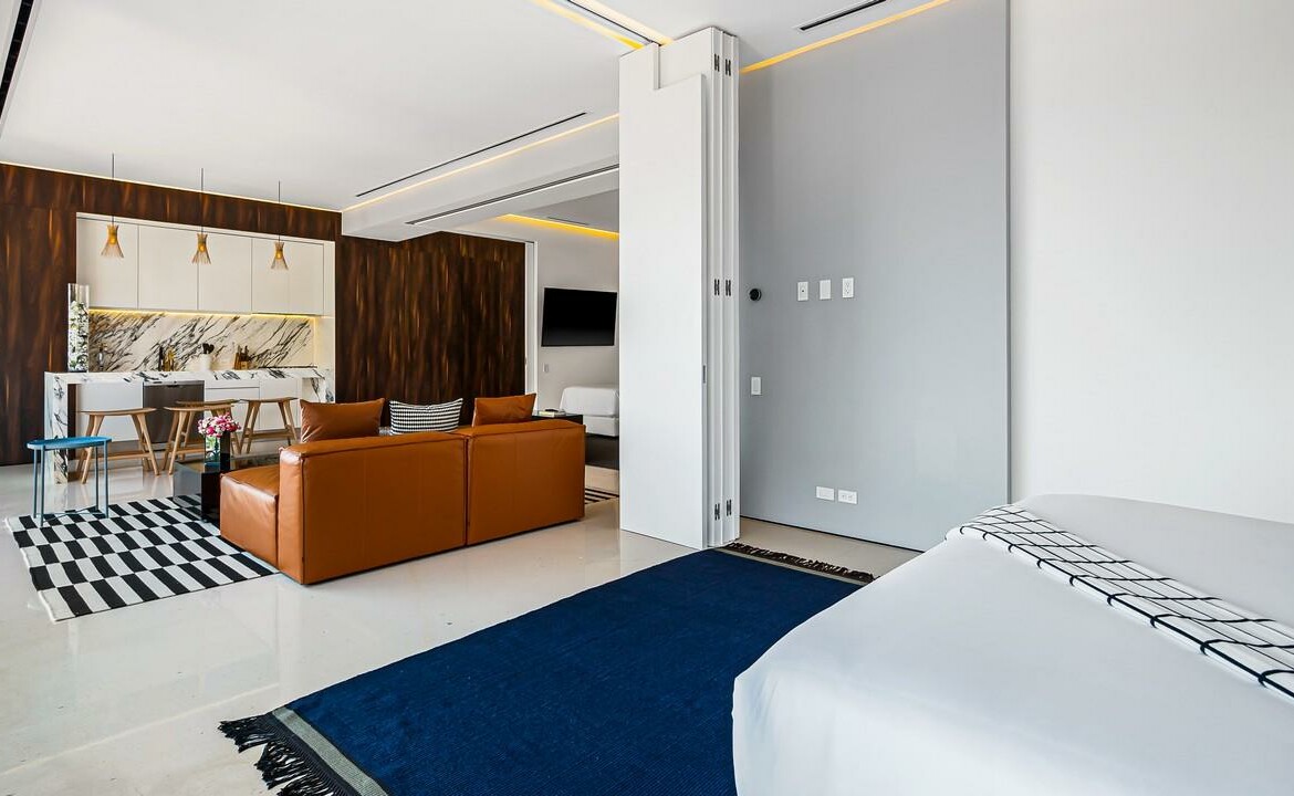 Innovador y adaptable son dos palabras que describen mejor los condominios Pier 57 inteligentemente disenados. El concepto unico de Pier 57 permite que cada hogar de 2 habitaciones y 2 banos se convierta en una gran habitacion con areas de estar mas grandes o en un espacioso apartamento tipo estudio Loft abierto, todo en aproximadamente 1,100 pies cuadrados de espacio habitable. Con al menos media docena de planos diferentes para elegir, las opciones de disposicion y distribucion son abundantes y pueden adaptarse a sus propias necesidades y deseos especificos. La opulencia es el estandar en Pier 57 con comodidades en la azotea que incluyen una piscina de borde estilo infinito, una terraza elevada para mayor privacidad, cabanas privadas con sistemas de entretenimiento,