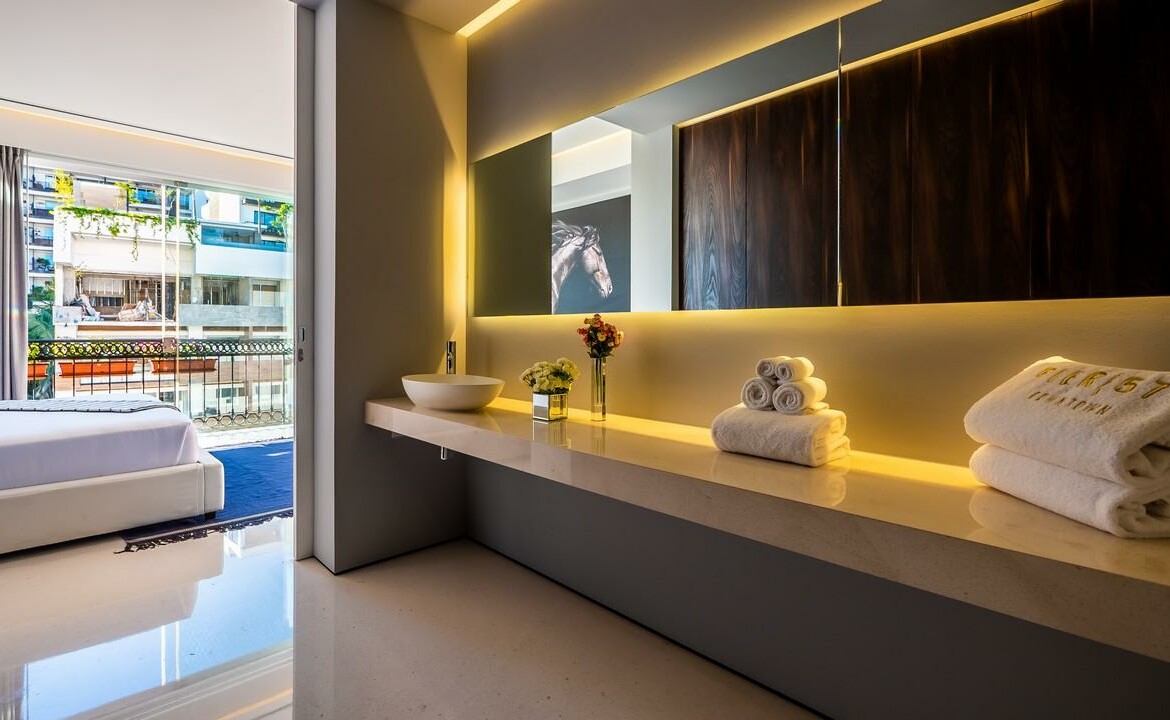 Innovador y adaptable son dos palabras que describen mejor los condominios Pier 57 inteligentemente disenados. El concepto unico de Pier 57 permite que cada hogar de 2 habitaciones y 2 banos se convierta en una gran habitacion con areas de estar mas grandes o en un espacioso apartamento tipo estudio Loft abierto, todo en aproximadamente 1,100 pies cuadrados de espacio habitable. Con al menos media docena de planos diferentes para elegir, las opciones de disposicion y distribucion son abundantes y pueden adaptarse a sus propias necesidades y deseos especificos. La opulencia es el estandar en Pier 57 con comodidades en la azotea que incluyen una piscina de borde estilo infinito, una terraza elevada para mayor privacidad, cabanas privadas con sistemas de entretenimiento,