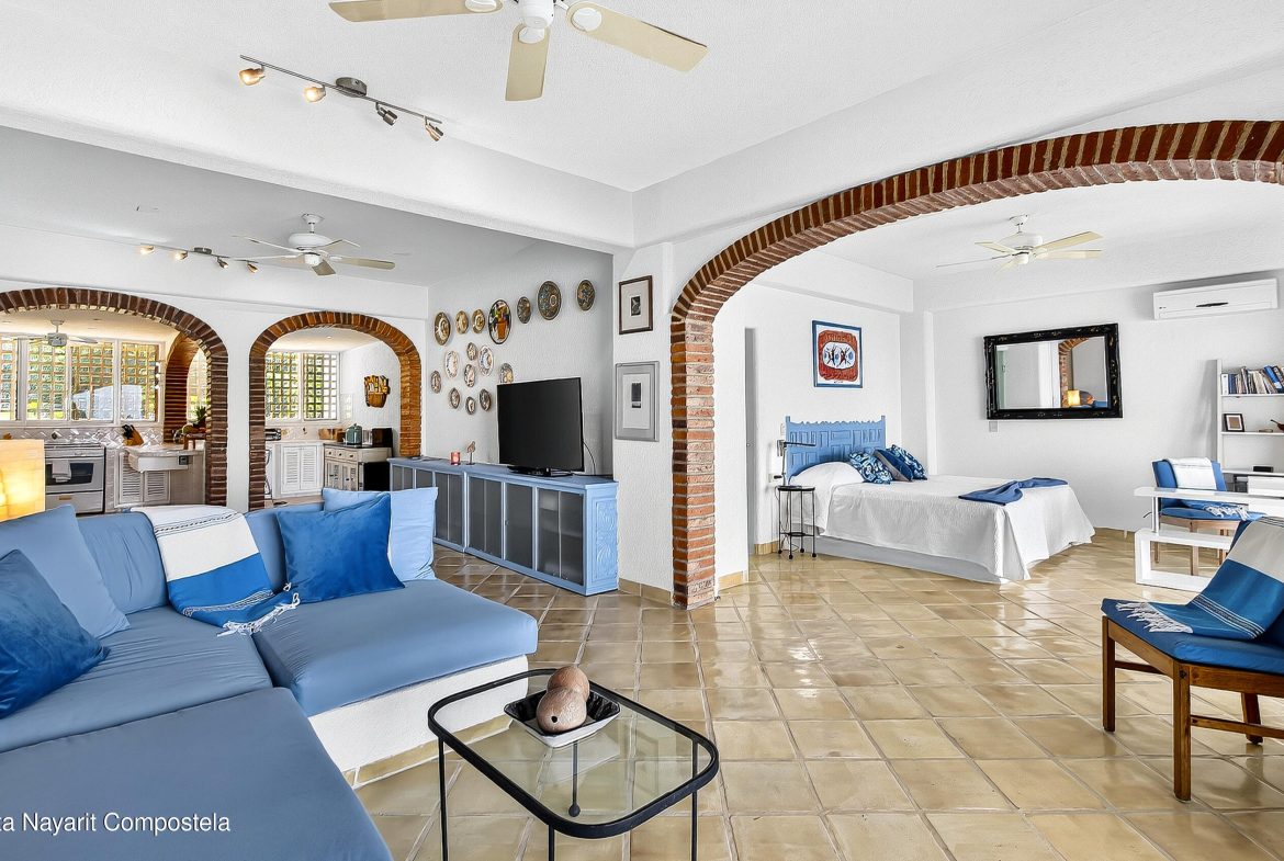 [English below] Descubre la sofisticacion costera en esta excepcional residencia de esquina ubicada en el septimo piso de Playa Gemelas, Torre Copal, una de las direcciones frente al mar mas codiciadas de Puerto Vallarta.Este condominio totalmente amueblado de 2 recamaras y 2 banos abarca 152.5 m y ofrece impresionantes vistas panoramicas: el brillante oceano y los iconicos Arcos de Mismaloya por un lado, y la exuberante Sierra Madre por el otro.El diseno de concepto abierto, cuidadosamente planeado, realza la luz natural y la fluidez del espacio, mientras que la cocina ampliada brinda un area extraordinaria para convivir, recibir invitados y disfrutar la vida diaria — verdaderamente el corazon del hogar.