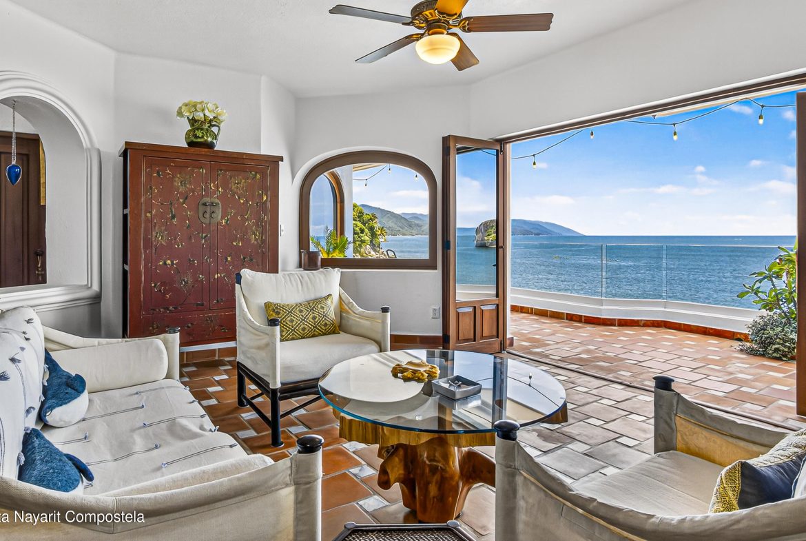 [English below]Viva una experiencia unica frente al mar en este exclusivo desarrollo de solo 8 unidades, ubicado justo frente a los iconicos Arcos de Mismaloya. Aqui, realmente se siente como si estuviera flotando sobre el oceano, con vistas panoramicas tan cercanas que podria casi tocarlas.Este condominio de 2 recamaras y 2 banos ofrece un diseno amplio y abierto, amueblado con buen gusto para brindar confort y estilo. Disfrute de la alberca comun, o el mar para practicar kayak o simplemente contemplar la belleza de la Bahia de Banderas.Una oportunidad unica de tener un hogar rodeado de mar, con la naturaleza a un lado.