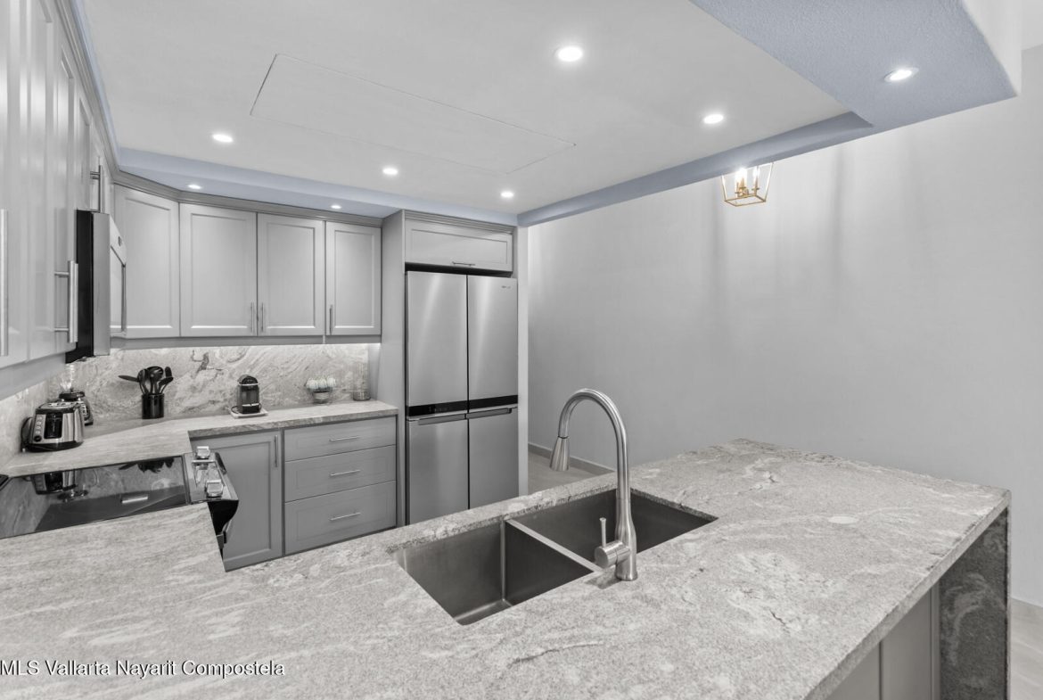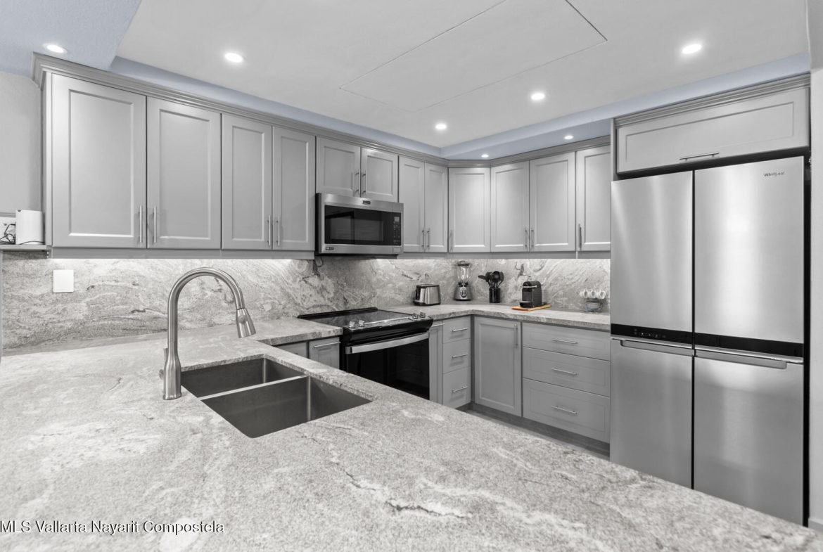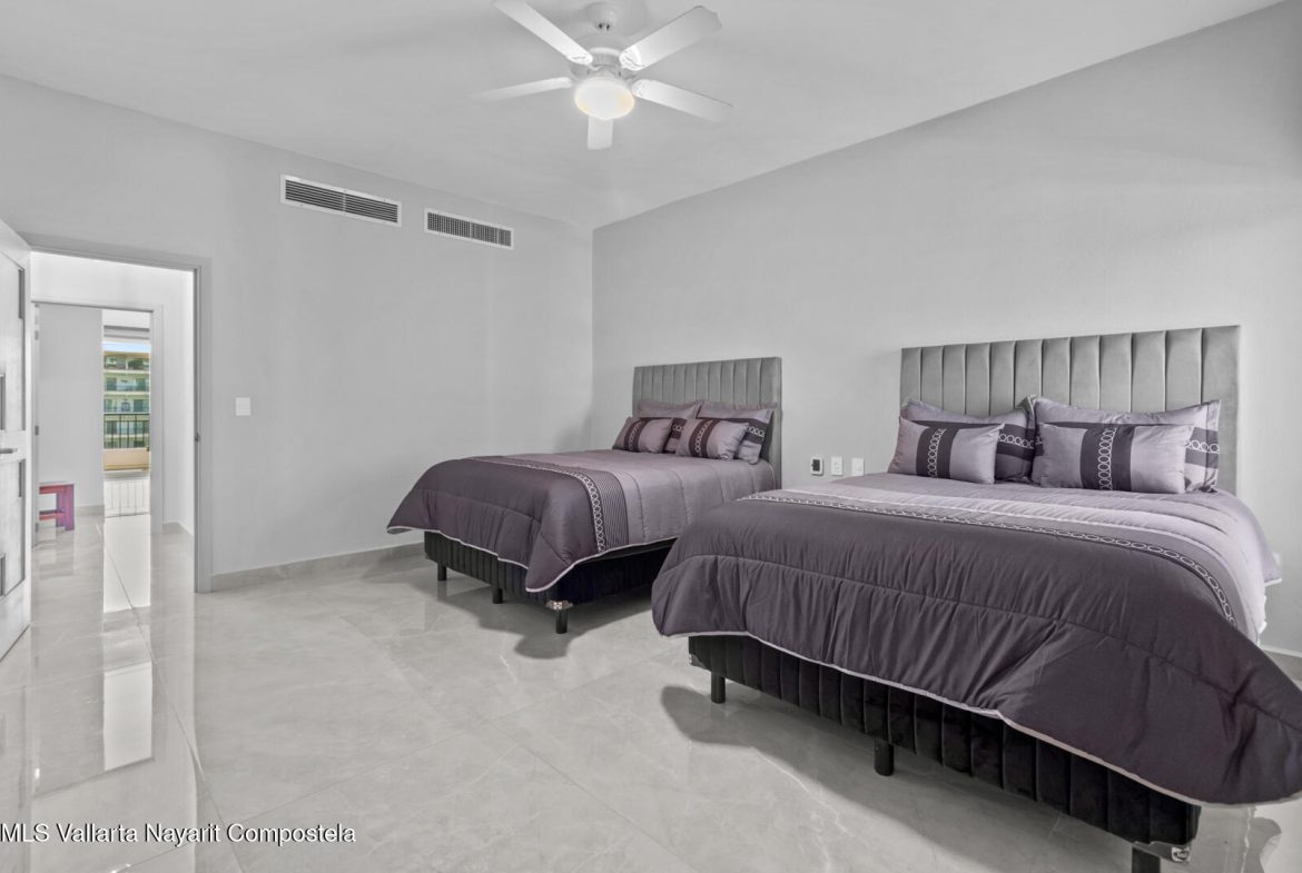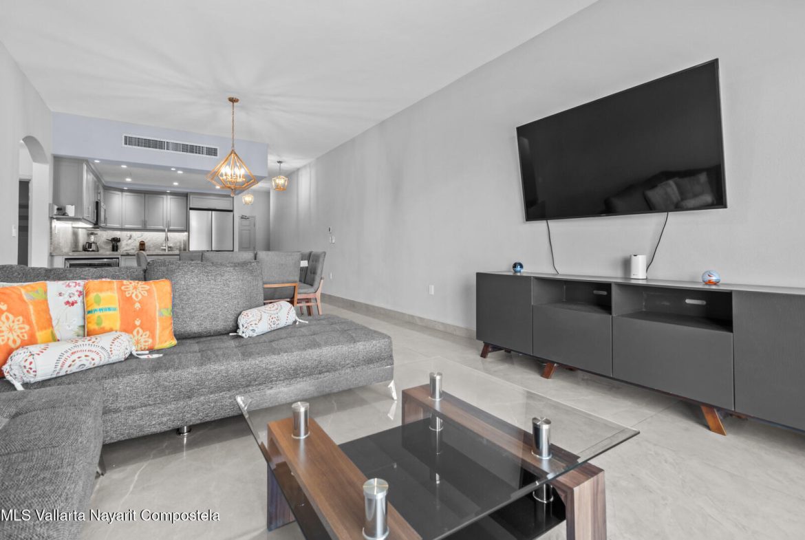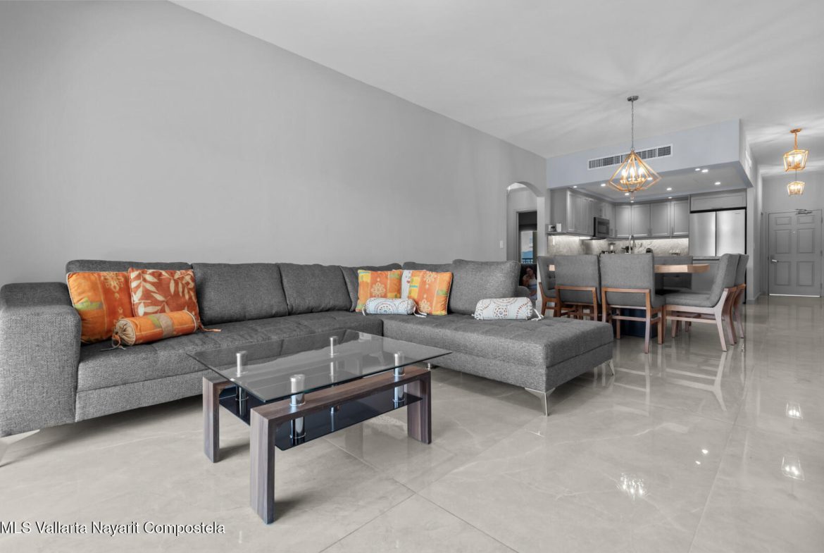 This delightfully elegant and modern 2 bedroom 2 bathroom 7th floor unit in tower IV, will hold you captive to its beautiful views of Banderas Bay. This property has a very spacious deck which is perfect for entertaining friends and family. Attention to detail and style is what this completely renovated and modernized property will show off to all who visit. All new furniture and appliances are included with this property making it a complete turn key unit ready to enjoy.It’s located in the prestigious ocean front development of Playa Royale Tower IV, which dignifies it with the social membership that has all the amenities one can wish for, such as access to the sports & racquet club, European spa, Beach Club, and 50% discount on golf rounds. Ask for an appointment to see this jewel!