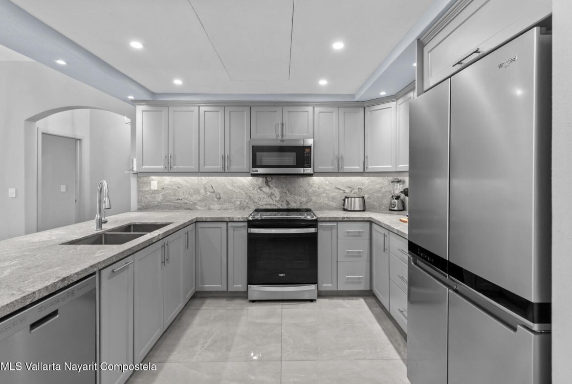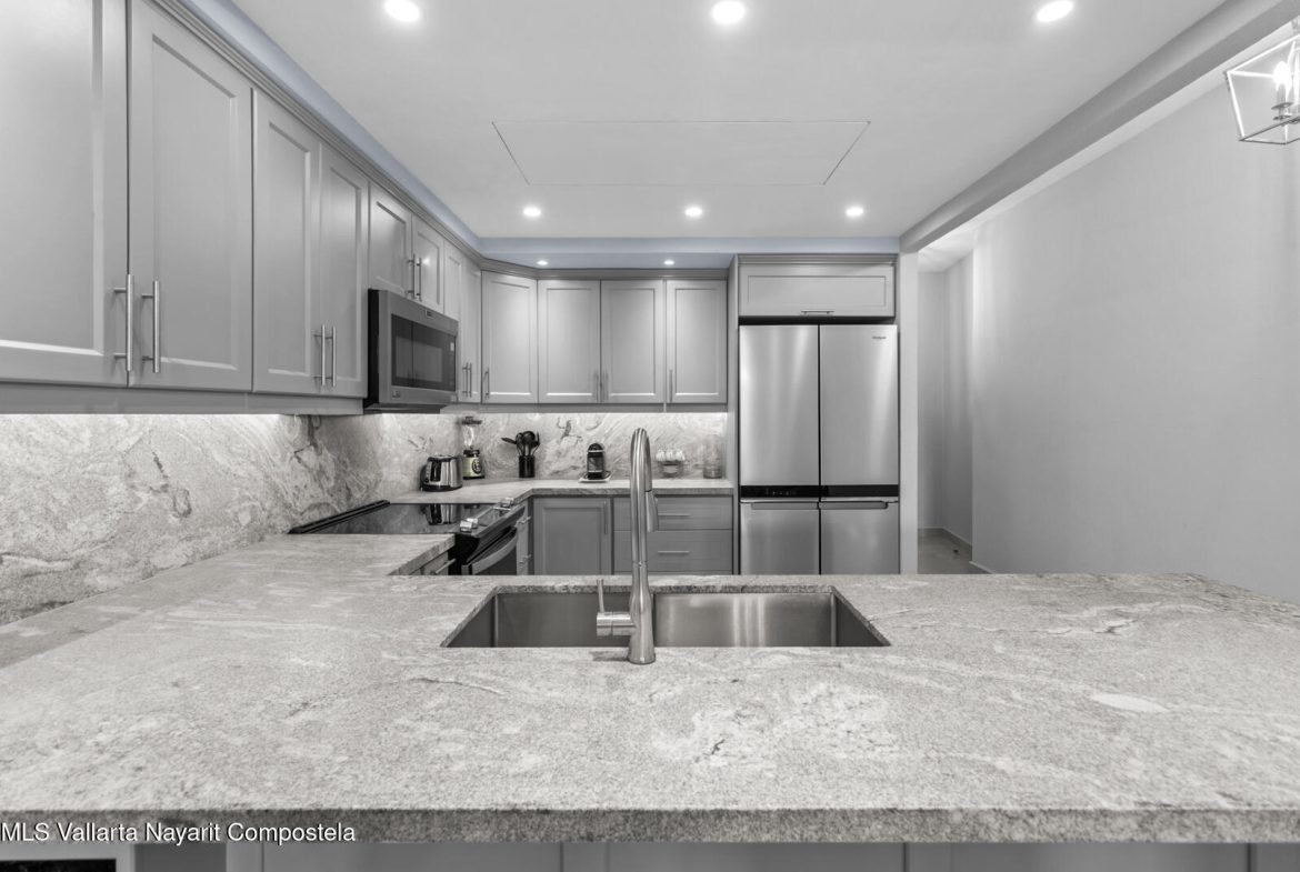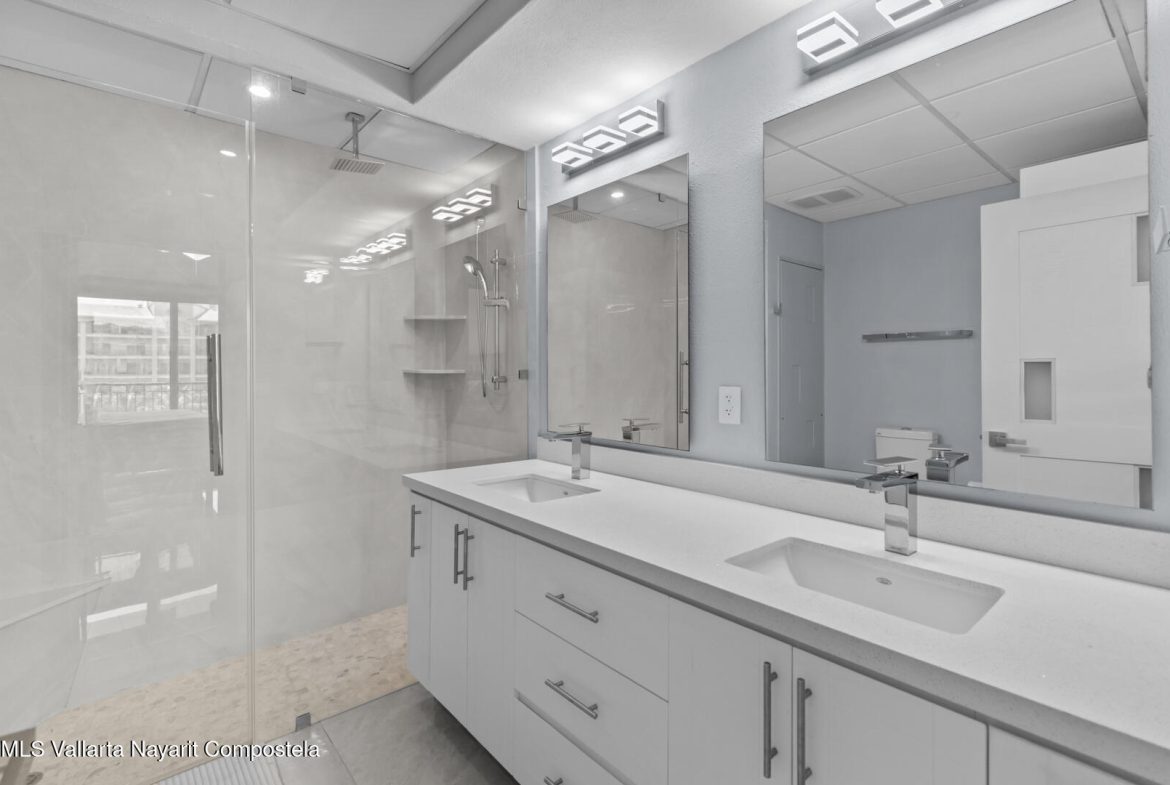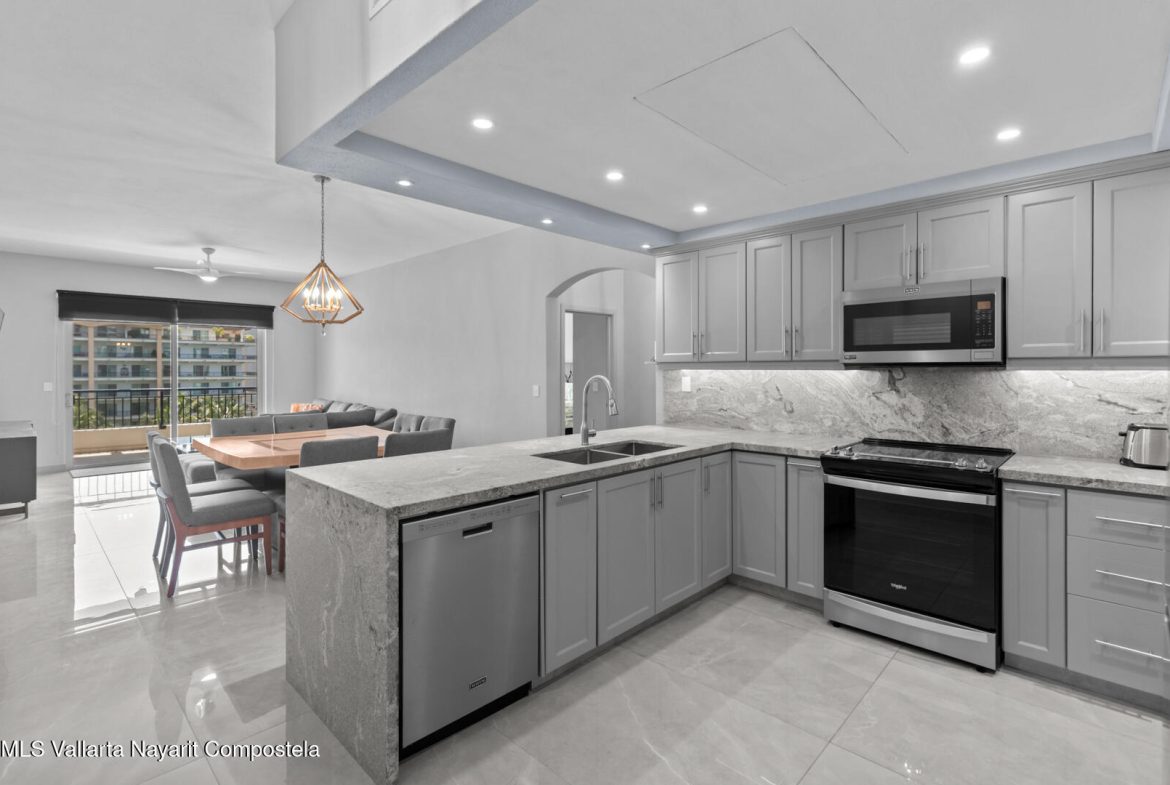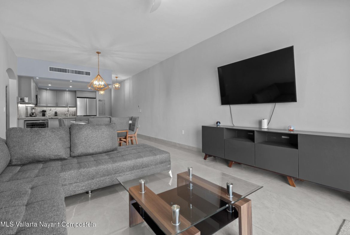 This delightfully elegant and modern 2 bedroom 2 bathroom 7th floor unit in tower IV, will hold you captive to its beautiful views of Banderas Bay. This property has a very spacious deck which is perfect for entertaining friends and family. Attention to detail and style is what this completely renovated and modernized property will show off to all who visit. All new furniture and appliances are included with this property making it a complete turn key unit ready to enjoy.It’s located in the prestigious ocean front development of Playa Royale Tower IV, which dignifies it with the social membership that has all the amenities one can wish for, such as access to the sports & racquet club, European spa, Beach Club, and 50% discount on golf rounds. Ask for an appointment to see this jewel!
