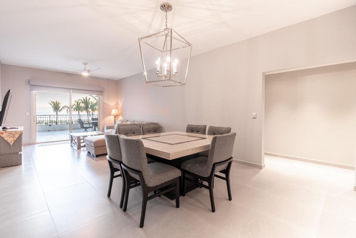 This delightfully elegant and modern 2 bedroom 2.5 bathroom center unit on the third floor of tower I, will hold you captive to its picturesque views of Banderas Bay. This once of a life time and unique tropical oasis has an immense and commanding terrace of over 400Ft2, perfect for entertaining large groups of friends and family. Attention to detail and style is what this completely renovated and modernized property will show off to all who visit. An elegant full extra bathroom off the second bedroom suit was conveniently added to ensure extra privacy, while guests have their own fully renovated half bathroom. All new furniture and appliances are included with this property making it a complete turn key unit ready to enjoy.