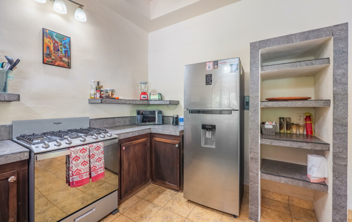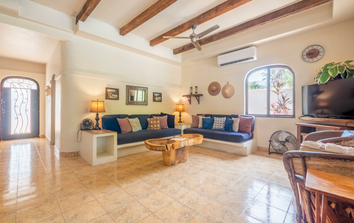 At the heart of Poncho’s Villa is a refined two-bedroom, two-bath home that flows seamlessly into a lush garden with a sparkling saltwater pool. Designed with traditional Mexican accents and graceful details, the main residence is spacious, inviting, and perfectly suited for indoor-outdoor living. The poolside setting, framed by palm trees and vibrant landscaping, creates a private retreat just steps from the living areas.Complementing the main house are two self-contained rental apartments, each with its own full kitchen and private entrance from the street side. Thoughtfully designed and well-appointed, these apartments offer flexibility for long or short-term rentals while maintaining privacy from the main residence.