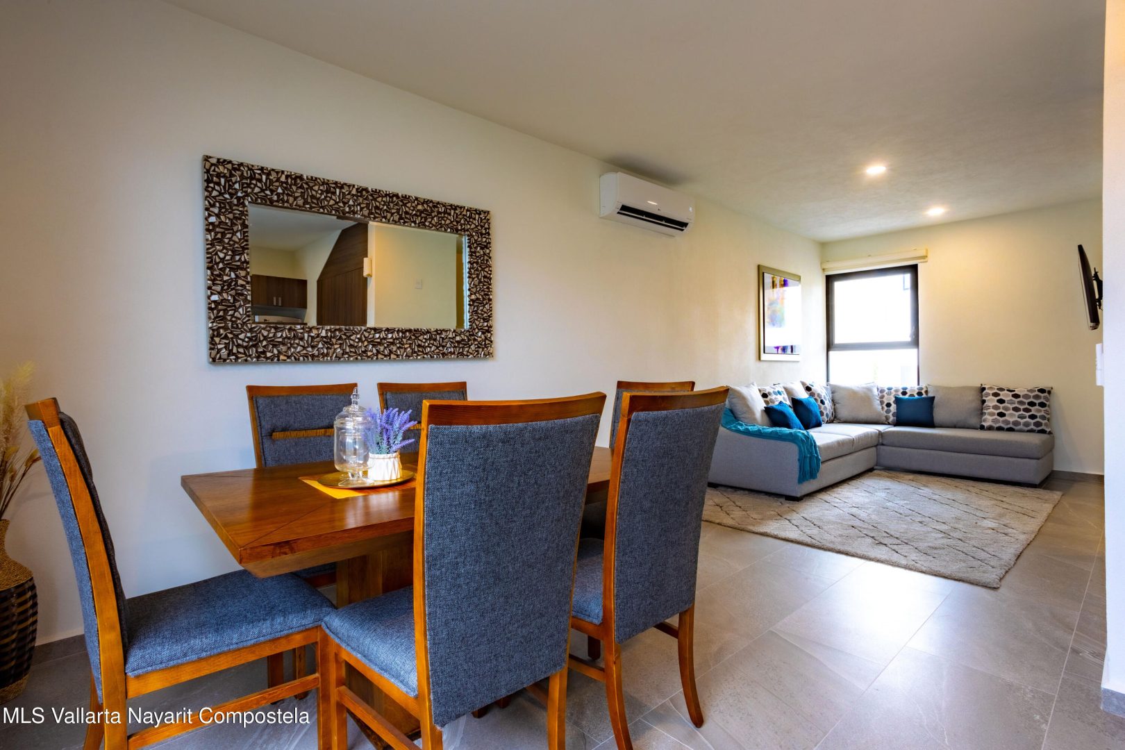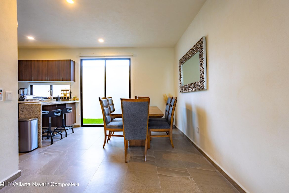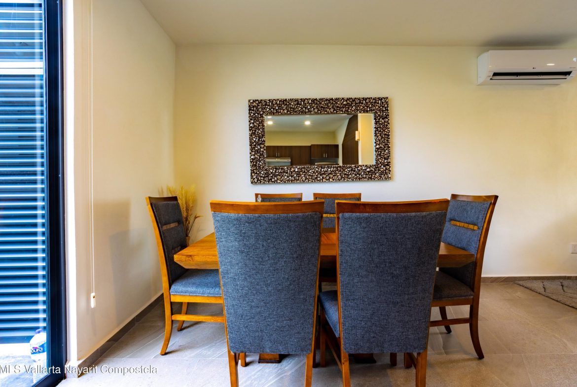 Hermosa casa nueva en fraccionamiento privado con seguridad 24/7, totalmente amueblada y equipada, ideal para disfrutar en familia. En planta baja cuenta con estacionamiento para dos autos, amplia sala, comedor para seis personas, cocina integral con desayunador, jardin posterior y area de lavanderia. En el primer nivel se encuentran tres recamaras con closet y dos banos completos. La azotea esta disenada para la convivencia con barra, lavabo, asador y pergola. El fraccionamiento dispone de alberca, camastros, mesas, banos, regaderas y zona infantil. Todas las areas cuentan con aire acondicionado y es pet friendly.