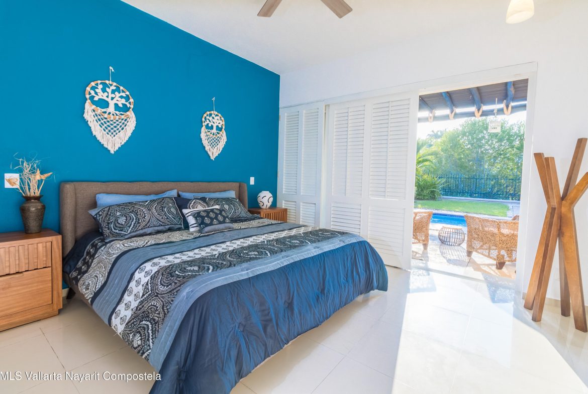 Beautiful residence featuring 3 spacious bedrooms plus a flex space within the primary suite–ideal for a home office, nursery, or personal retreat. One of the bedrooms is conveniently located on the ground floor, offering direct access to the pool–perfect for guests or multigenerational living.Each bedroom is equipped with its own private bathroom, ensuring comfort and privacy for all. Upstairs, you’ll find two additional bedrooms filled with natural light and views of the lush tropical surroundings.This home is surrounded by swaying palm trees, and offers access to a swimming pool and jacuzzi, creating the perfect setting for relaxation. Enjoy breathtaking sunsets and a true sense of tranquility–a priceless luxury in today’s fast-paced world.