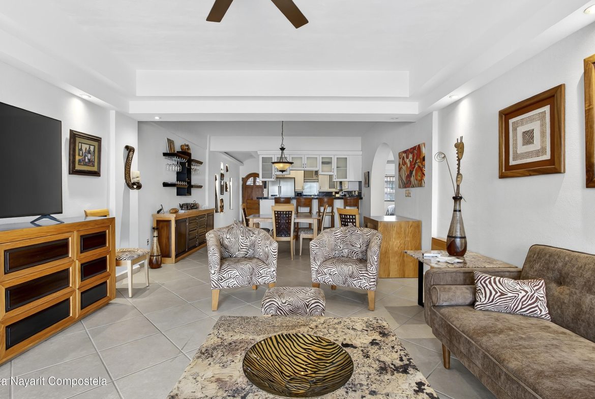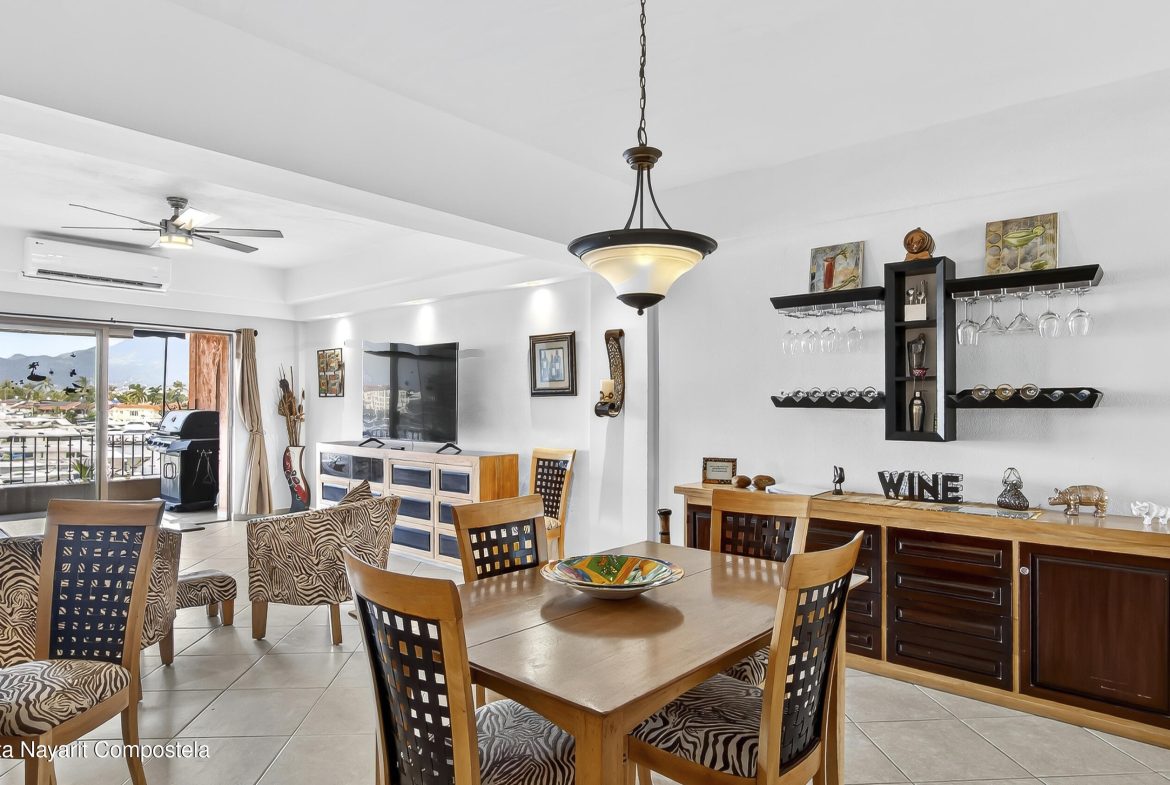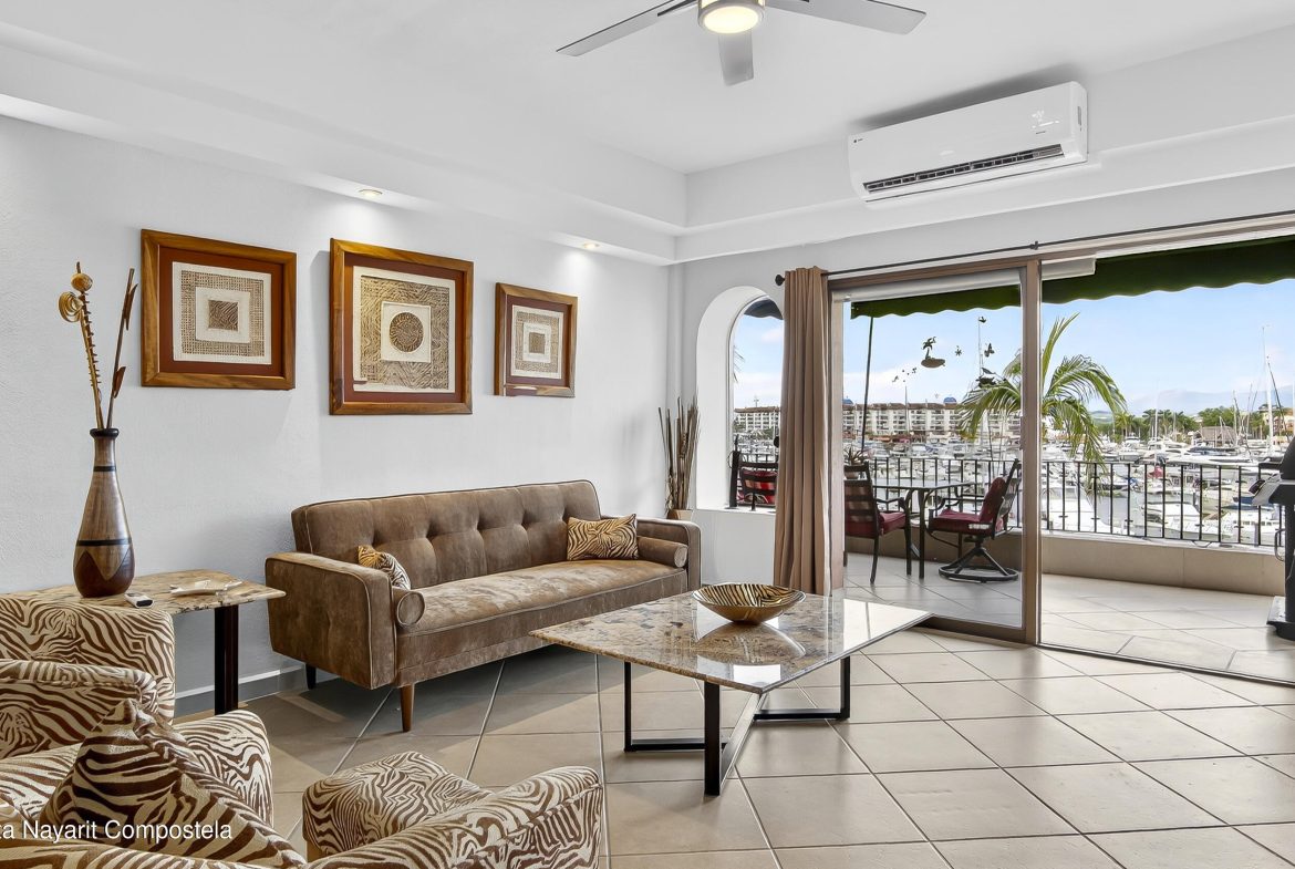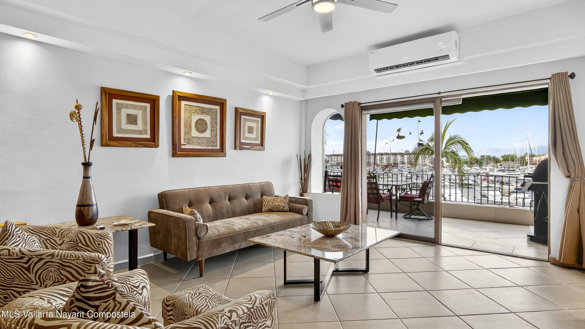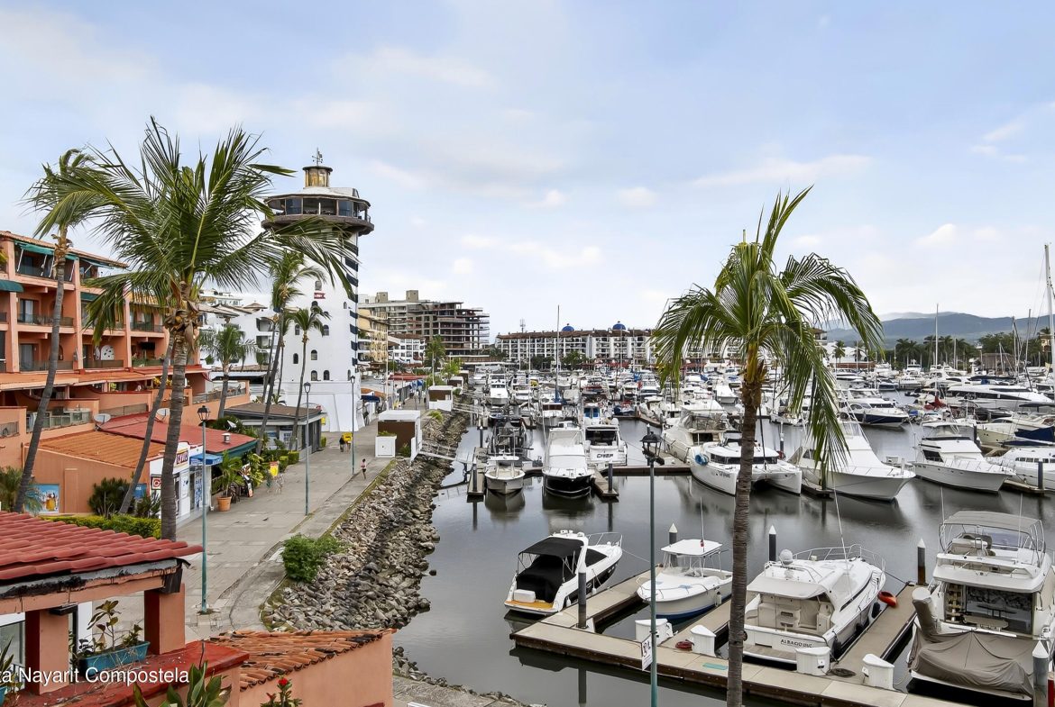 Live the tropical resort lifestyle in vibrant Marina Vallarta! This spacious 2-bedroom, 2-bath condo is tastefully furnished & offers stunning views of the 350-slip marina& mountains. Enjoy an open floor plan with high ceilings, a private terrace, and a principal bedroom w/ ensuite bath. Conveniently located across from the Golf Course & just one block from the beach. You’ll love the walkable lifestyle surrounded by shops, cafes, and restaurants. Amenities include a large circular pool, lush gardens, 4 tennis courts, & 24-hour security. This condo is perfect for a vacation retreat, a rental investment or your dream home!