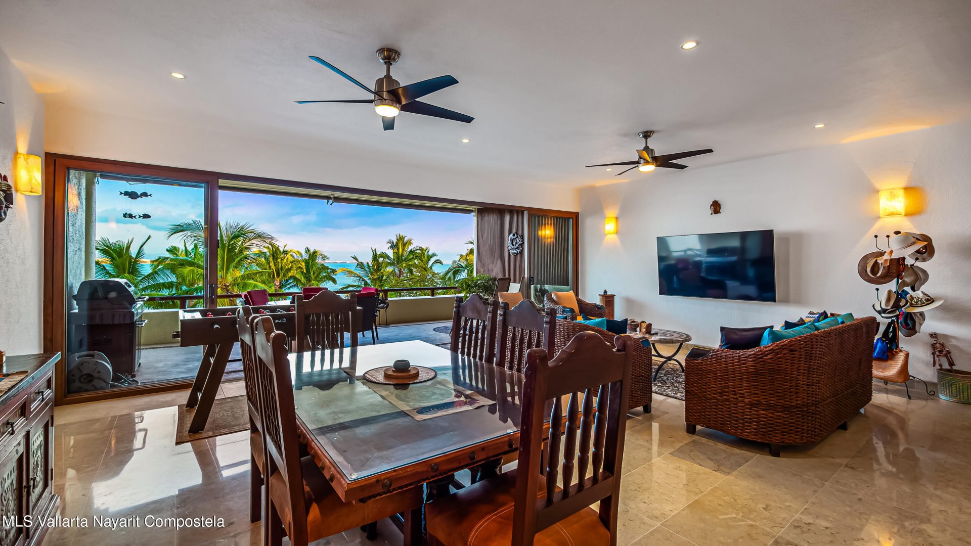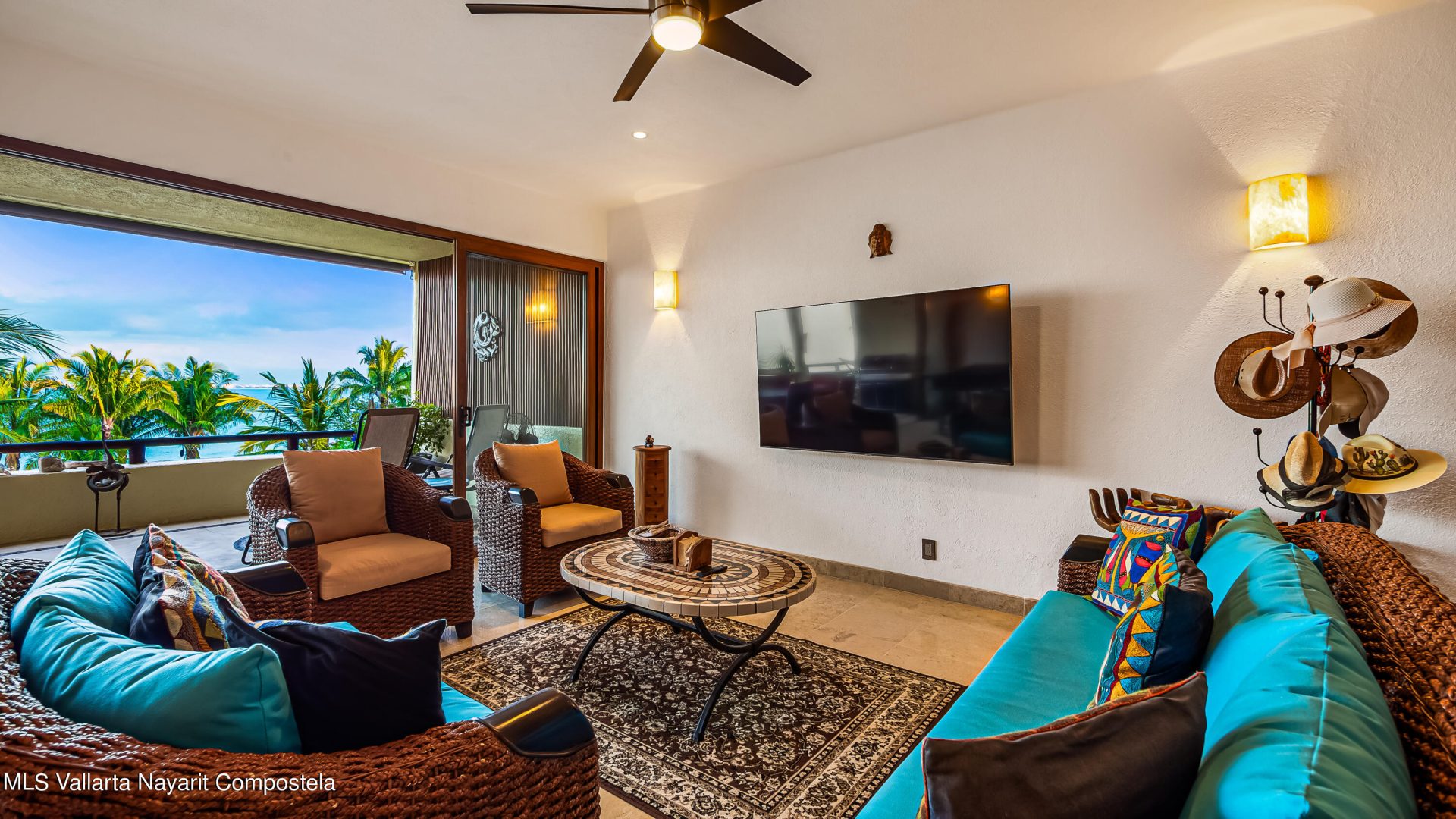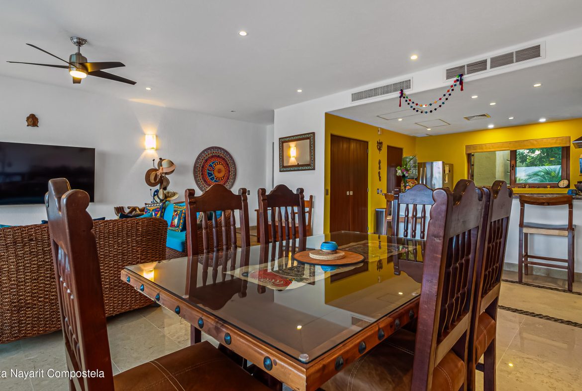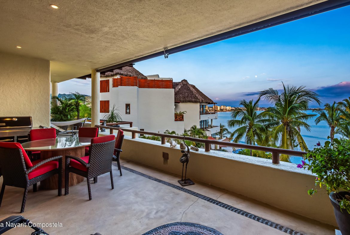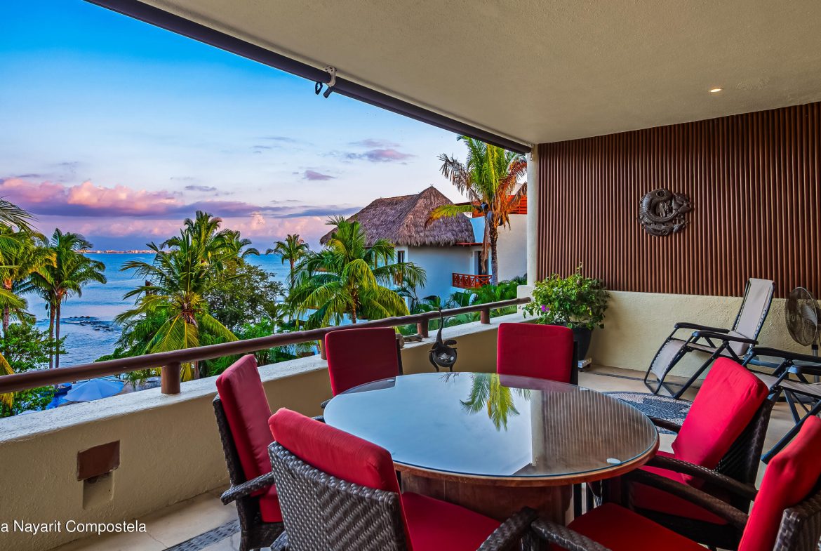 Tu refugio sonado frente al mar te espera en Punta Esmeralda! Disfruta esta residencia lista para mudarte, con diseno abierto, amplia sala y balcon con vistas espectaculares a la bahia. Todo en una sola planta con acceso por elevador, 2 recamaras con vista al mar y 1 con vista a la montana. Recientemente renovada con modernos gabinetes de cocina, pintura fresca y cortinas nuevas.Vive el estilo resort con 8 albercas infinitas, gimnasio, spa, canchas de tenis y pickleball, areas de yoga, jardines, club de playa y seguridad 24/7. Ubicada a pasos de restaurantes y Bucerias, y a solo 25 minutos del Aeropuerto de Vallarta. Agenda tu visita hoy y empieza a vivir el sueno!
