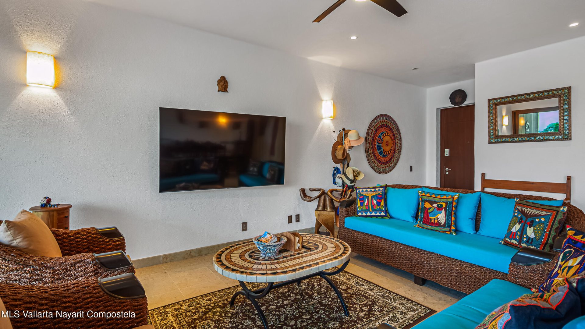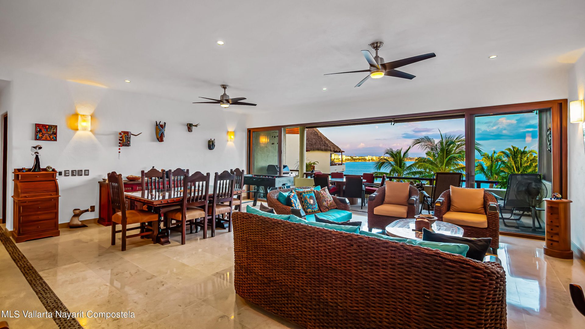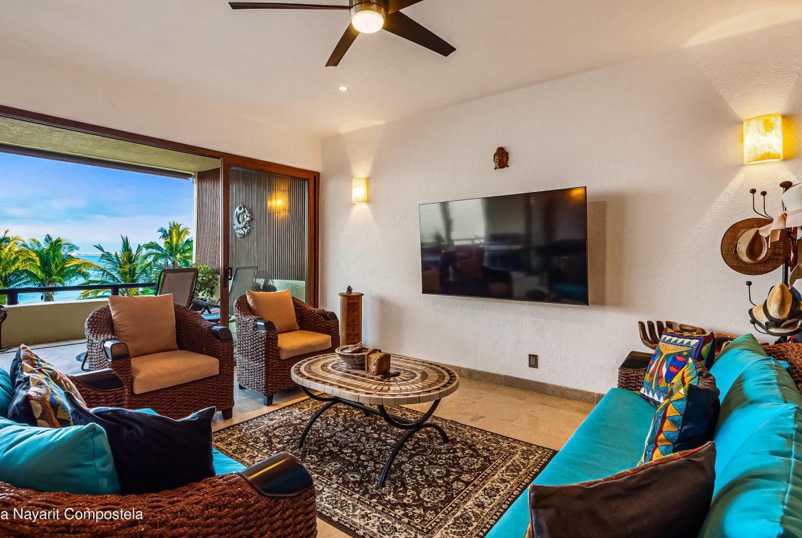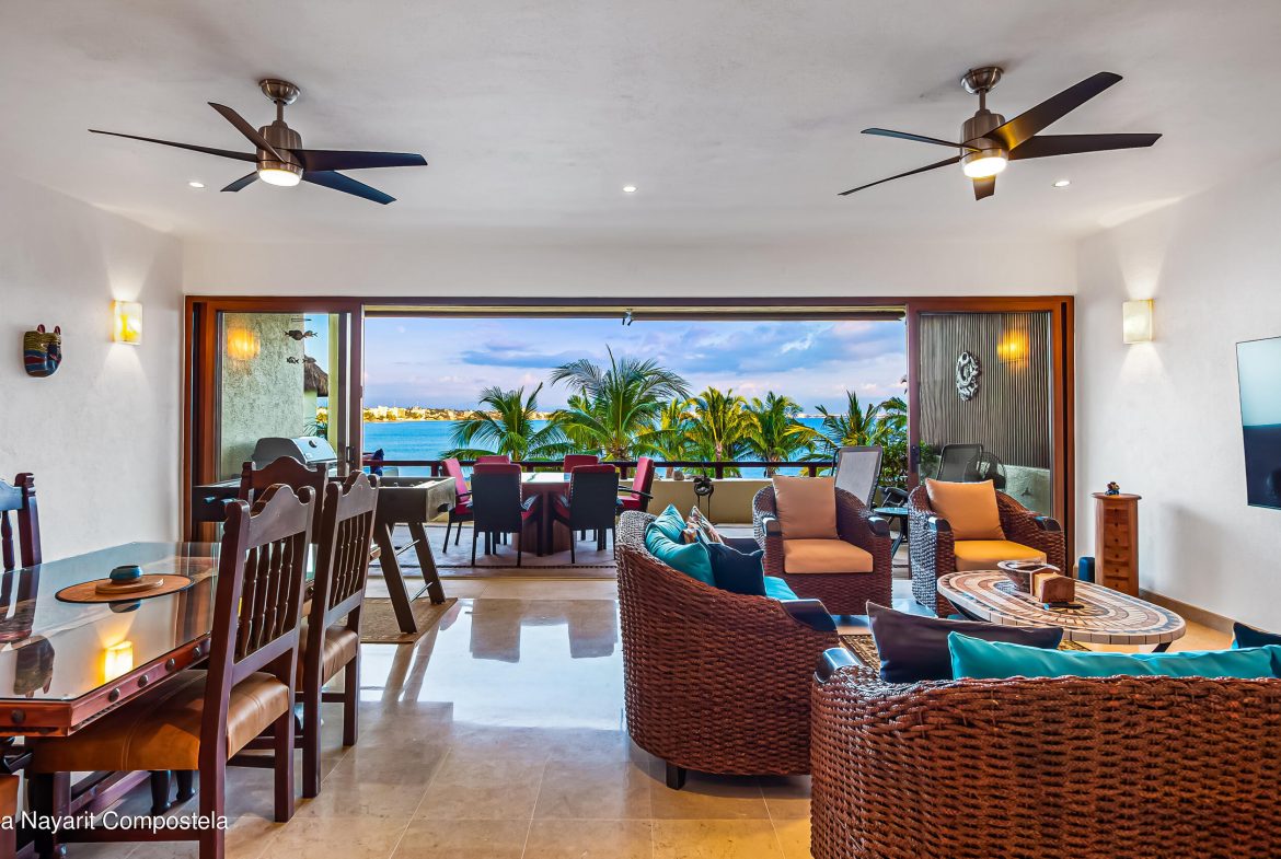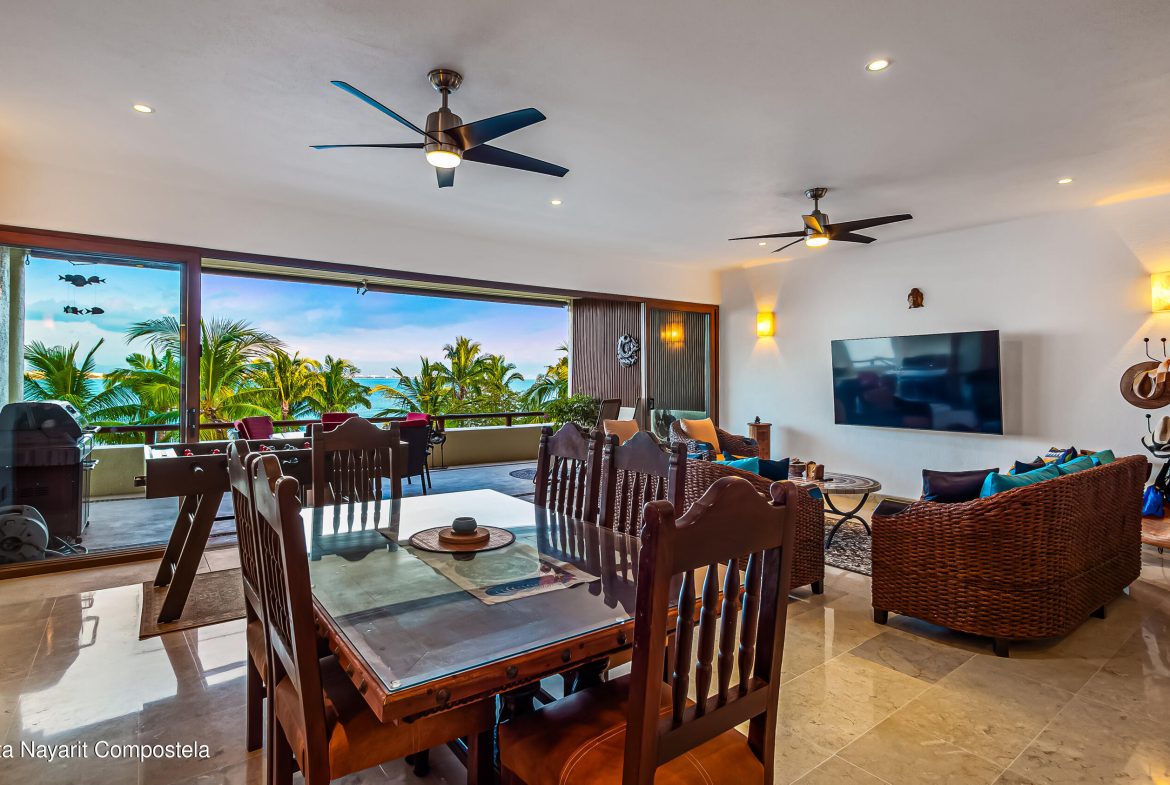 Tu refugio sonado frente al mar te espera en Punta Esmeralda! Disfruta esta residencia lista para mudarte, con diseno abierto, amplia sala y balcon con vistas espectaculares a la bahia. Todo en una sola planta con acceso por elevador, 2 recamaras con vista al mar y 1 con vista a la montana. Recientemente renovada con modernos gabinetes de cocina, pintura fresca y cortinas nuevas.Vive el estilo resort con 8 albercas infinitas, gimnasio, spa, canchas de tenis y pickleball, areas de yoga, jardines, club de playa y seguridad 24/7. Ubicada a pasos de restaurantes y Bucerias, y a solo 25 minutos del Aeropuerto de Vallarta. Agenda tu visita hoy y empieza a vivir el sueno!