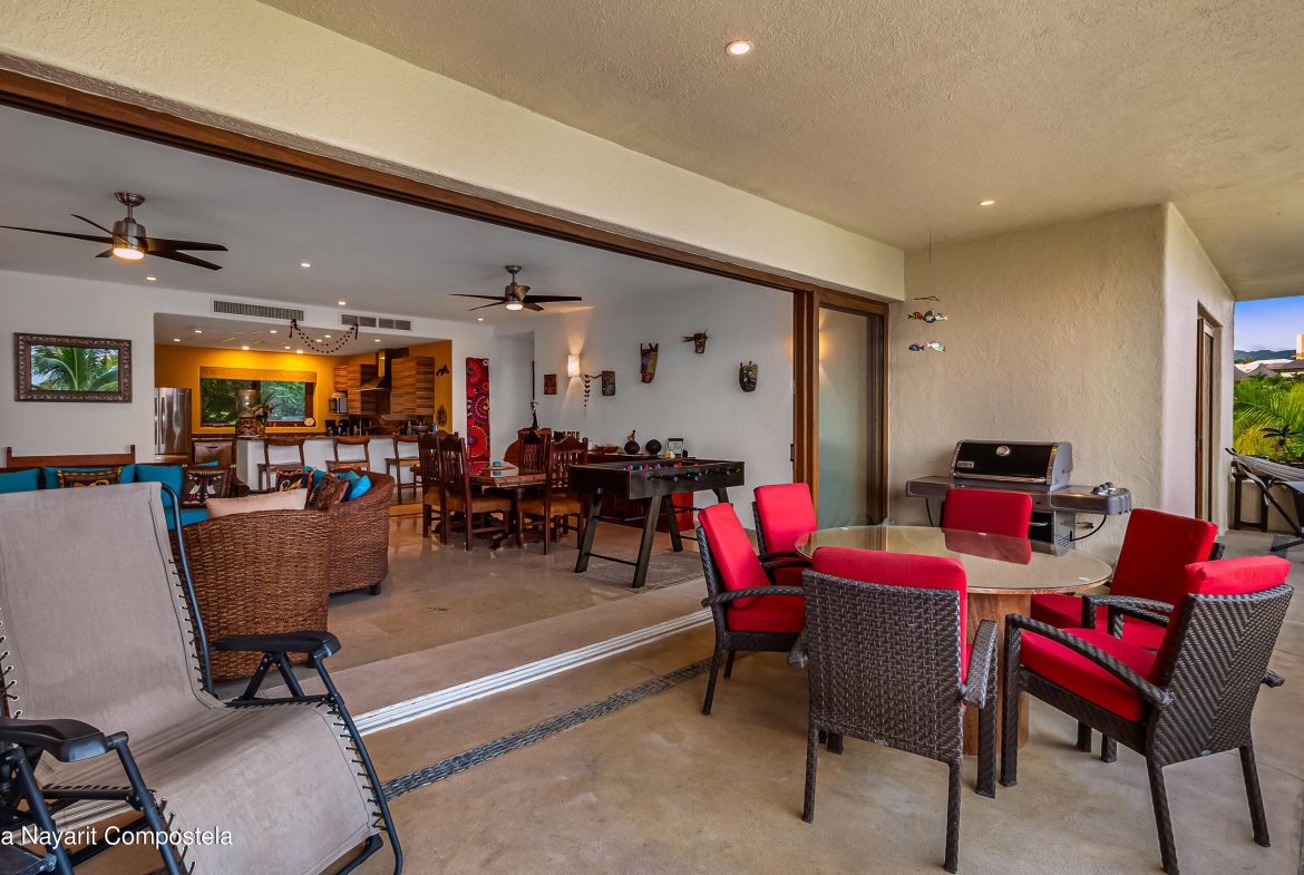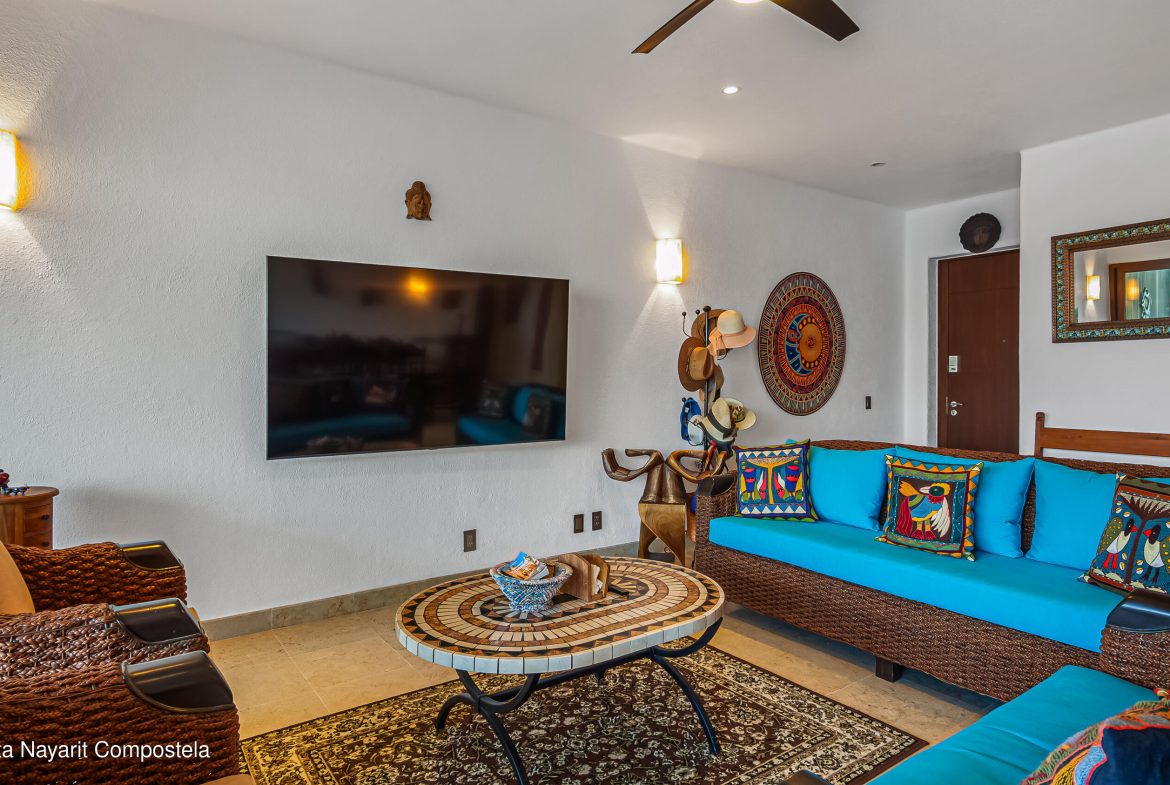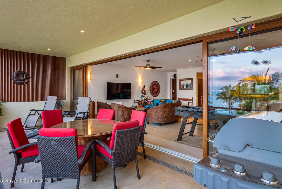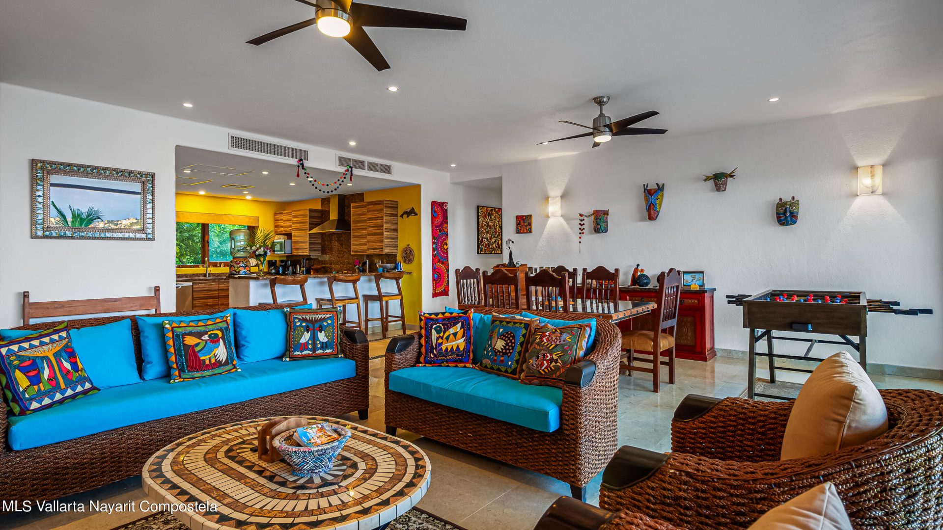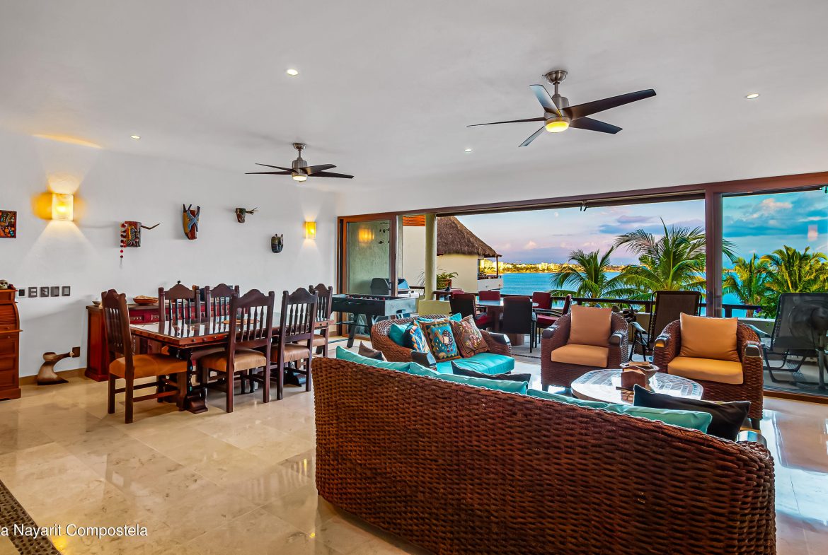 Tu refugio sonado frente al mar te espera en Punta Esmeralda! Disfruta esta residencia lista para mudarte, con diseno abierto, amplia sala y balcon con vistas espectaculares a la bahia. Todo en una sola planta con acceso por elevador, 2 recamaras con vista al mar y 1 con vista a la montana. Recientemente renovada con modernos gabinetes de cocina, pintura fresca y cortinas nuevas.Vive el estilo resort con 8 albercas infinitas, gimnasio, spa, canchas de tenis y pickleball, areas de yoga, jardines, club de playa y seguridad 24/7. Ubicada a pasos de restaurantes y Bucerias, y a solo 25 minutos del Aeropuerto de Vallarta. Agenda tu visita hoy y empieza a vivir el sueno!