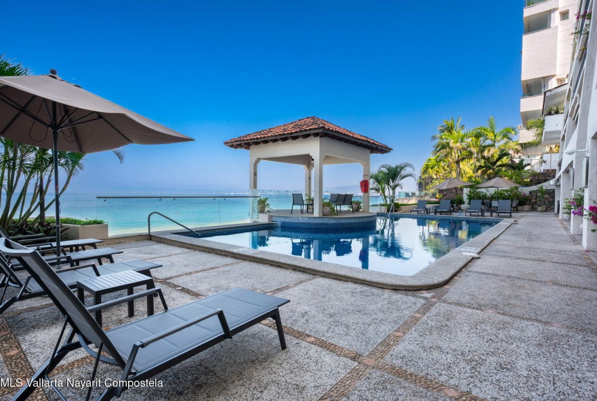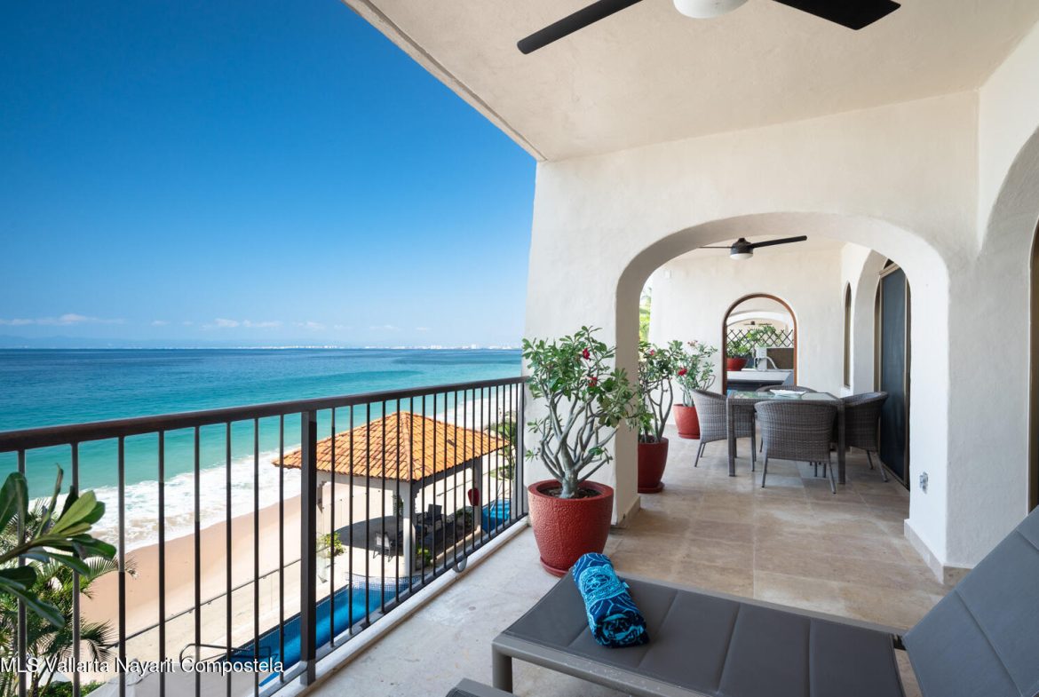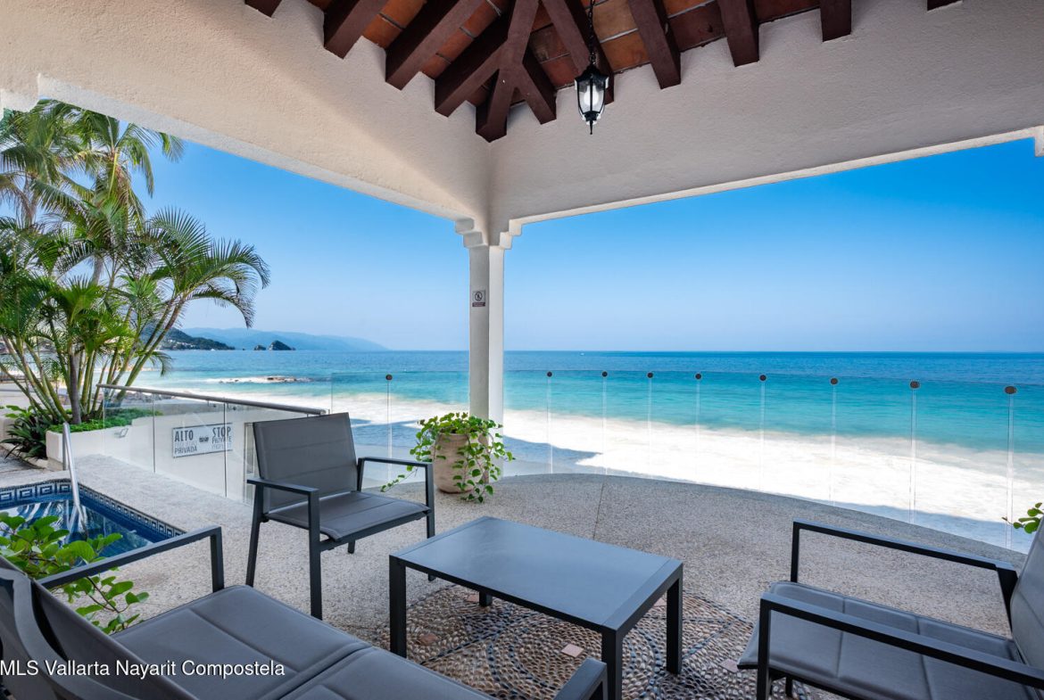 *English Below*Precioso condominio frente al mar de 4 habitaciones y 4 banos en Punta Negra. En la Zona Sur.Disfrute de la vida de lujo en la costa en este impresionante condominio completamente amueblado y listo para entrar a vivir, con 371 M2 de espacio remodelado. Ubicado en el segundo piso, esta residencia se siente como una casa de playa, combinando comodidad y estilo en un entorno inmejorable frente al mar.Disfrute de impresionantes vistas al oceano desde su balcon y relajese en su propia area de jacuzzi y patio trasero privado, perfecto para recibir invitados o descansar despues de un dia de playa.No pierda esta oportunidad unica de ser dueno de un espacioso refugio frente al mar en una de las comunidades mas exclusivas de Puerto Vallarta.