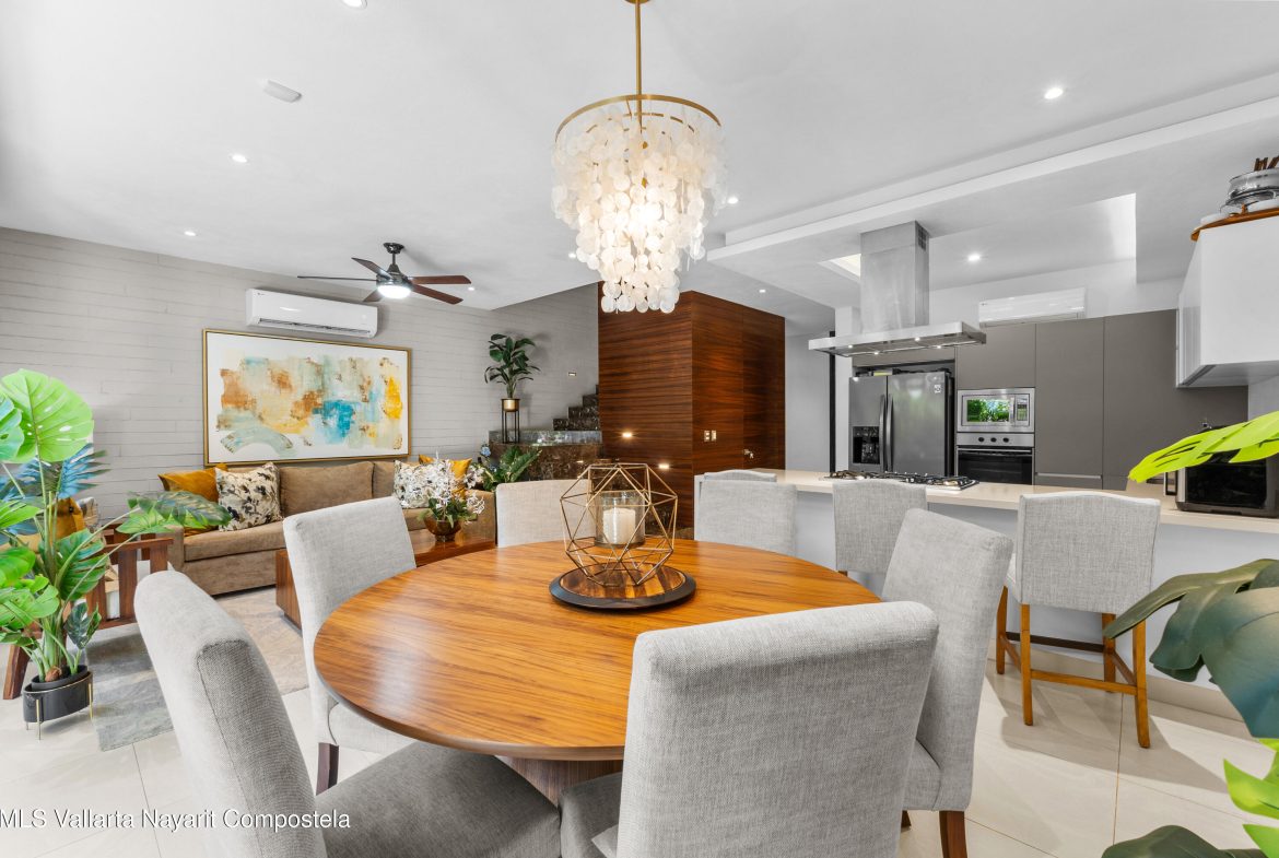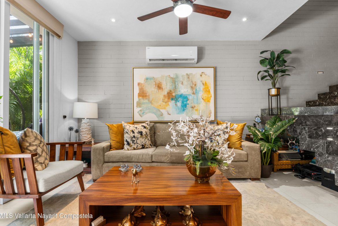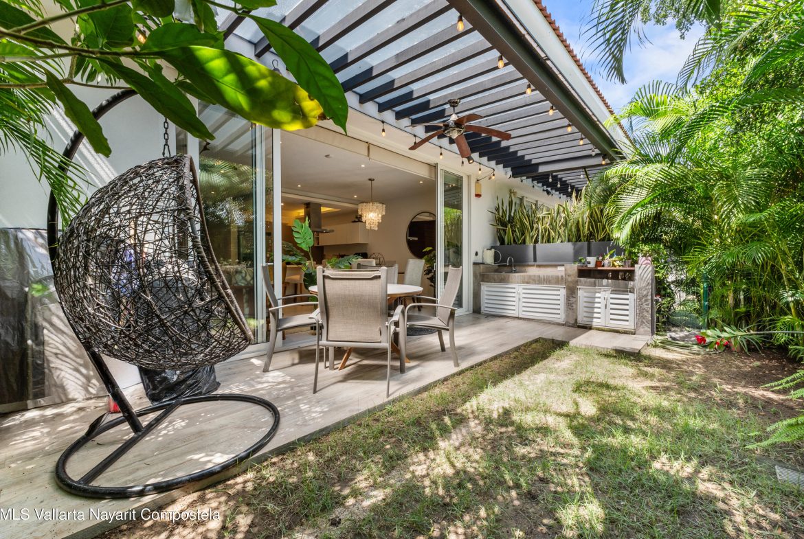 Descubre esta elegante residencia en Coto Punta Cala, dentro del exclusivo El Tigre Golf & Country Club, una de las comunidades mas seguras y completas de Bahia de Banderas.Combina arquitectura contemporanea, confort y eficiencia energetica, rodeada de naturaleza y amenidades de lujo. Caracteristicas principales8 paneles solares y 7 aires acondicionados inverter.4 recamaras (una en planta baja, ideal para visitas).3 banos completos.Cocina equipada con alacena. Jardin privado con area de BBQ.Cochera techada para 2 autos.Pasillo lateral con acceso de servicio.Amenidades de Punta CalaAlberca familiar y alberca exclusiva para adultos con vista al golf. Areas verdes y entorno tranquilo.Vivir en El TigreAcceso a campo de golf, club deportivo, spa, canchas, seguridad 24/7