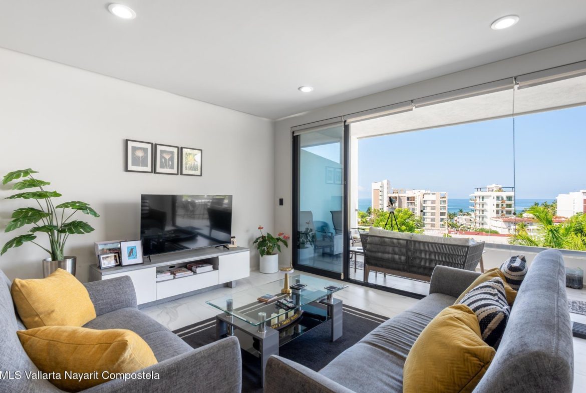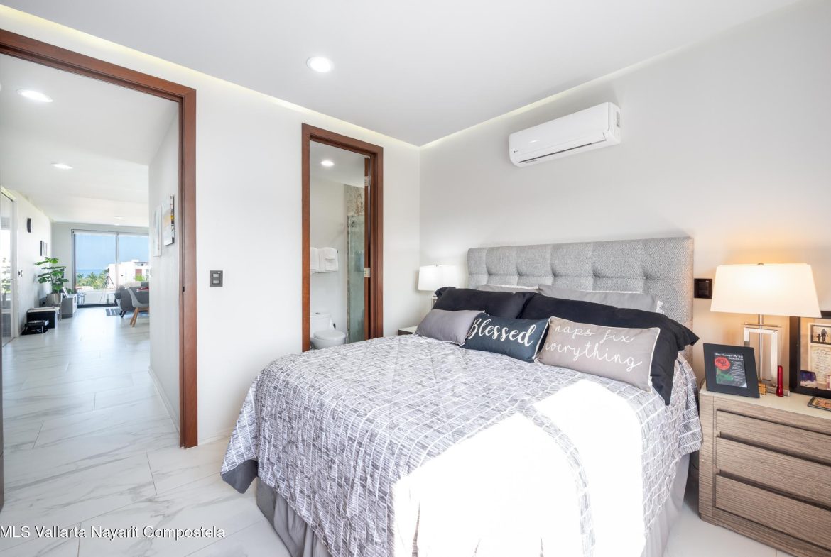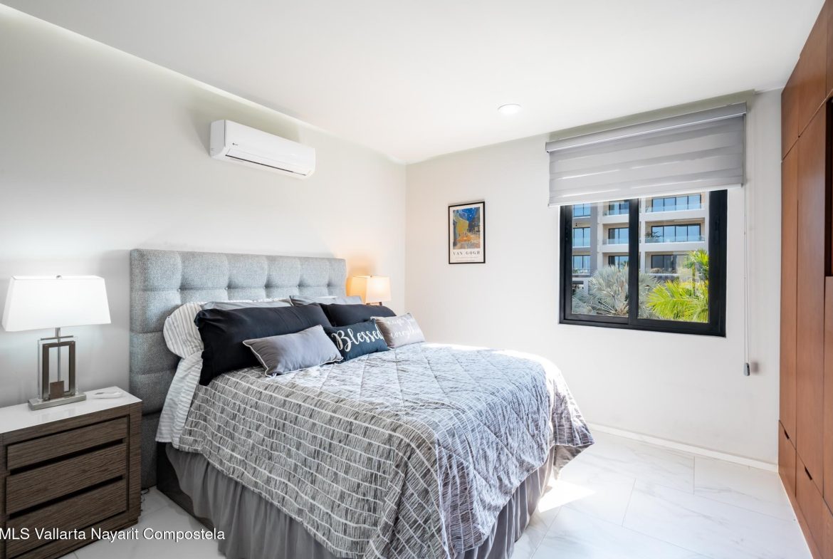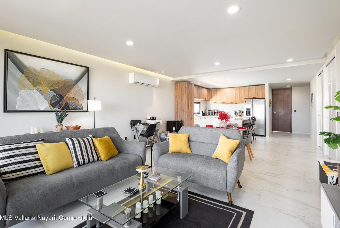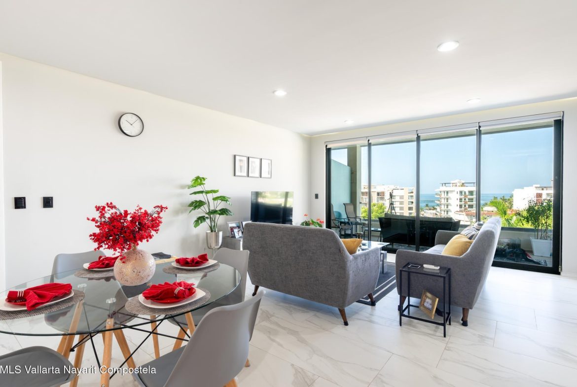 Welcome to the newly built two-bedroom 2 and a half bathroom , condo located on the third floor of the luxurious Quadrant community in Bucerias, Nayarit. This resort-style condominium community is situated along the Tepic-Puerto Vallarta highway in Banderas Bay and sits on a hill that offers spectacular views of the ocean, community gardens, and surrounding amenities walking distance to restaurants local businesses and a amazing beach The condo comes with assigned parking and has a wrap-around balcony allowing you to enjoy the ocean and mountain views. Being the corner unit and having the third-floor balcony is what it takes to have the perfect vantage point to take in the stunning sunsets over the ocean