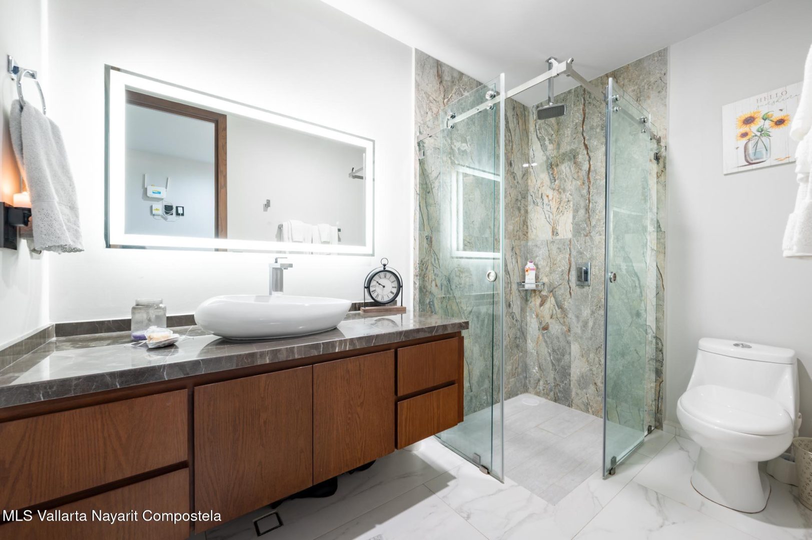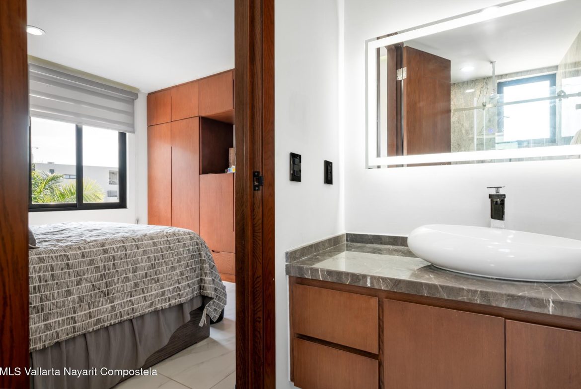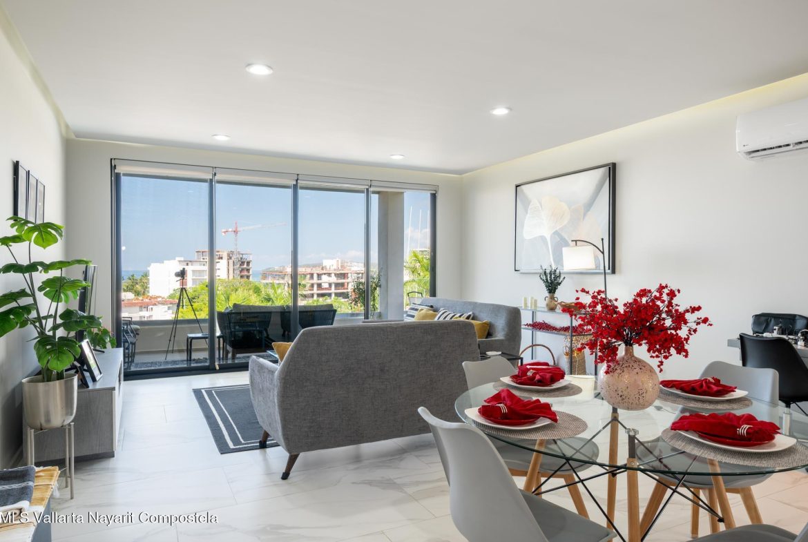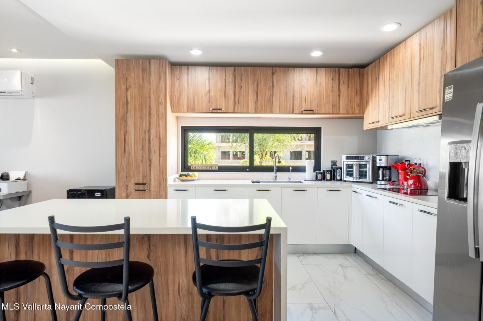Welcome to the newly built two-bedroom 2 and a half bathroom , condo located on the third floor of the luxurious Quadrant community in Bucerias, Nayarit. This resort-style condominium community is situated along the Tepic-Puerto Vallarta highway in Banderas Bay and sits on a hill that offers spectacular views of the ocean, community gardens, and surrounding amenities walking distance to restaurants local businesses and a amazing beach The condo comes with assigned parking and has a wrap-around balcony allowing you to enjoy the ocean and mountain views. Being the corner unit and having the third-floor balcony is what it takes to have the perfect vantage point to take in the stunning sunsets over the ocean