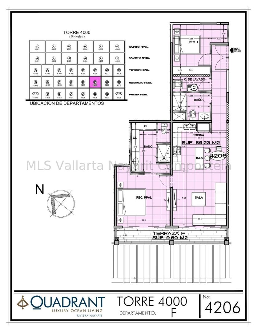 Quadrant ofrece residencias de lujo, con exclusivos departamentos muy cercanos a la costa. Cuenta con torres de cinco niveles, unidades con caracteristicas singulares, acabados de primer nivel y mas de 19,000 m2 de areas comunes. Cada departamento tiene un diseno y una arquitectura impresionante, con acabados funcionales y sofisticados propios de un resort de cinco estrellas. Es una unidad tipo F.