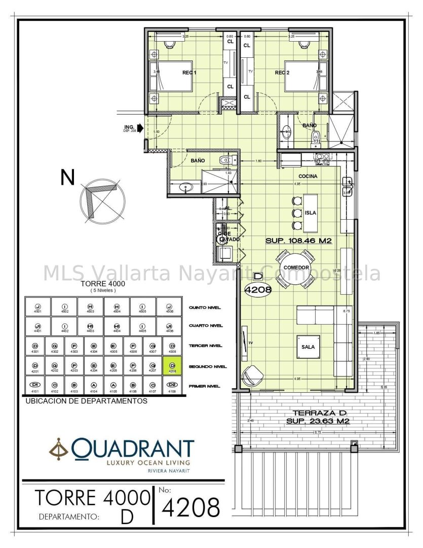 Quadrant ofrece residencias de lujo, con exclusivos departamentos muy cercanos a la costa. Cuenta con torres de cinco niveles, unidades con caracteristicas singulares, acabados de primer nivel y mas de 19,000 m2 de areas comunes. Cada departamento tiene un diseno y una arquitectura impresionante, con acabados funcionales y sofisticados propios de un resort de cinco estrellas. Es una unidad tipo D.