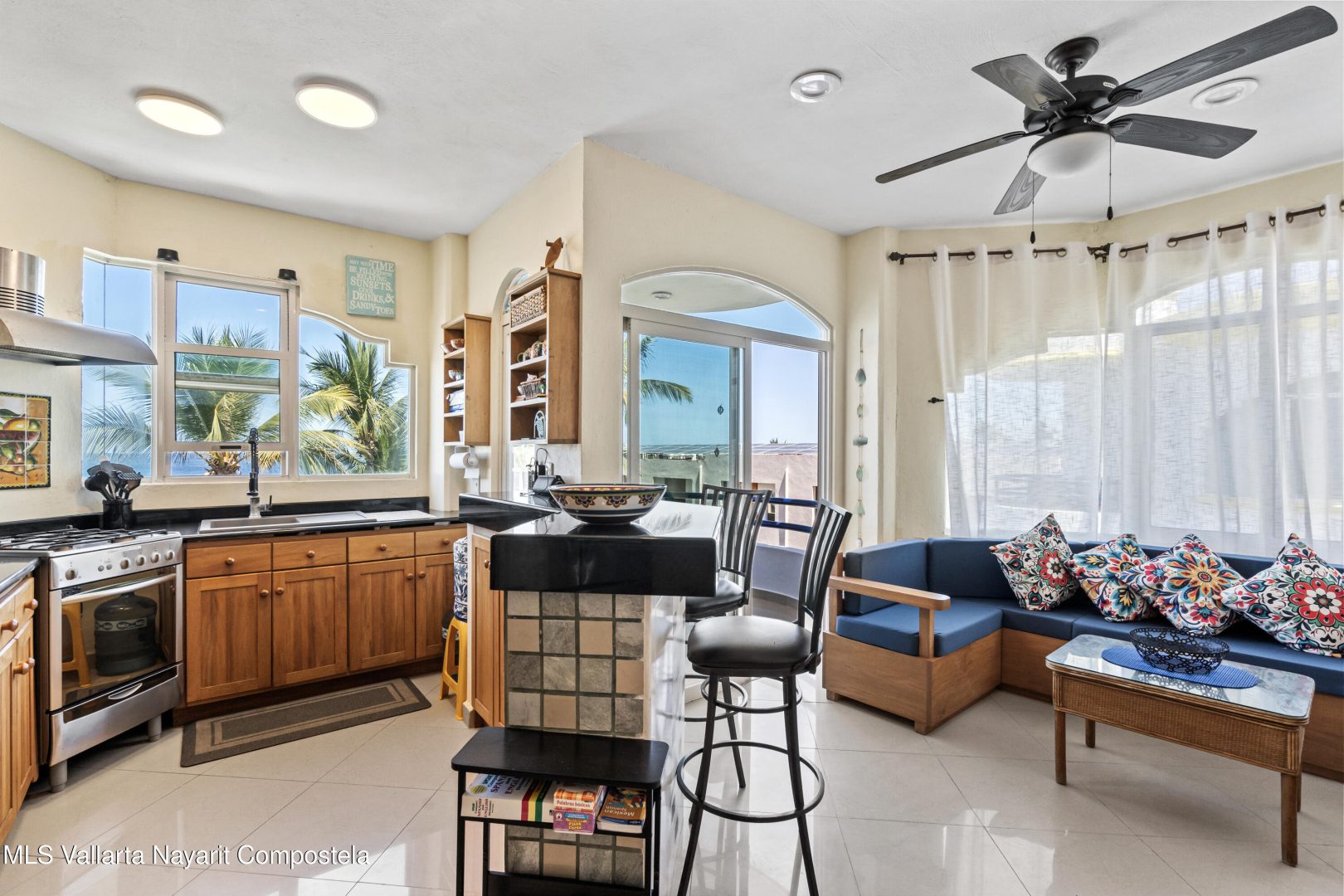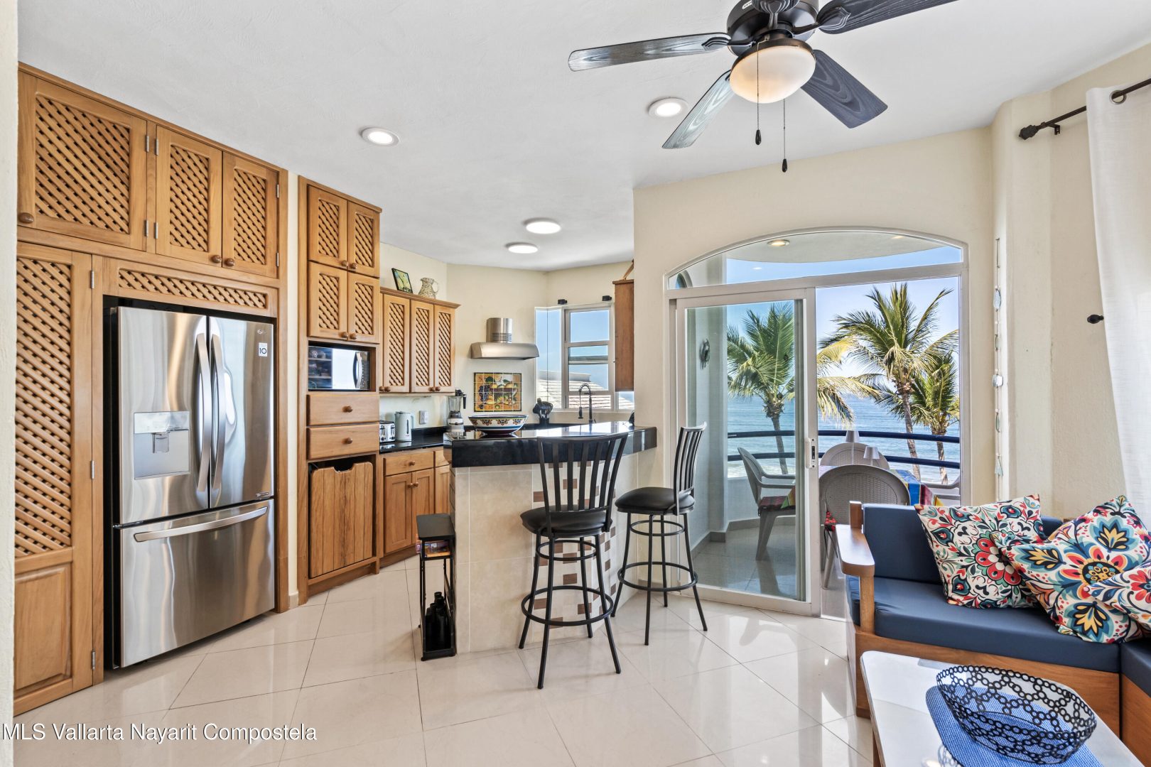 [English below]El mar no es solo tu vista, es tu patio delantero! En el ultimo piso (5), este hogar listo para habitar frente al mar, en el encantador Guayabitos, te ofrece brisas ininterrumpidas, atardeceres sin fin y un asiento de primera fila al ritmo del Pacifico.Este condo de 2 habitaciones y 2 banos, se vende completamente amueblado e incluye bicicletas, juguetes para la alberca y la playa, y mucho mas. Todo esta a poca distancia a pie, incluido el mercado de los lunes.Ademas, cuenta con una bodega con control de humedad y estacionamiento fuera de la calle.