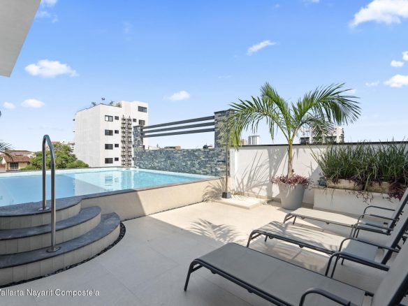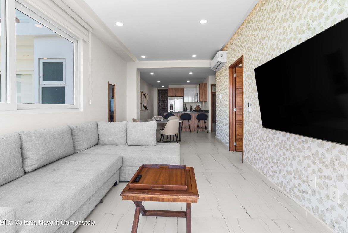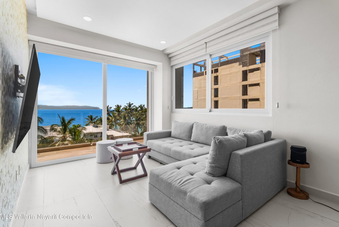 Edificio ubicado a una cuadra de la playa sobre Avenida de Los Picos. Con solo 12 unidades el edificio goce de la espectacular vista de la unidad 501 hacia el mar. El departamento cuenta con dos recamaras amueblado y decorado. Y cuenta con una area comun en roof top con vistas espectaculares.