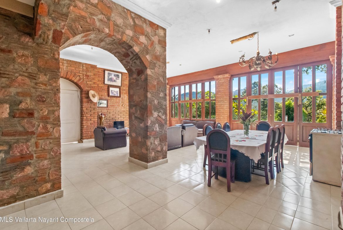Casa de campo con solida construccion con acabados en ”muro viejo” de piedra y ladrillo, rodeada de vegetacion y arboles frutales, a pocos pasos del rio. Posibilidad de construir uno o dos niveles mas. La casa principal tiene 3 recamaras y 2 banos completos, ademas de una construccion adyacente ideal para trabajadores con 2 recamaras y 1 bano. Disfruta de la tranquilidad y vistas a la montana. Suministro constante de agua de un pozo comun. Dos cocinas: una interior y otra exterior con comal para tortillas recien hechas. [EN] Solidly built country house with mixed stone and brick rustic wall finishes, surrounded by vegetation and fruit trees, just a few steps from the river. Possibility to build up another level or two. The main house has 3 bedrooms and 2 full bathrooms, plus an adjacent