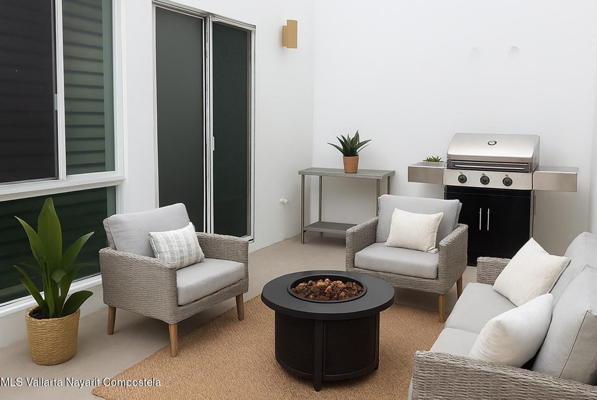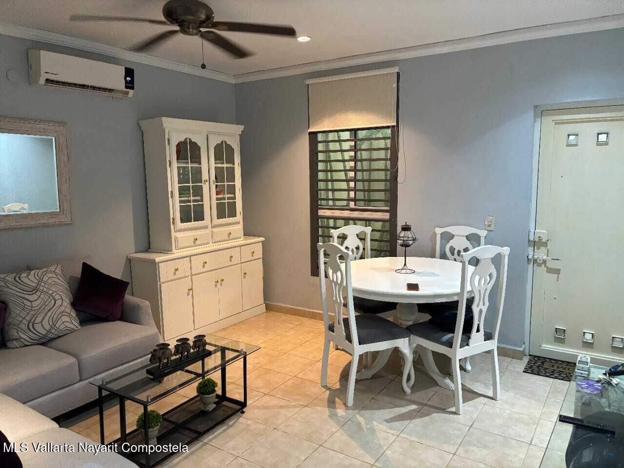 This is one of three units with a private back patio, HOA fees are only 500 pesos per month, Great retirement home on ground floor and building well cared for. Two full bedrooms. Construction is concrete, there are three levels in the condo building. There are only 3 un its n building with private back yard and this is one of them. No stairs, great for older people.