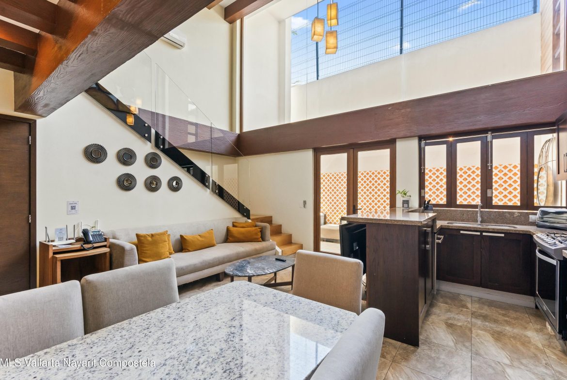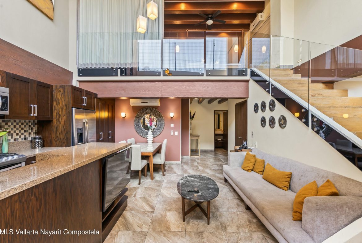 English below:Esta lujosa casa adosada tipo loft esta perfectamente ubicada a pocos pasos de la playa y de la prestigiosa Zona Romantica. Combina comodidad, elegancia y funcionalidad, lo que la convierte en el hogar ideal para quienes aprecian la vida moderna de lujo con un toque de intimidad y privacidad.En el interior, la planta baja presume de un diseno abierto con sala de estar y comedor que se integran a la perfeccion con una cocina gourmet. Las puertas corredizas de vidrio se abren a una terraza privada con jardin, perfecta para disfrutar de su cafe de la manana. La cocina esta equipada con electrodomesticos de alta gama, encimeras de marmol y gabinetes a medida. Una ventana de doble altura ofrece una excelente iluminacion..