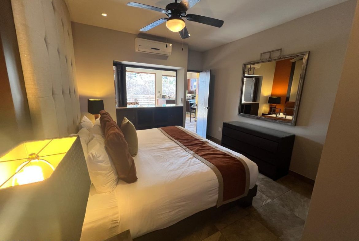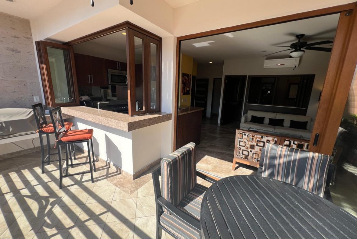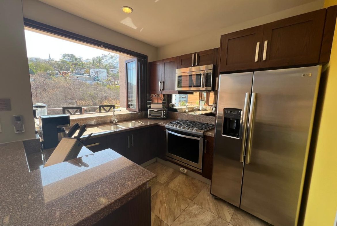English below:Este lujoso condominio de 1 dormitorio y 1 bano esta perfectamente ubicado a pocos pasos de la prestigiosa Zona Romantica, a pocos minutos de la playa y de los mejores restaurantes. Combina comodidad, elegancia y funcionalidad, lo que lo convierte en el hogar ideal para quienes aprecian la vida moderna de lujo con un toque de intimidad y privacidad. El condominio cuenta con un diseno de concepto abierto con sala de estar y comedor que se integran a la perfeccion con una cocina gourmet. Las puertas corredizas de vidrio se abren a una terraza privada con vistas a la ciudad y a la montana, perfecta para disfrutar de su cafe de la manana. La cocina esta equipada con electrodomesticos de alta gama, encimeras de marmol y gabinetes a medida.
