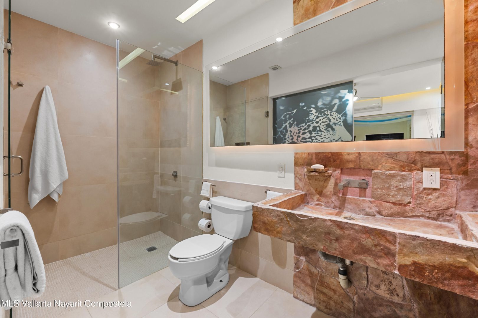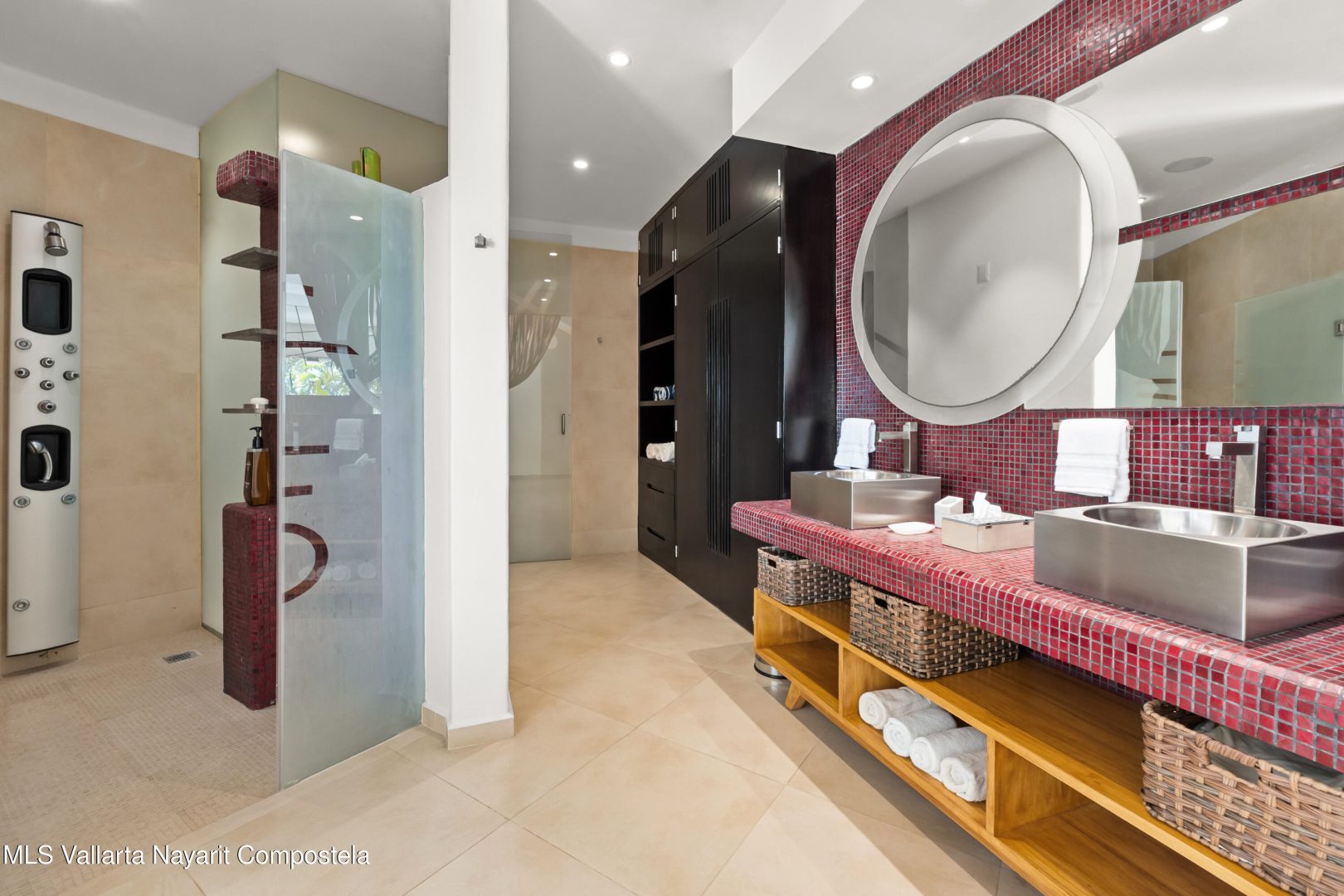 Risco 1 is a rare front-row oceanfront villa within the gated Punta Esmeralda community in La Cruz de Huanacaxtle. This single-level residence offers approximately 6,500 sq ft (605 m) of living space with four bedrooms and four and a half baths. Designed for seamless indoor-outdoor living, the home opens to an expansive private pool terrace directly overlooking the crystal-clear waters of the northern Banderas Bay, where mornings begin with ocean breezes and gentle surf. Generous living and dining areas, well-proportioned bedrooms, and a thoughtful layout provide comfort and privacy throughout. Punta Esmeralda is perfect for multigenerational enjoyment with resort-style amenities including multiple pools, beachfront restaurant, spa, fitness center, tennis courts, and 24-hour security.