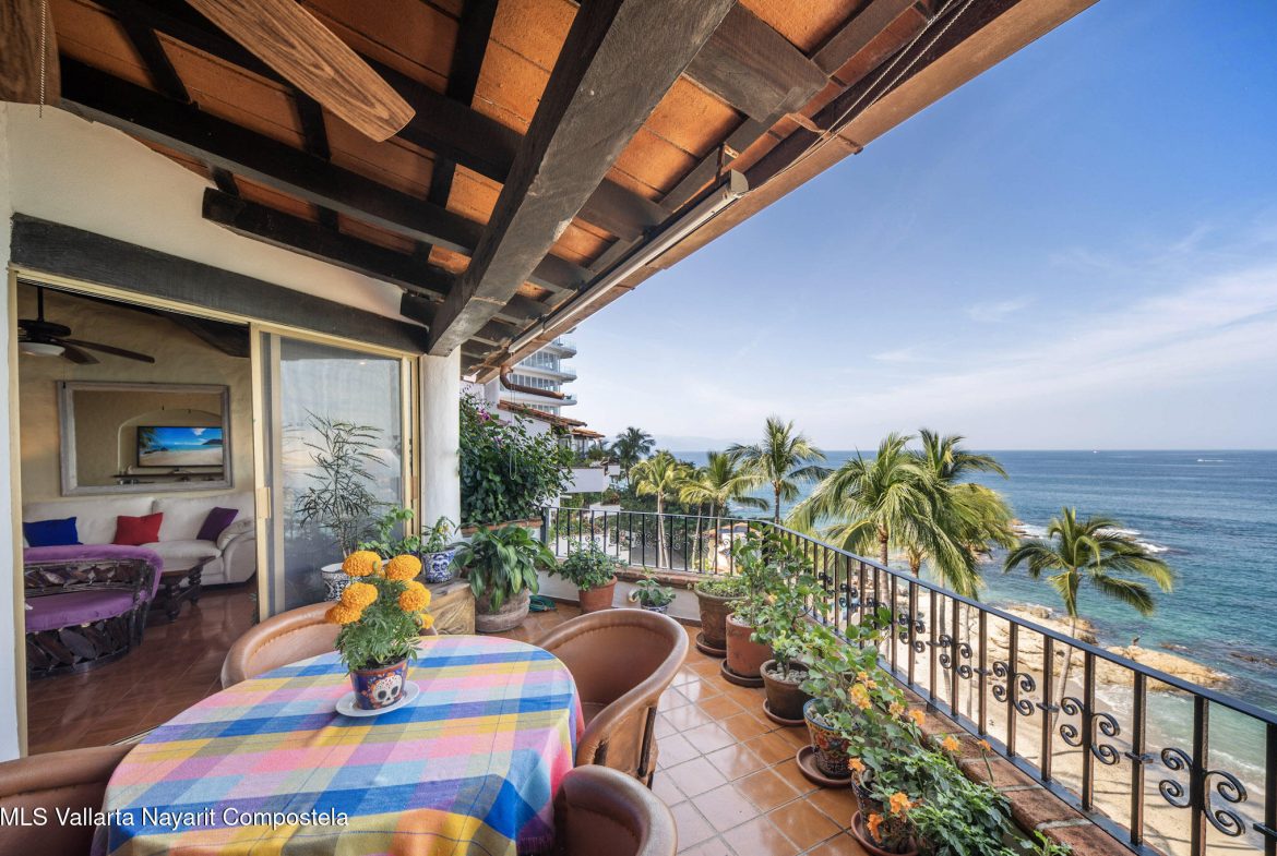 Experience the best of Puerto Vallarta in this 2-bed, 2-bath penthouse in the prestigious Conchas Chinas area. Riviera Amapas residence, offers unrivaled, direct access to the beach, placing you steps from the sand.Enjoy ”sunsets to die for” and ocean views from your private terrace, enhanced by high ceilings. This traditional, intimate building (only 24 units) features a community pool. A tranquil escape, yet just 10 mins from Old Town. Don’t miss this rare opportunity.Vive lo mejor de PV en este penthouse 2rec/2b en Conchas Chinas. Residencia Riviera Amapas con acceso directo a la playa. Disfruta vistas al mar desde tu terraza privada (techos altos). Edificio tradicional e intimo (24 unidades) con alberca. Un escape tranquilo, a 10 min del Old town.