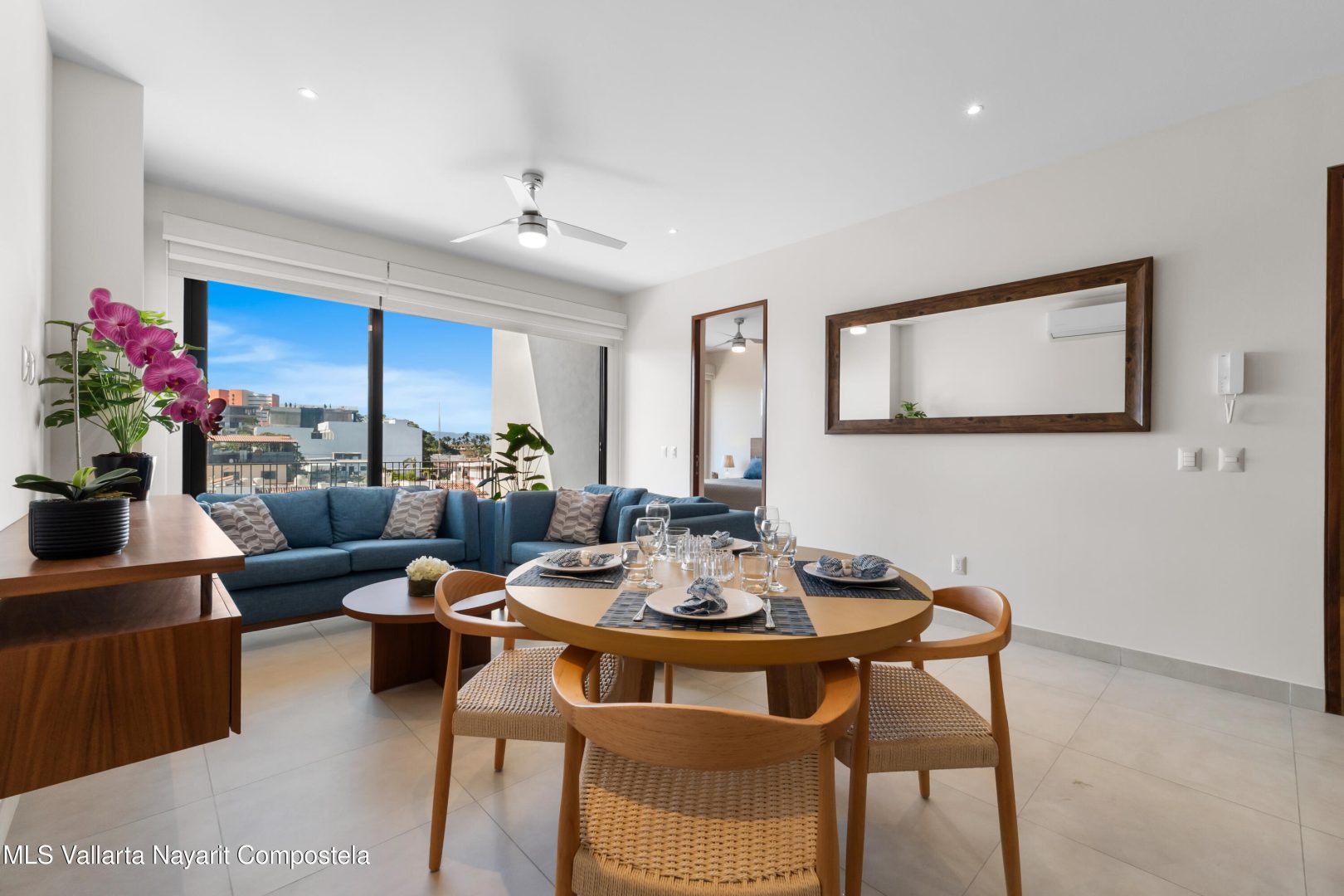 Casa Indigo 306 in Versalles shows in exceptional, like-new condition. Owner-used only a handful of nights and never rented, it is fully furnished and completely turnkey. With 110.44 m2 of total deeded area, the residence offers a bright, open layout that flows from the living and dining space into a modern kitchen and out to private outdoor areas with a charming peek-a-boo ocean view. Deeded parking is included. The heated rooftop pool features sweeping 365 views of the bay, city skyline, and surrounding mountains, creating the perfect setting for sunset gatherings or relaxed evenings above Puerto Vallarta.Located in one of Puerto Vallarta’s most desirable and walkable neighborhoods, this is a clean, move-in-ready opportunity in Versalles.