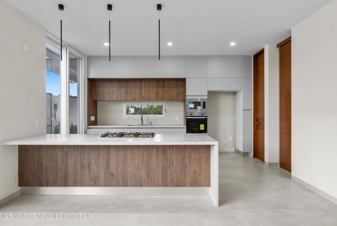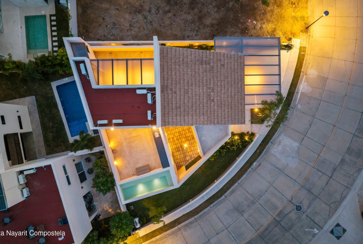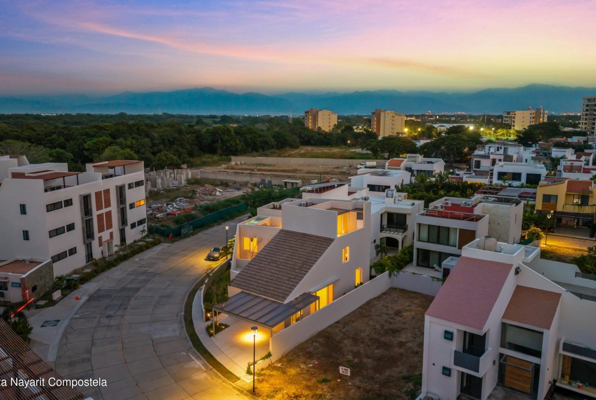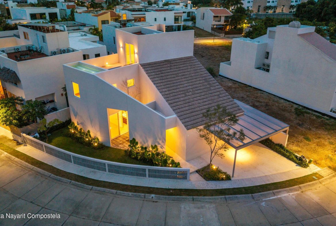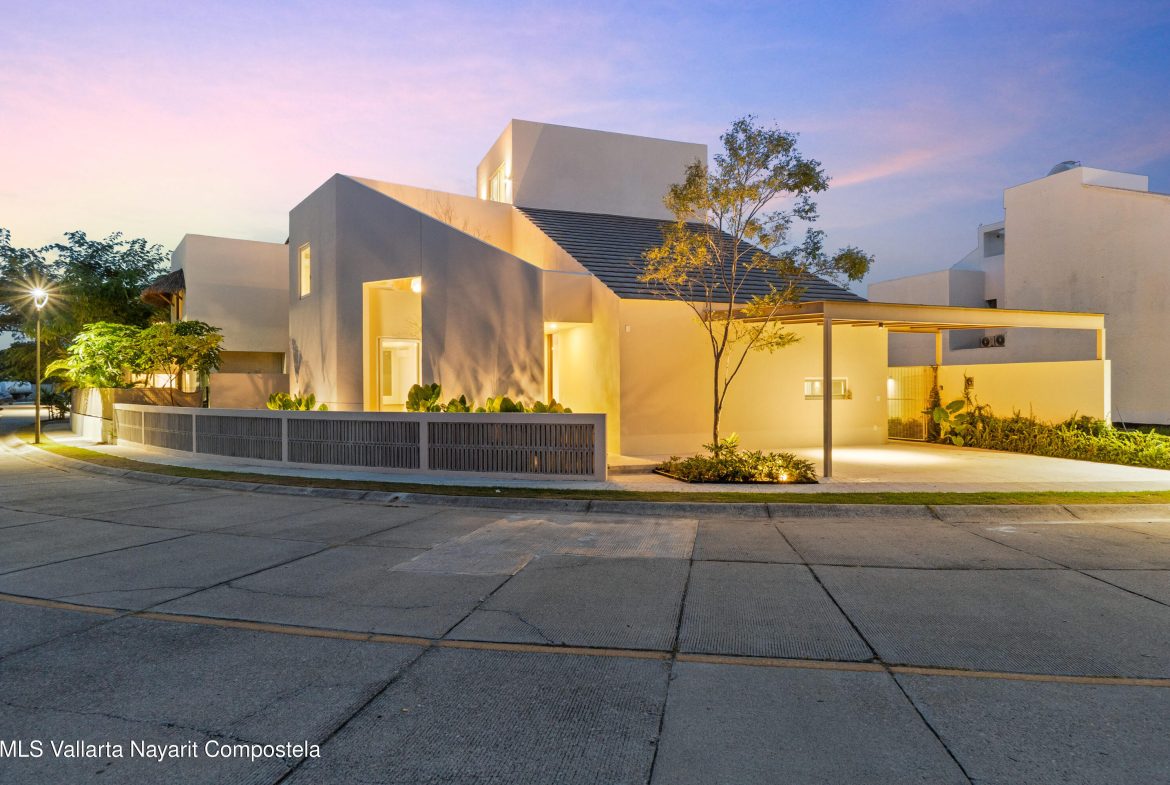 Residencia nueva en Flamingos Residencial, Bucerias. Una residencia dentro de uno de los fraccionamientos mas exclusivos de Bucerias. Esta casa a estrenar combina diseno arquitectonico distintivo, espacios amplios con doble altura y acabados en madera rosa morada de la mas alta calidad. Ubicada en Flamingos Residencial, un entorno seguro, tranquilo y de gran plusvalia. Esta propiedad ofrece 3 recamaras, 3 banos completos, 2 medios banos, estacionamiento techado para 2 autos y un area flex/multiusos en el tercer nivel con una plunge pool privada ideal para relajarse. El club del fraccionamiento brinda canchas de padel y de tenis. Precio en pesos: $11,555,000 MXN.