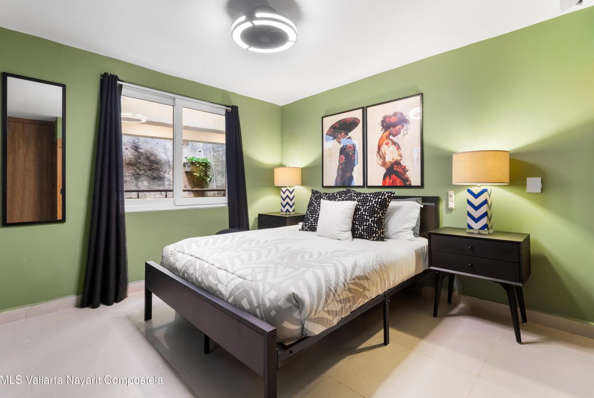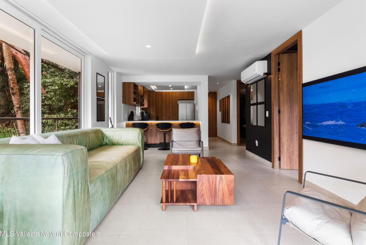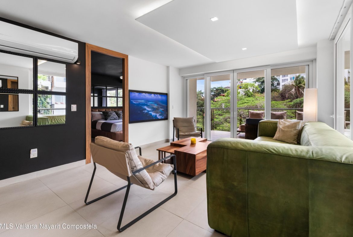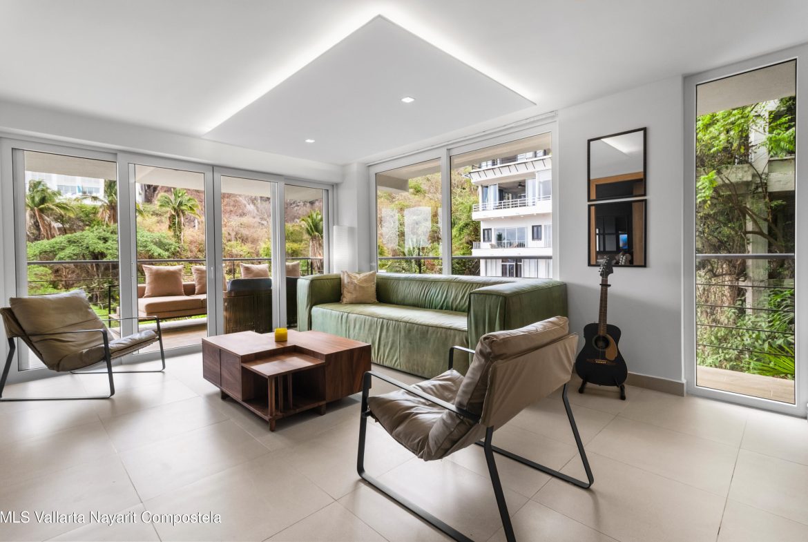 Amazing Ocean and jungle views and a quick 8 minute walk to the beach. Welcome to Seaview 402, a stunning 2-bed, 2-bath corner unit with impressive ocean and jungle views. Nestled in the gorgeous hills of Amapas, this condo offers a peaceful retreat away from the bustling of the Romantic Zone, while being a short walk to the beach, restaurants and bars. Spanning over around 1,100 SqFt, this condo has so much to offer. Whether you are looking for an investment opportunity or your dream home, Unit 402 can easily accommodate all needs. The furniture is custom made for the space, inspired by Restoration Hardware. Enjoy stunning unobstructed views of the Bay of Banderas from the comfort of your terrace or building rooftop. Assigned bodega and parking available on property.