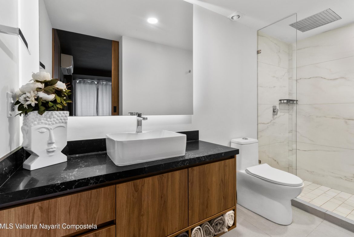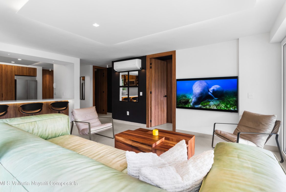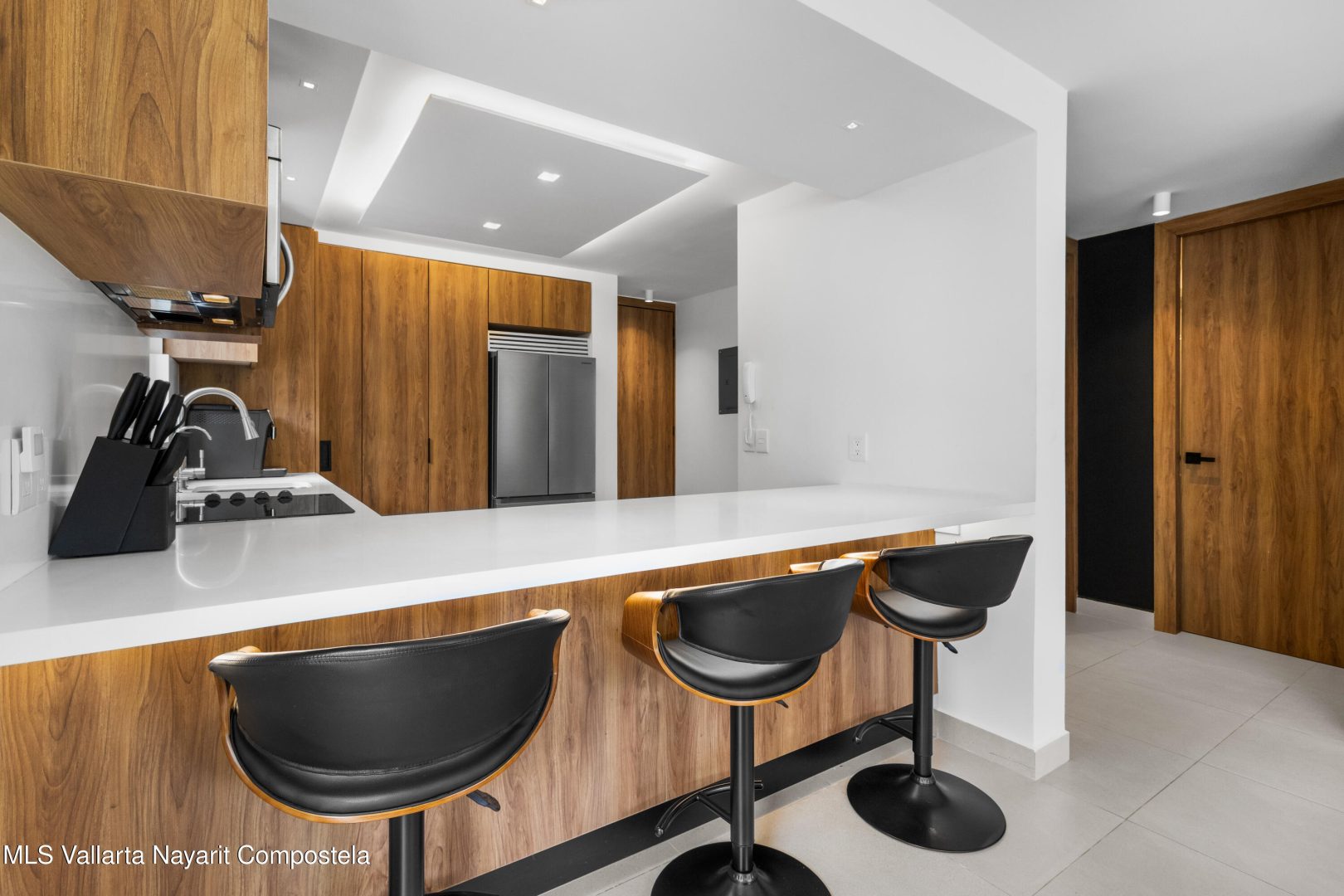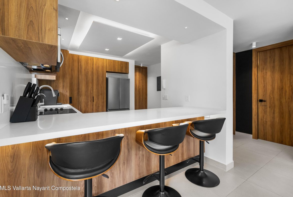 Amazing Ocean and jungle views and a quick 8 minute walk to the beach. Welcome to Seaview 402, a stunning 2-bed, 2-bath corner unit with impressive ocean and jungle views. Nestled in the gorgeous hills of Amapas, this condo offers a peaceful retreat away from the bustling of the Romantic Zone, while being a short walk to the beach, restaurants and bars. Spanning over around 1,100 SqFt, this condo has so much to offer. Whether you are looking for an investment opportunity or your dream home, Unit 402 can easily accommodate all needs. The furniture is custom made for the space, inspired by Restoration Hardware. Enjoy stunning unobstructed views of the Bay of Banderas from the comfort of your terrace or building rooftop. Assigned bodega and parking available on property.
