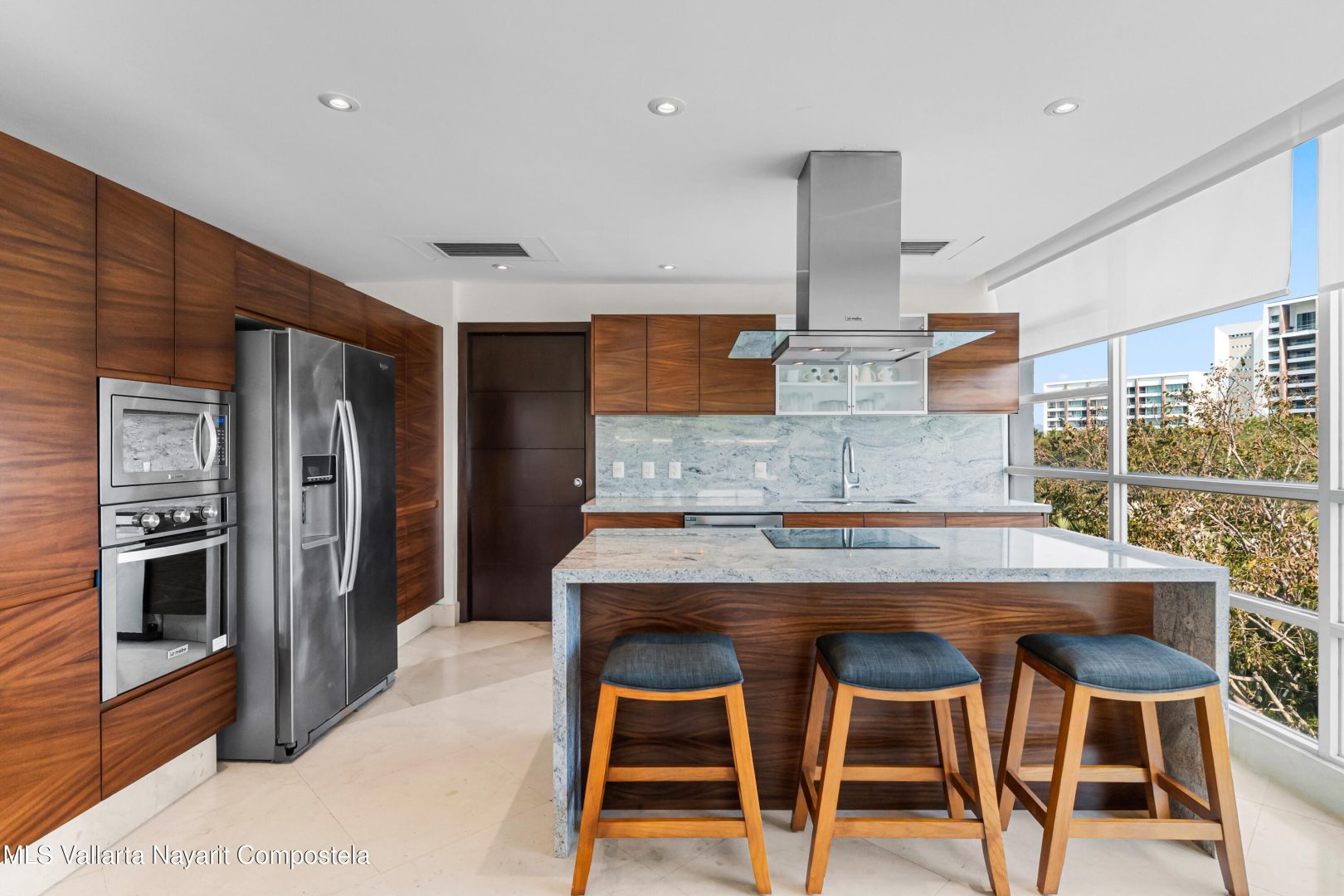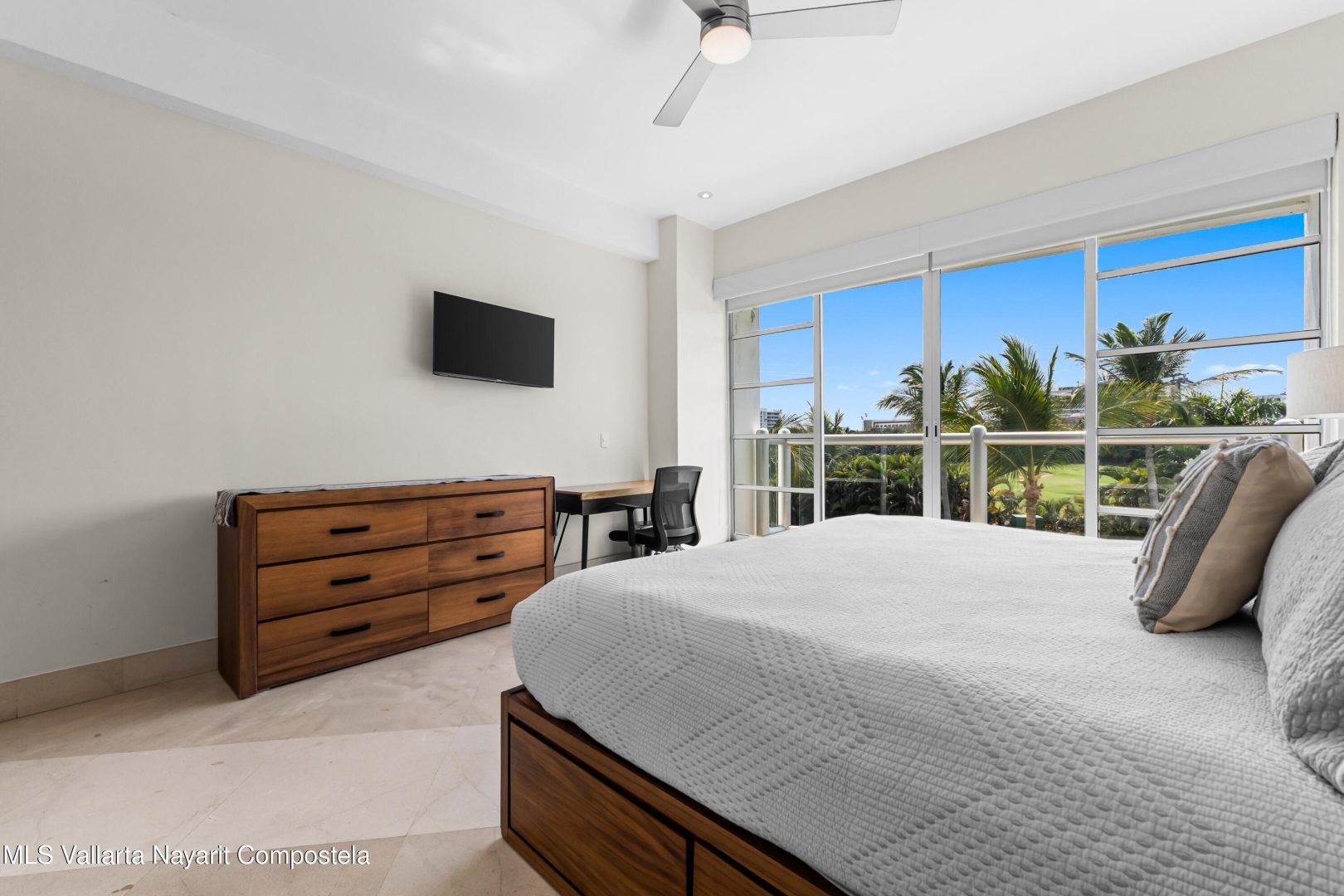 Experience the perfect blend of privacy, views, and resort-style living in this stunning south-facing corner unit on the third floor. Ideally positioned to overlook the pool while capturing lush, jungle-like surroundings, the condo also offers expansive sky views and a beautiful outlook toward the renowned Vidanta resort development.This spacious residence features three generously sized bedrooms, each with its own bathroom, plus a smaller bedroom with an en-suite bath that can easily function as a fourth bedroom, guest suite, staff room, or additional rental space. The flexible layout makes it ideal for families and investors alike.